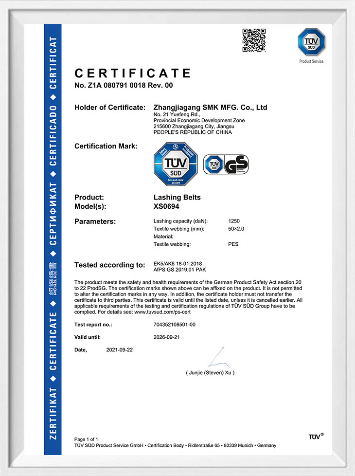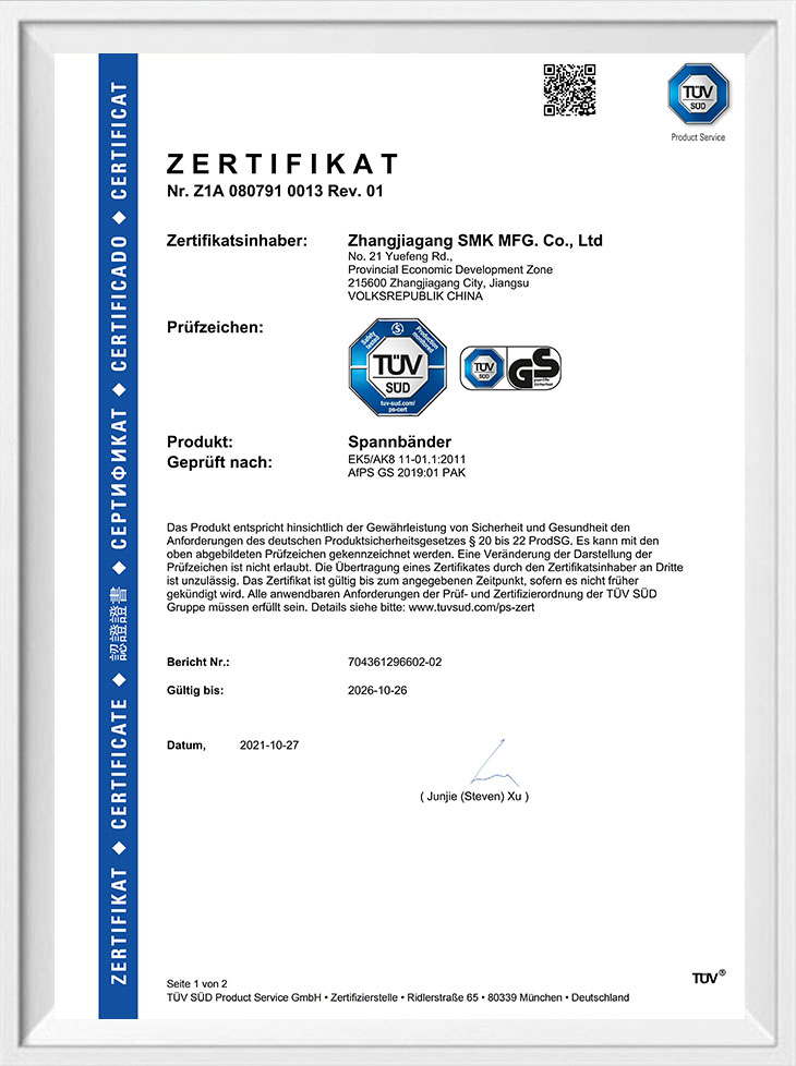 TUV GS 인증 타이다운 및 번지 코드