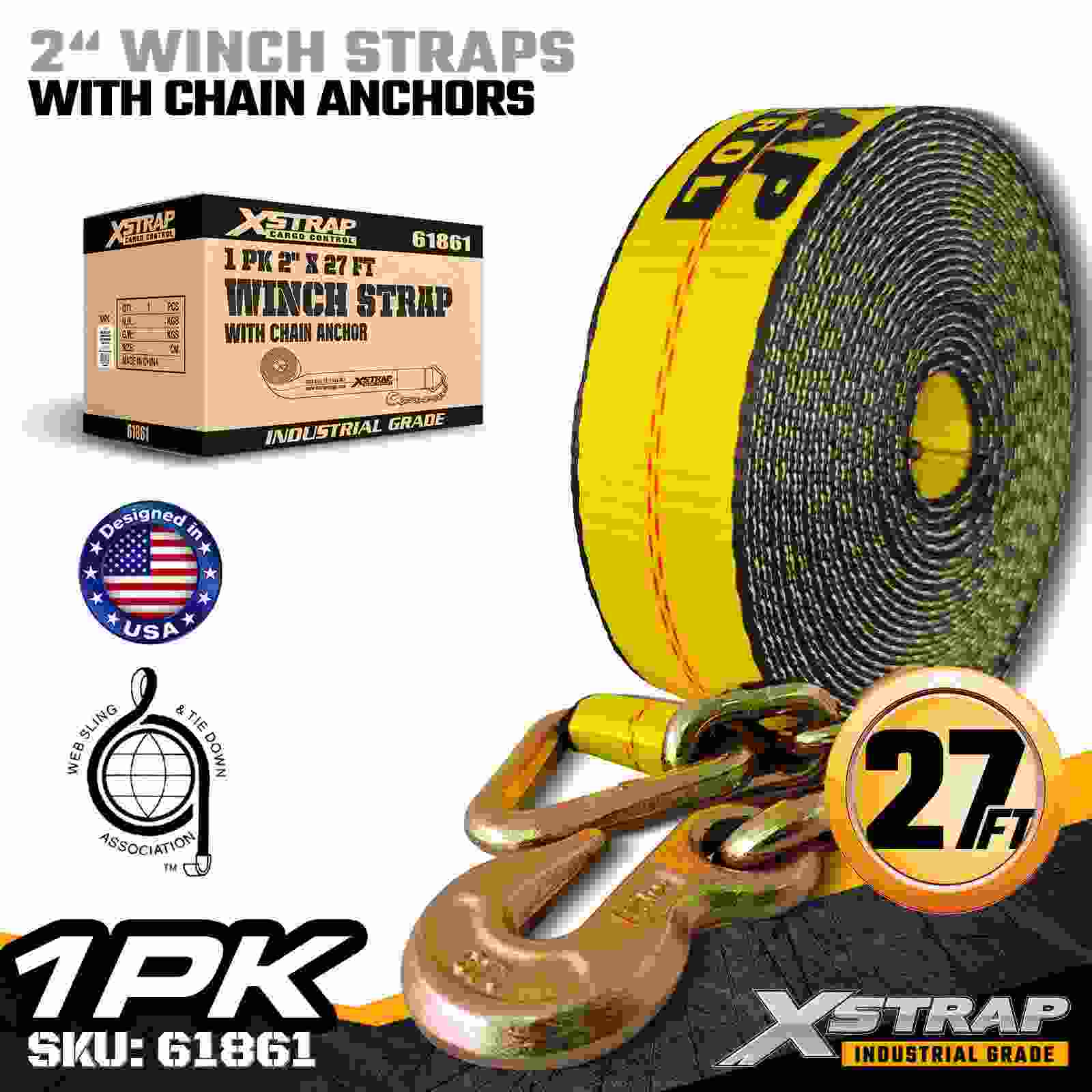 2" × 27ft 표준 윈치 스트랩(체인 앵커 포함)