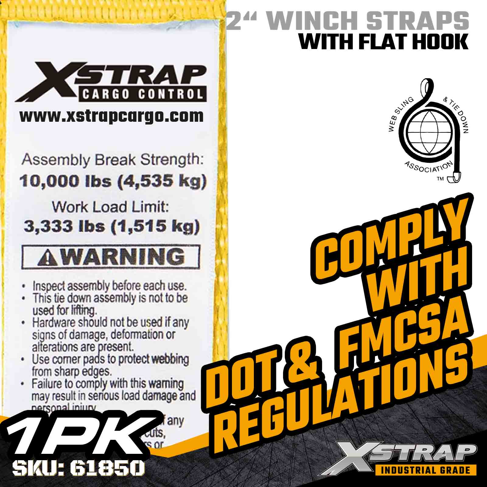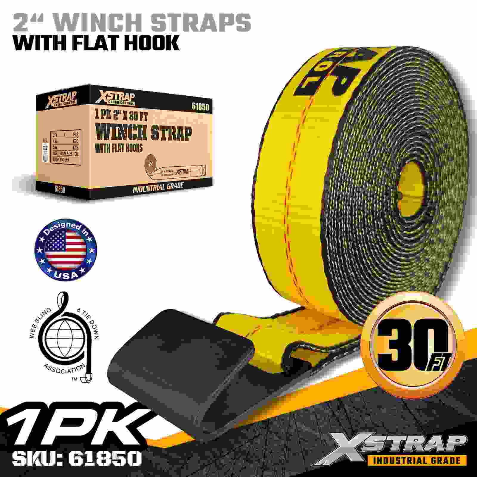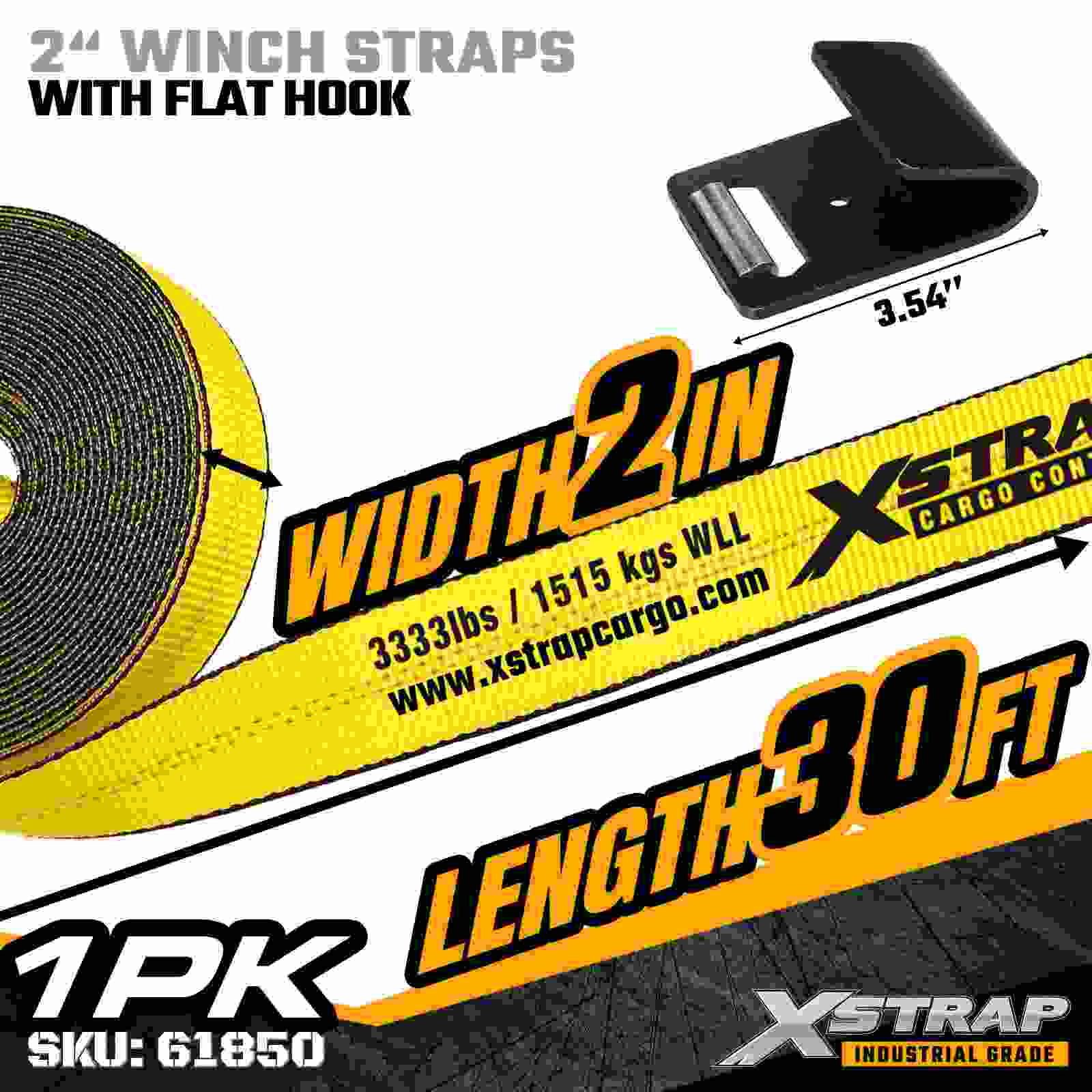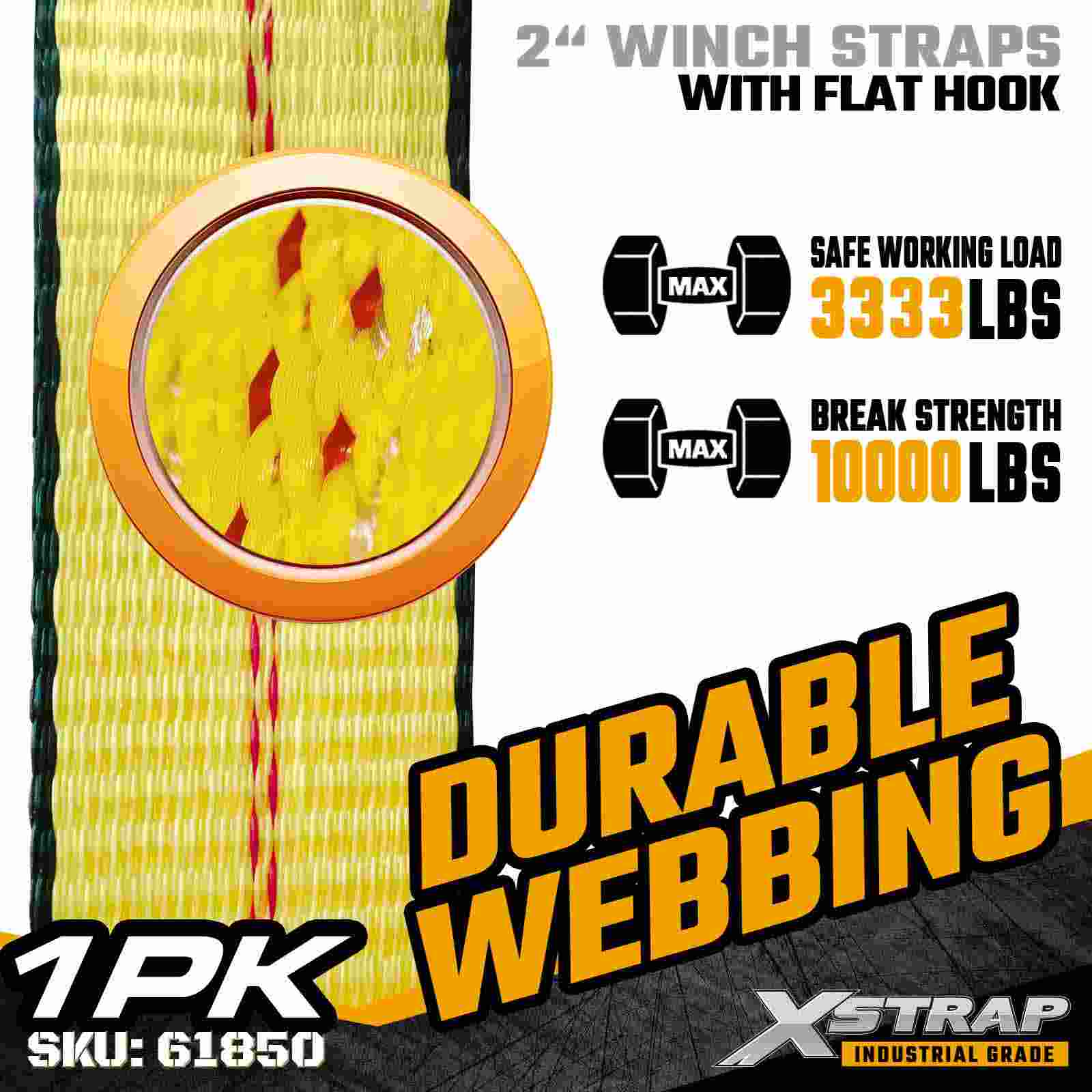 Xstrap 61850 2" × 30피트 표준 윈치 스트랩은 강화된 플랫 후크와 고강도 폴리에스터 웨빙을 특징으로 하는 안정적인 플랫베드 화물 고정을 위해 제작되었습니다. 3,333lbs의 작업 하중 제한과 10,000lbs의 파손 강도를 통해 일일 화물 운반, 팔레트 적재, 목재, 파이프 및 일반 물류 응용 분야에 신뢰할 수 있는 성능을 제공합니다.