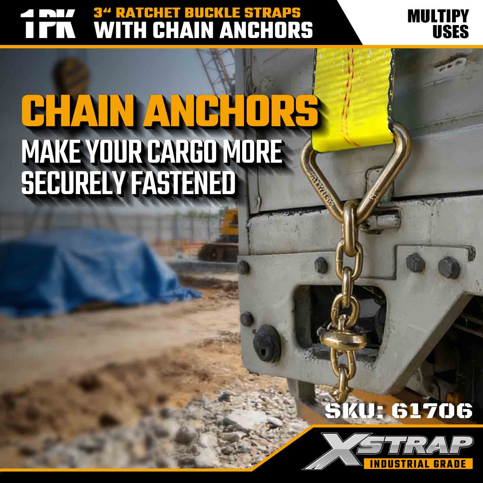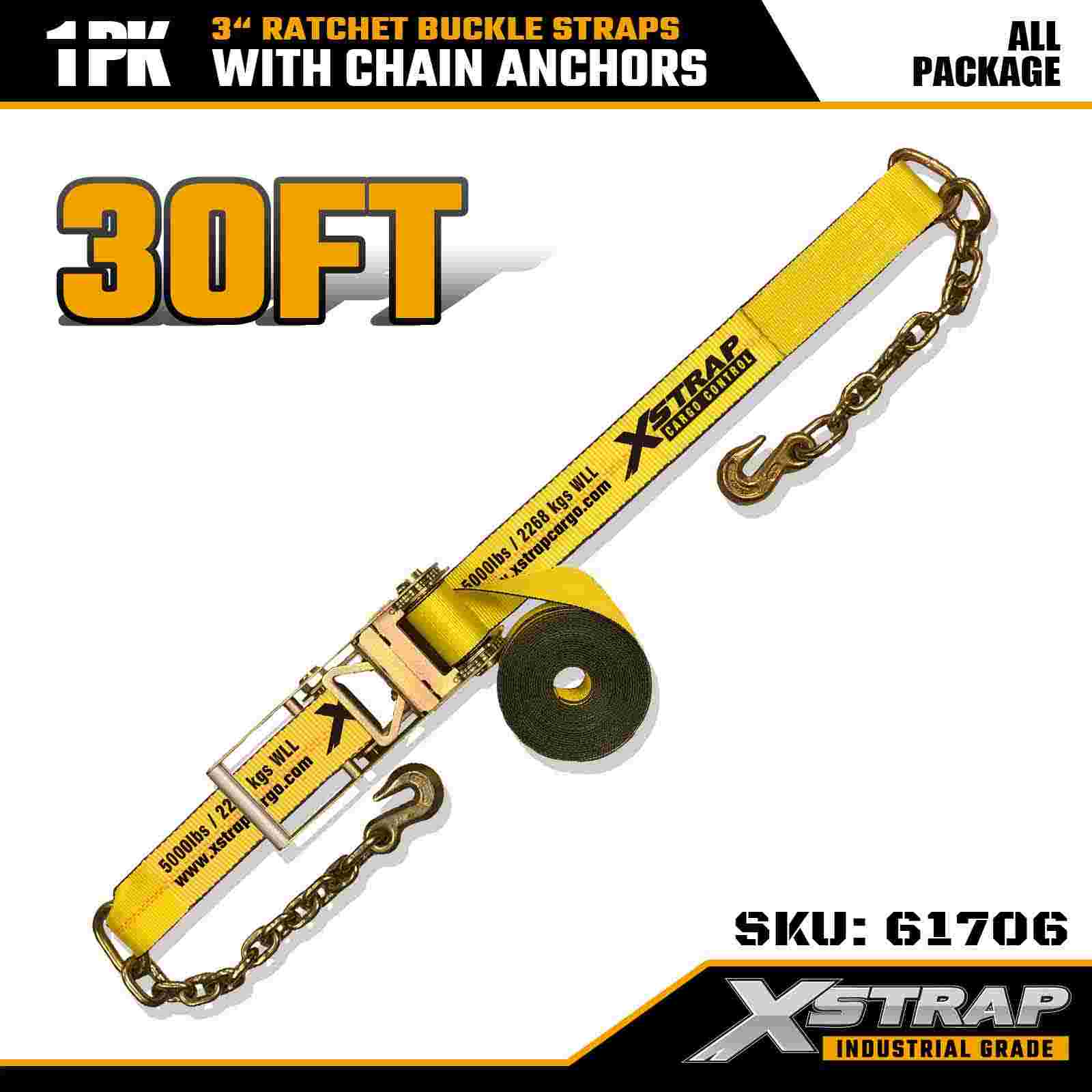 3" × 30피트 래칫 버클 스트랩(체인 앵커 포함)