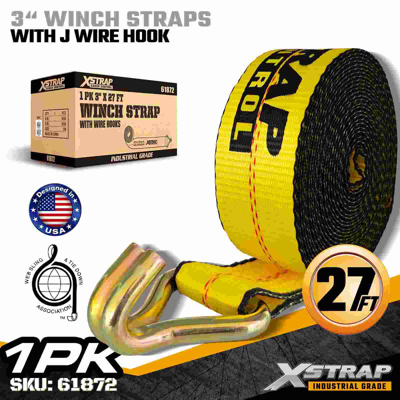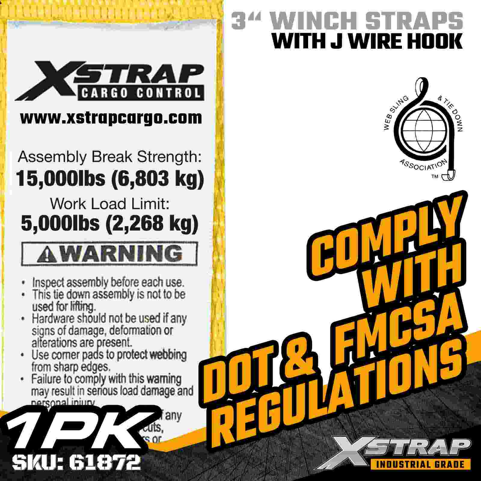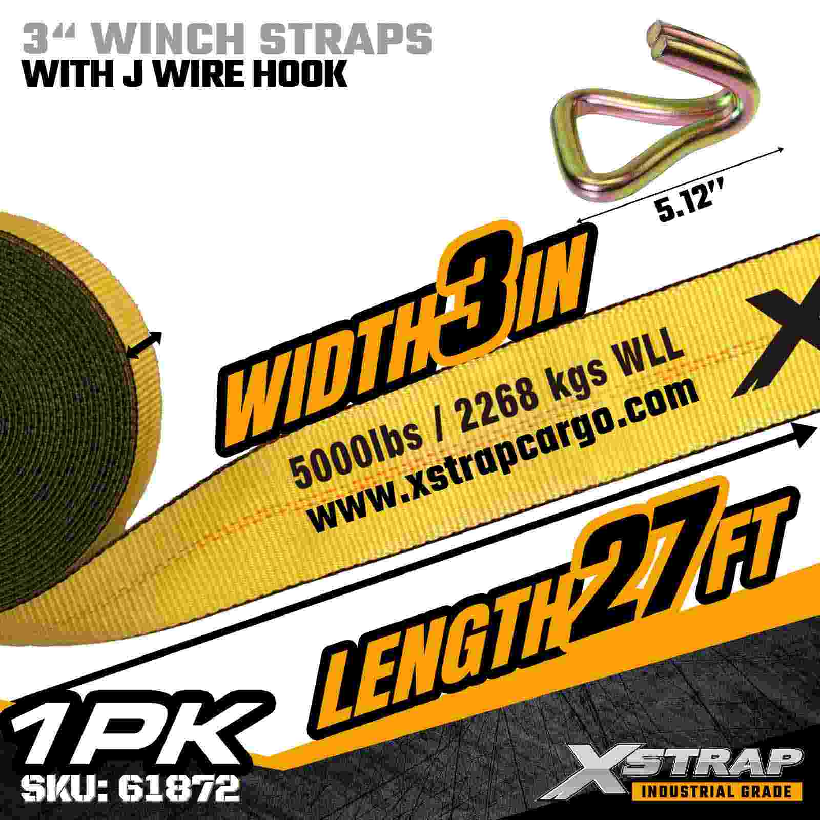 Xstrap 61872 3" × 27피트 표준 윈치 스트랩은 평상형 트레일러 및 산업용 운송을 위해 설계된 견고한 화물 고정 솔루션입니다. 강화된 와이어 후크와 매우 넓은 3인치 폴리에스테르 웨빙이 장착된 이 3인치 윈치 스트랩은 5,000lbs의 작업 하중 제한과 15,000lbs의 파손 강도를 제공합니다. 와이어 후크 디자인은 유연한 부착 옵션을 제공하여 빠르고 다양한 연결이 필요한 작업자에게 이상적입니다. 일일 운반 작업 중 포인트.