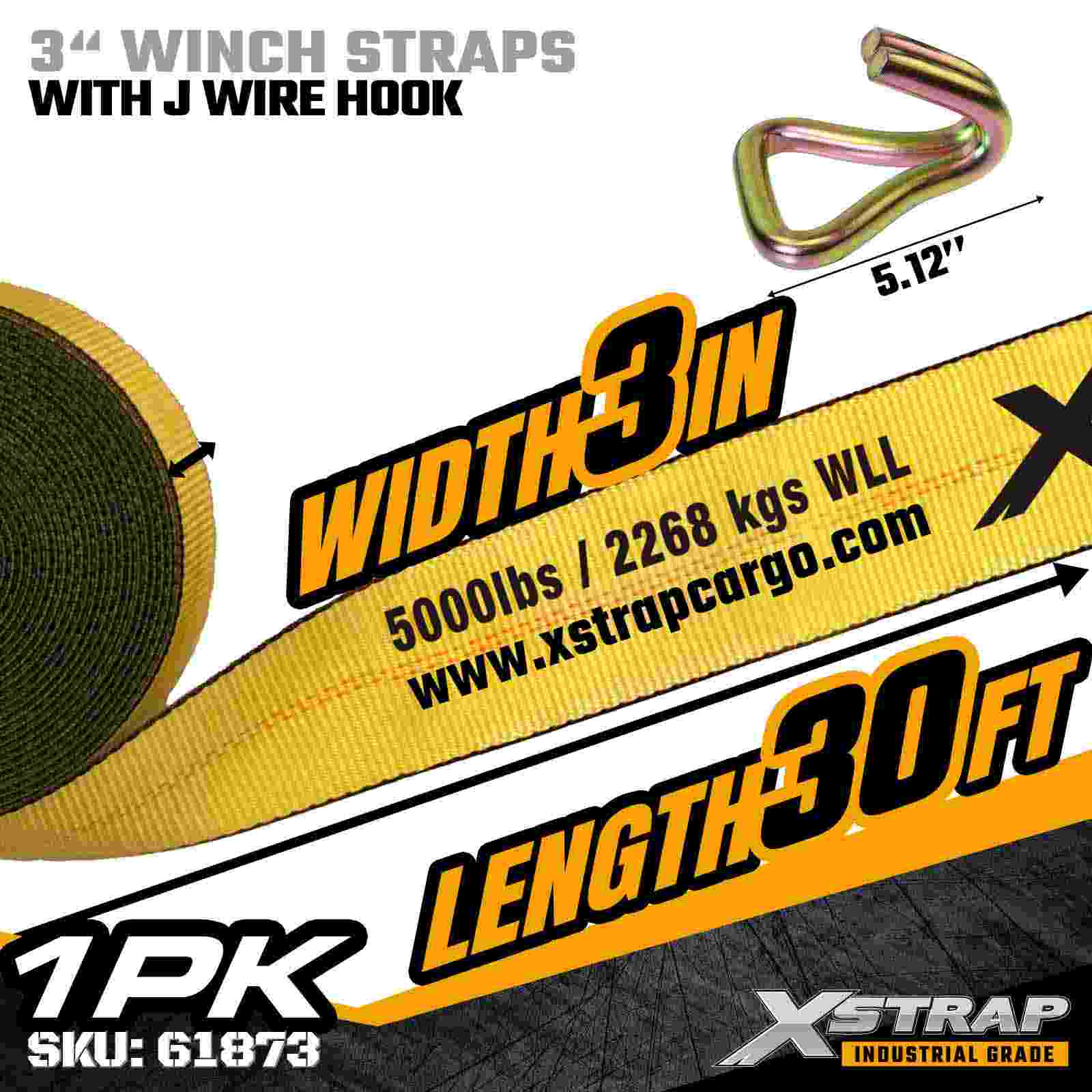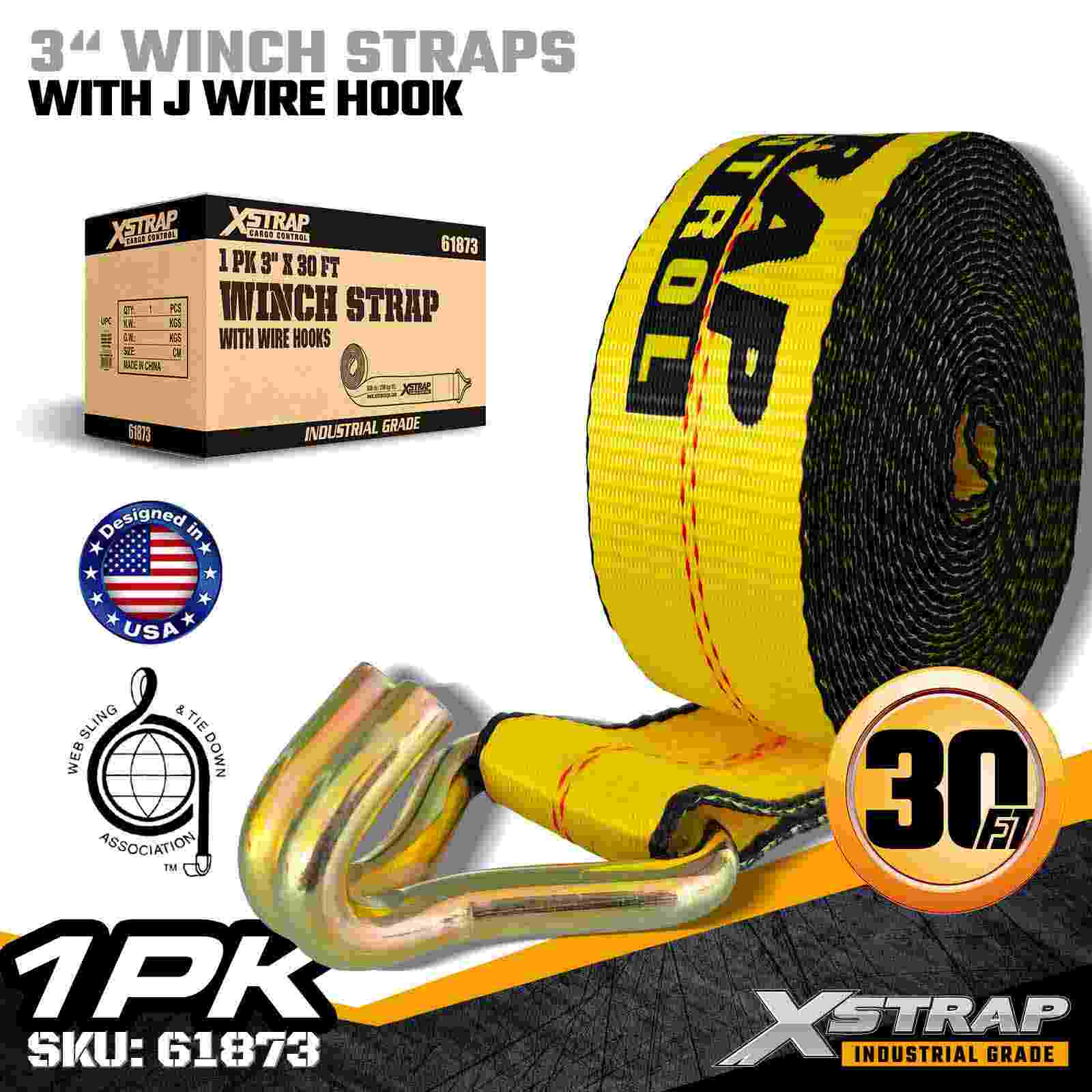 3" × 30피트 표준 윈치 스트랩(와이어 후크 포함)
