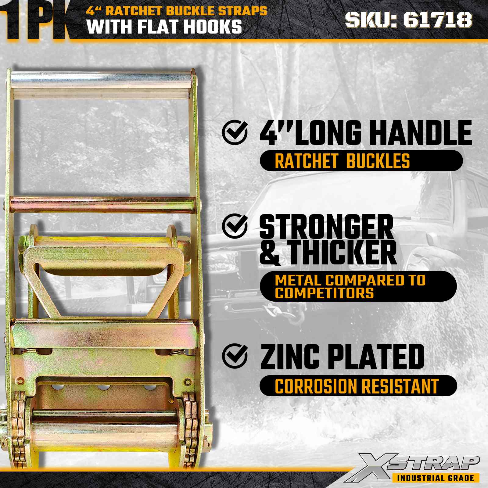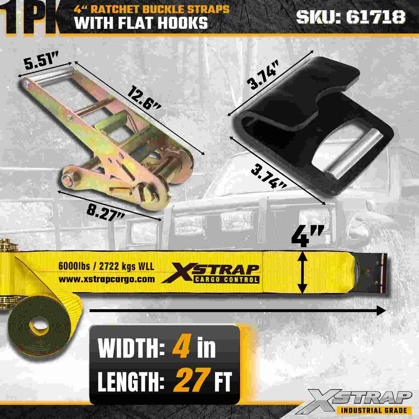 Xstrap 61718 4" × 27피트 래칫 버클 스트랩(1팩)은 강화된 플랫 후크와 견고한 래칫 메커니즘을 특징으로 하는 극한의 화물 고정을 위해 제작되었습니다. 6,000lbs의 작업 하중 제한과 18,000lbs의 파손 강도를 갖춘 이 스트랩은 최대의 강도와 신뢰성이 필수적인 전문 플랫베드 운반, 건축 자재, 기계 운송 및 산업 물류용으로 설계되었습니다.