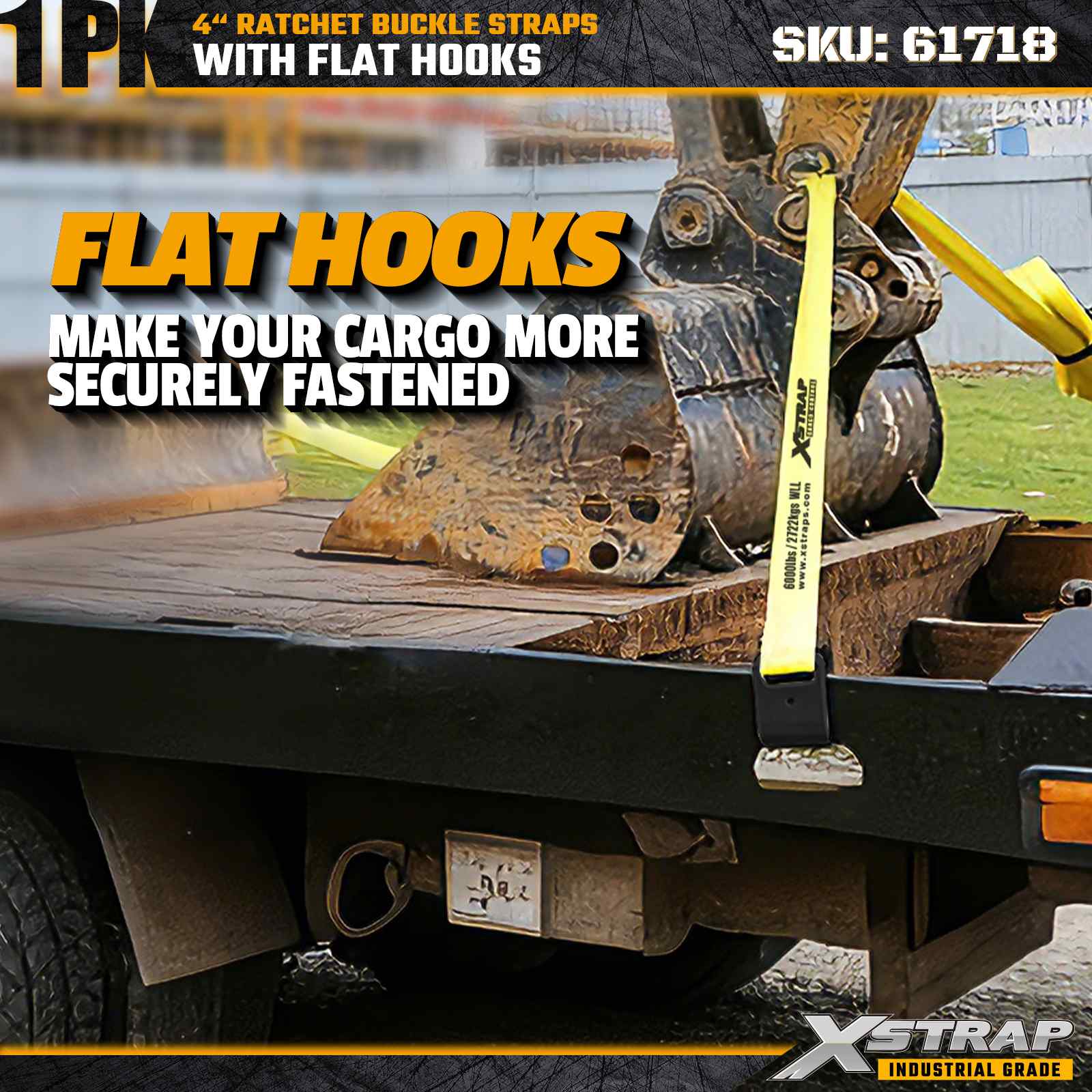 - 안전한 앵커 포인트를 위한 견고한 플랫 후크: 평상형 트레일러의 러브 레일, 스테이크 포켓 및 앵커 포인트에 쉽게 부착할 수 있는 산업용 등급 플랫 후크가 장착되어 안정적이고 신뢰할 수 있는 화물 고정을 보장합니다.
