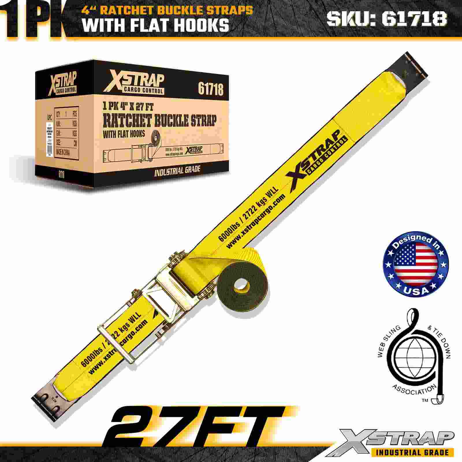 - 전문 운송 표준에 맞게 설계됨: 18,000lbs 파손 강도 및 6,000lbs WLL 등급을 받은 이 스트랩은 최대의 내구성과 성능을 요구하는 트럭 운송 차량, 계약자 및 산업 물류의 요구 사항을 충족합니다.