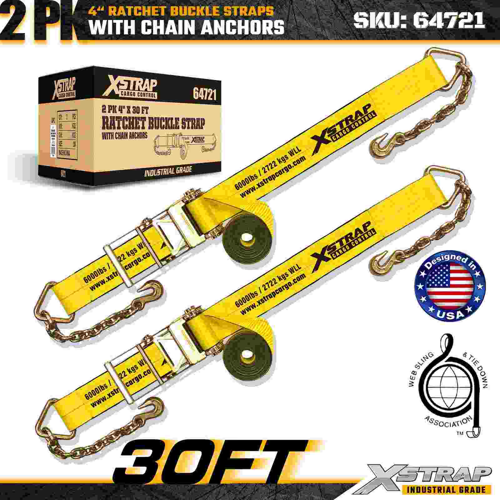 체인 앵커가 포함된 4" × 30피트 래칫 버클 스트랩
