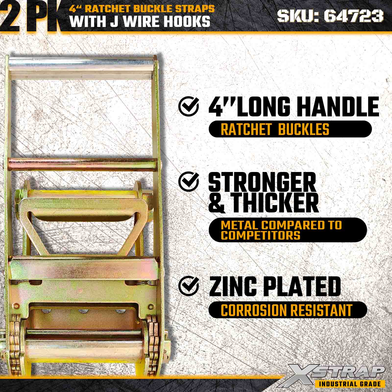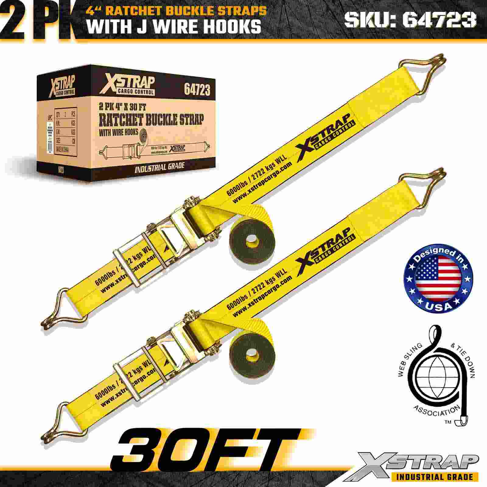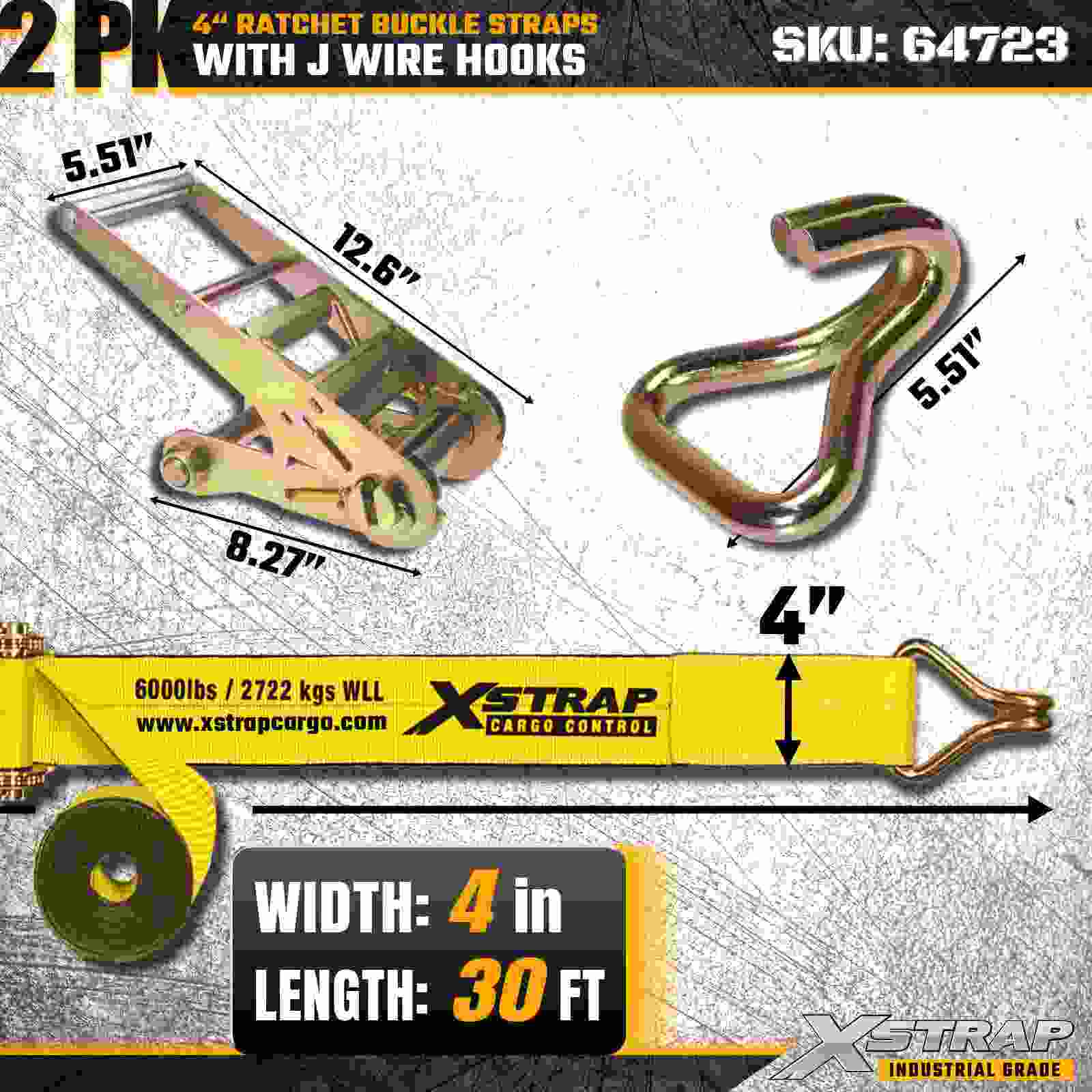 Xstrap 64723 4" × 30피트 래칫 버클 스트랩(2팩)은 강화된 와이어 후크와 내구성 있는 래칫 메커니즘을 특징으로 하는 견고한 화물 고정을 위해 설계되었습니다. 6,000lbs의 작업 하중 제한과 18,000lbs의 파손 강도를 갖춘 이 스트랩은 평판 운반, 기계 운송, 목재, 강철 적재 및 산업용 화물 응용 분야에 이상적입니다.