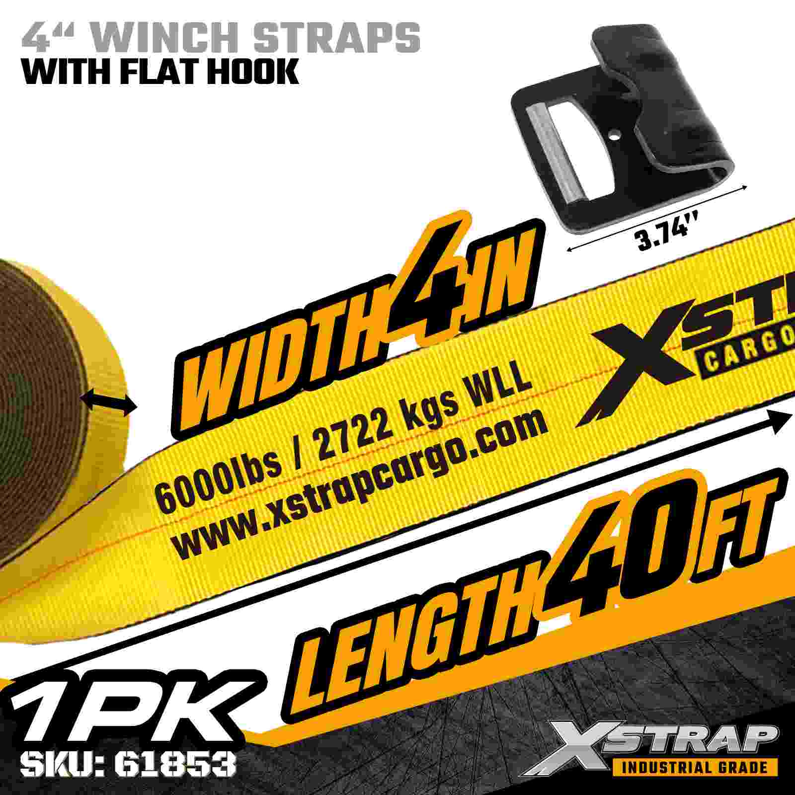 4" × 40ft 표준 윈치 스트랩(플랫 후크 포함)