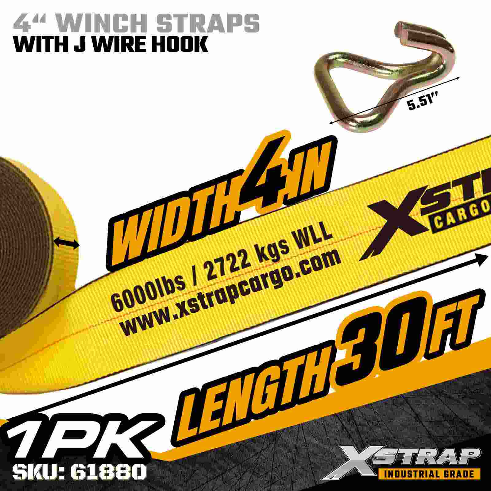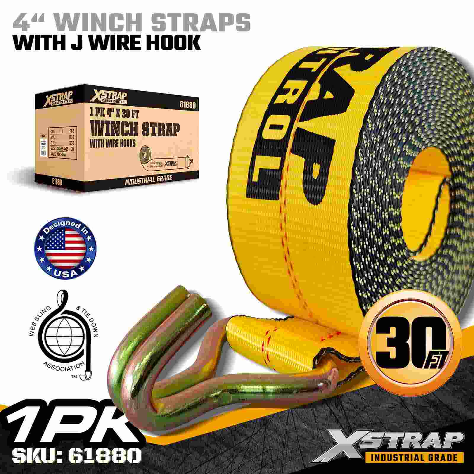 4" × 30피트 표준 윈치 스트랩(와이어 후크 포함)