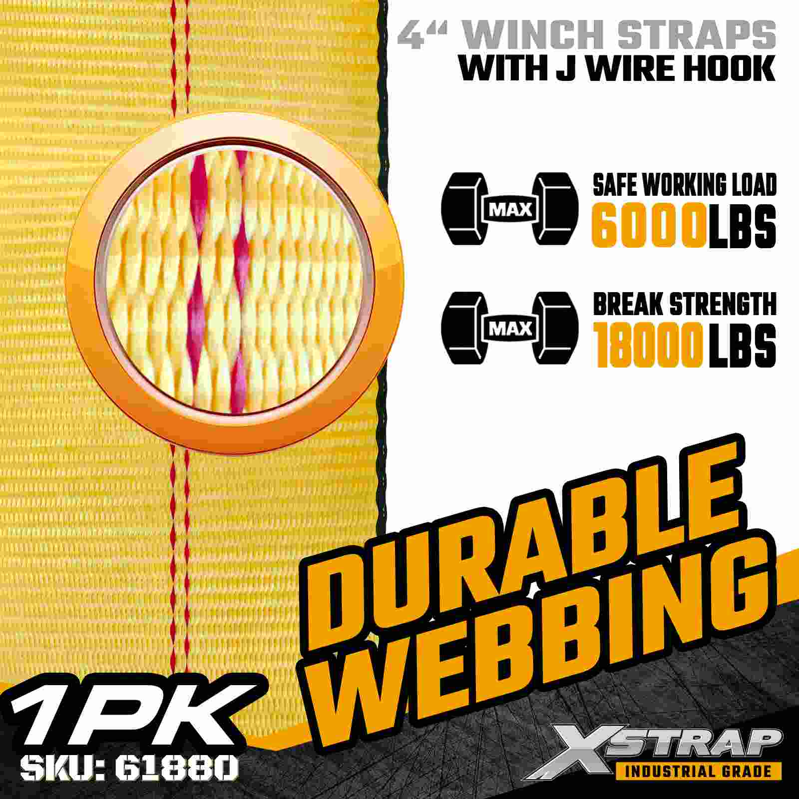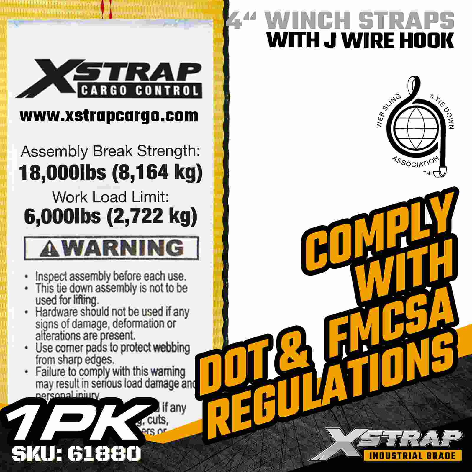Xstrap 61880 4" × 30피트 표준 윈치 스트랩은 평상형 트레일러 및 특대 산업용 화물용으로 설계된 고용량, 확장된 범위의 화물 고정 스트랩입니다. 강화된 와이어 후크와 매우 넓은 4인치 폴리에스터 웨빙이 특징인 이 4인치 윈치 스트랩은 6,000lbs의 작업 하중 제한과 18,000lbs의 파손 강도를 제공합니다. 확장된 30피트 길이는 추가 도달 거리와 유연성을 제공하여 이상적입니다. 적응형 앵커링 옵션이 필요한 넓고 높거나 불규칙한 모양의 하중을 고정하는 데 사용됩니다.