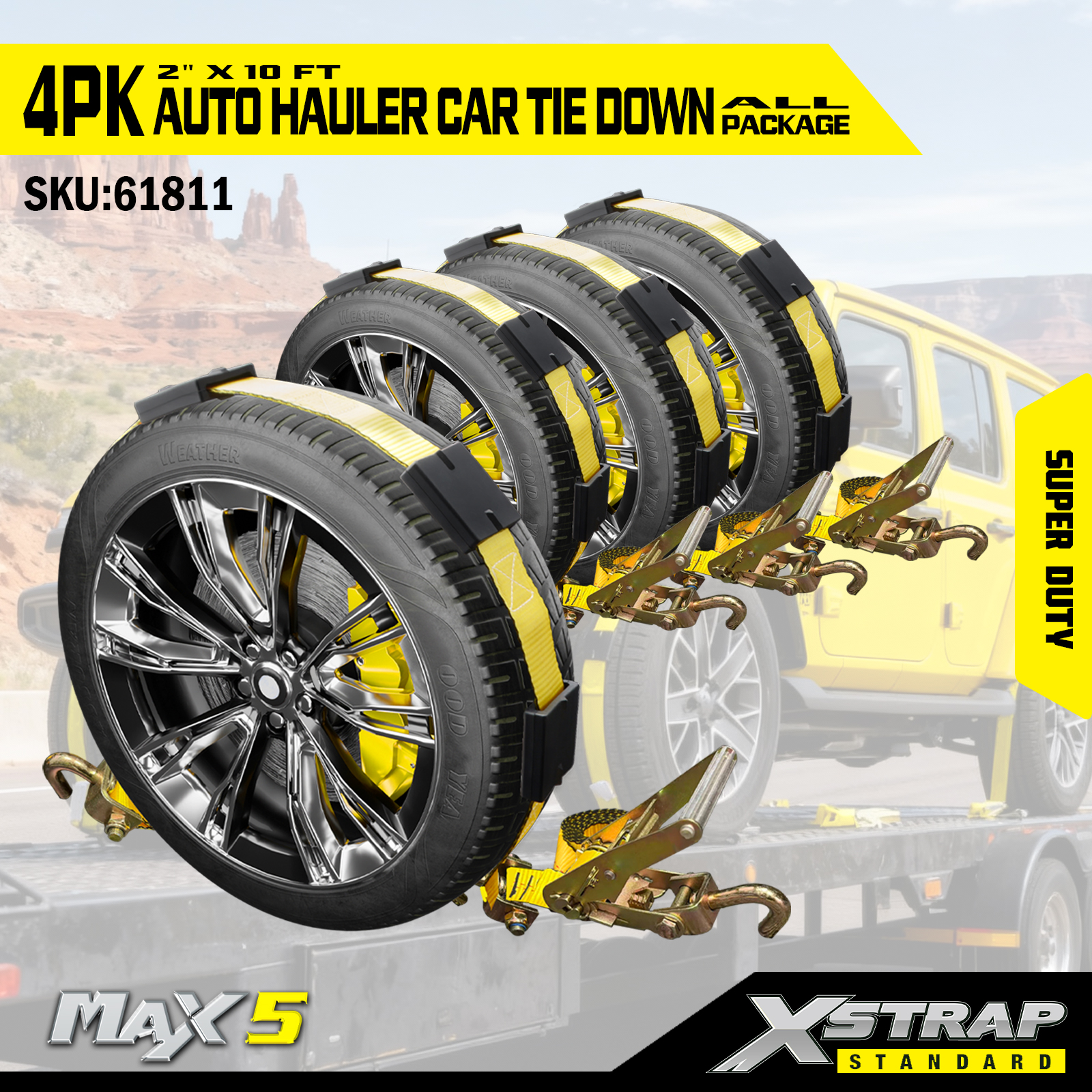 Xstrap 차량 운반용 스트랩 헤비 듀티 6,600lbs 파손 강도 - 트레일러용 타이어 타이 다운 스트랩, SUV, 트럭, ATV, UTV용 고무 클리트가 있는 휠 타이 다운 위
