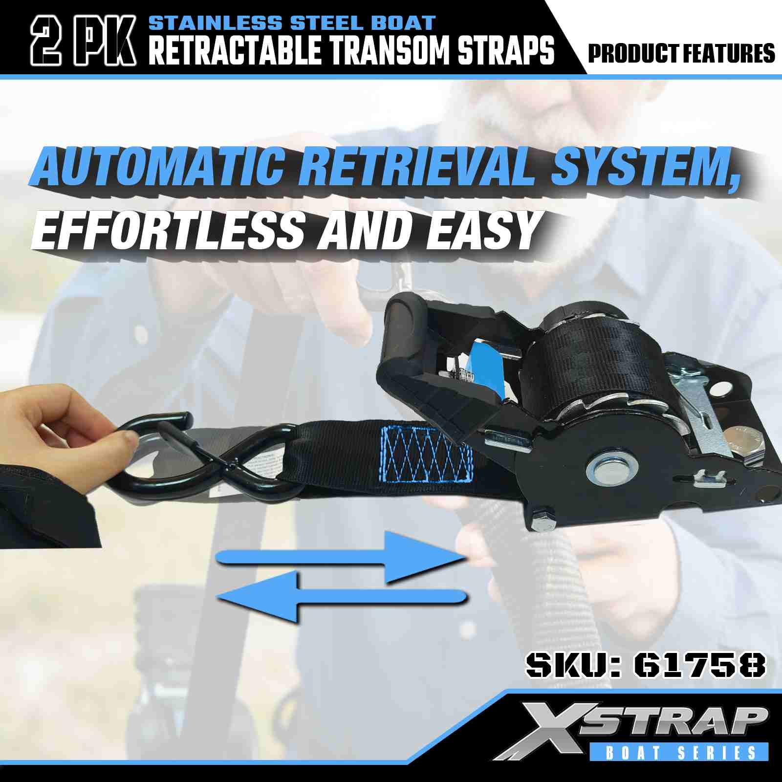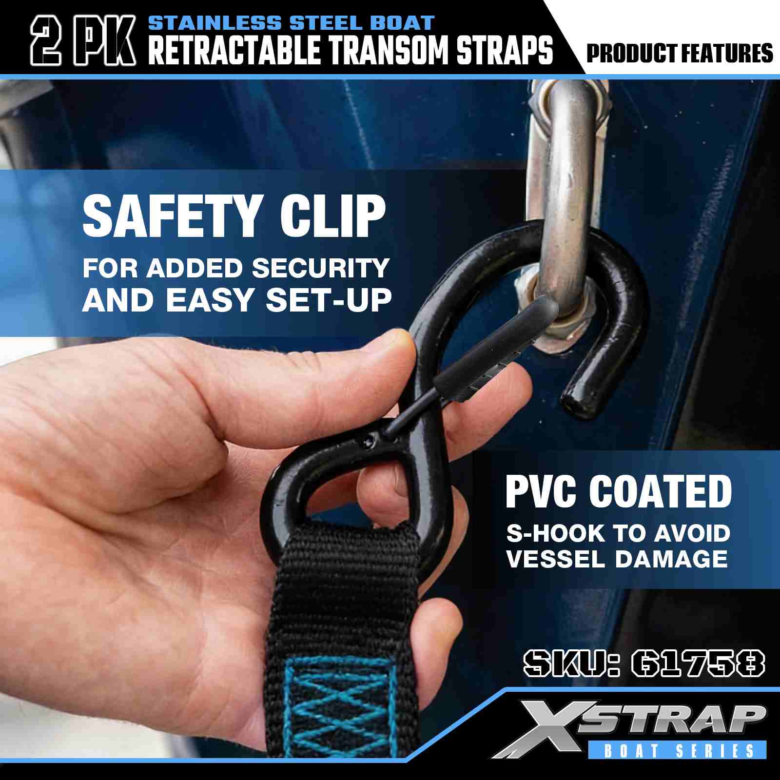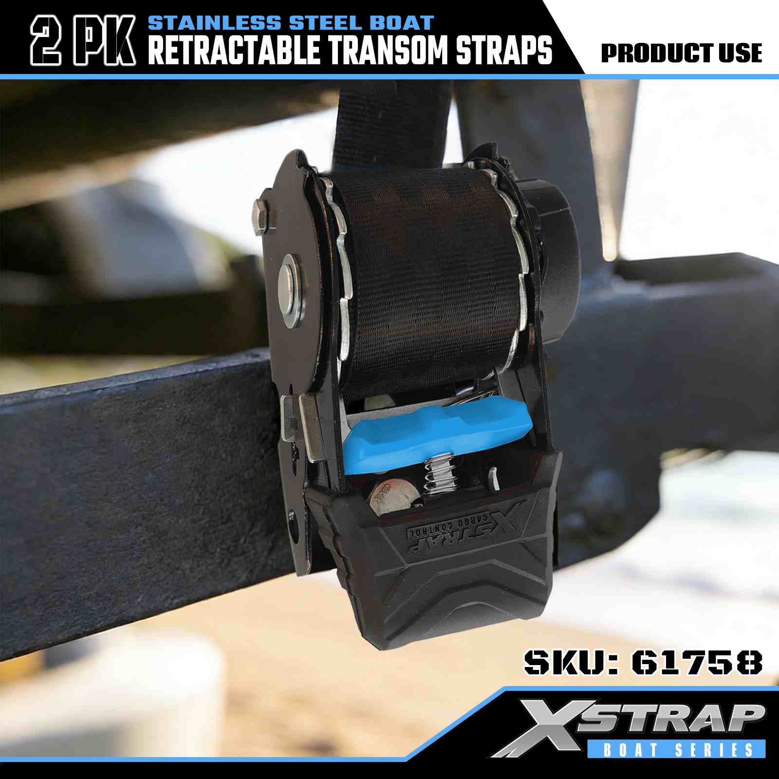 Xstrap 2PK 보트 접이식 트랜섬 스트랩(안전 S 후크 포함), 2" x 3.6' 폴리에스테르 타이다운 스트랩 접이식 스트랩, 1000lbs 용량 화물 래싱 고정 스트랩(안전 S 후크 포함) 화물 트레일러, 플랫 베드 트레일러, 스키 보트, 소형차를 고정하는 진지한 전문가용 안전 S 후크 포함.