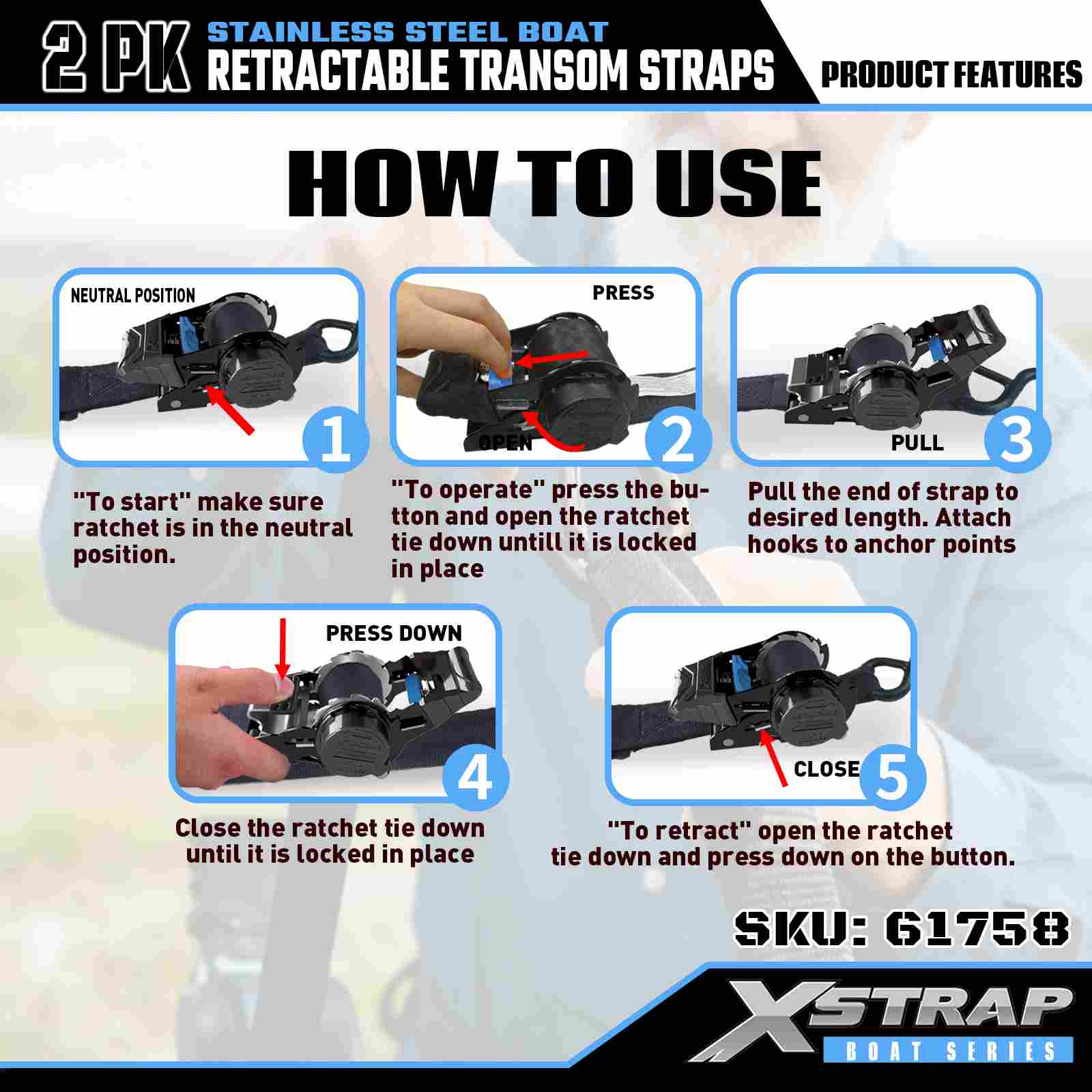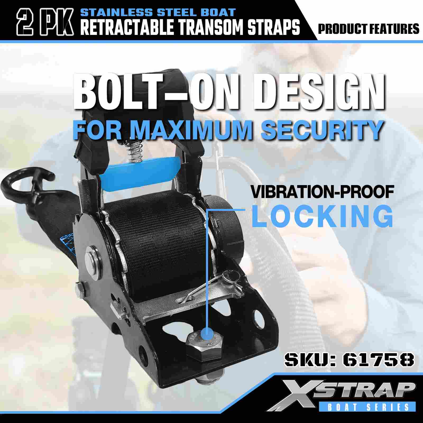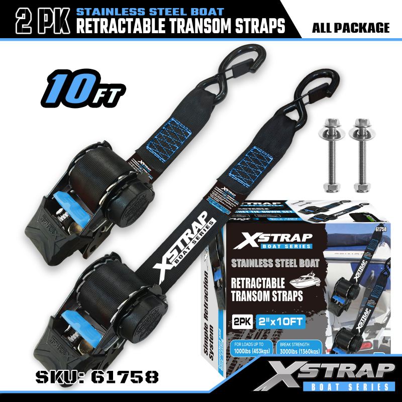 Xstrap 2PK 보트 접이식 트랜섬 스트랩(안전 S 후크 포함), 2" x 3.6' 폴리에스테르 타이다운 스트랩 접이식 스트랩, 1000lbs 용량 화물 래싱 고정 스트랩(안전 S 후크 포함) 화물 트레일러, 플랫 베드 트레일러, 스키 보트, 소형차를 고정하는 진지한 전문가용 안전 S 후크 포함.