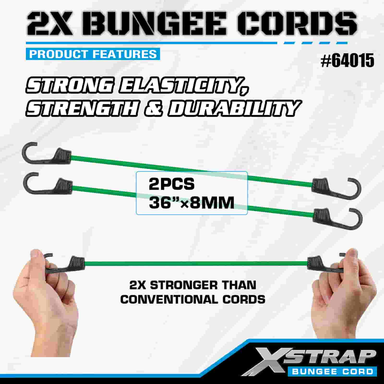 Xstrap 2PK 2X 번지 코드 8mm x 36인치, 88-110파운드 파손 강도, 화물 제어를 위한 강력한 후크 포함.