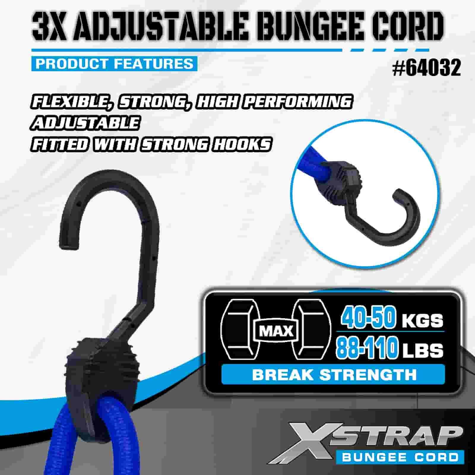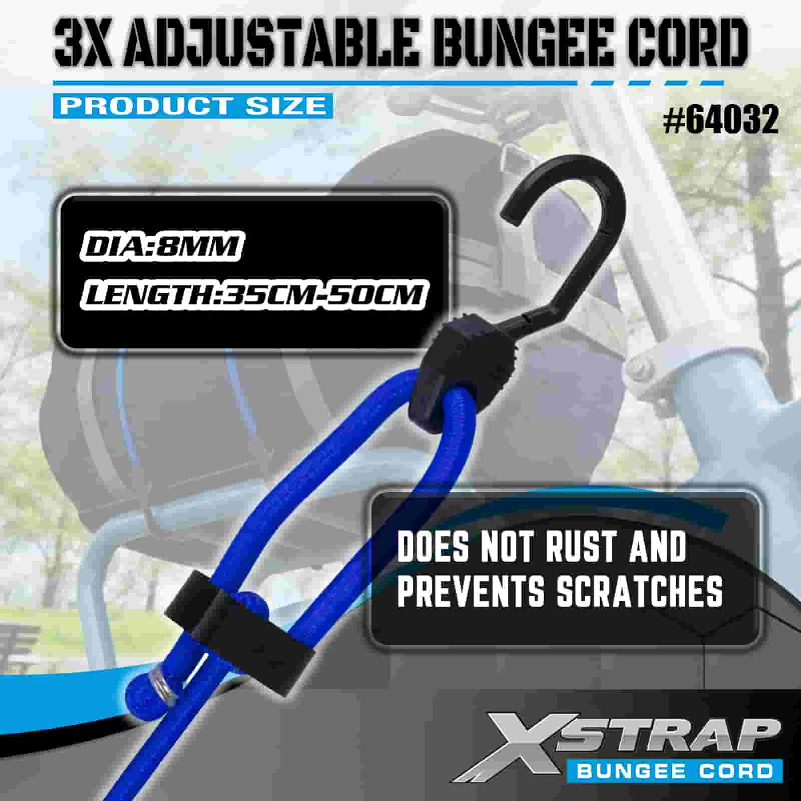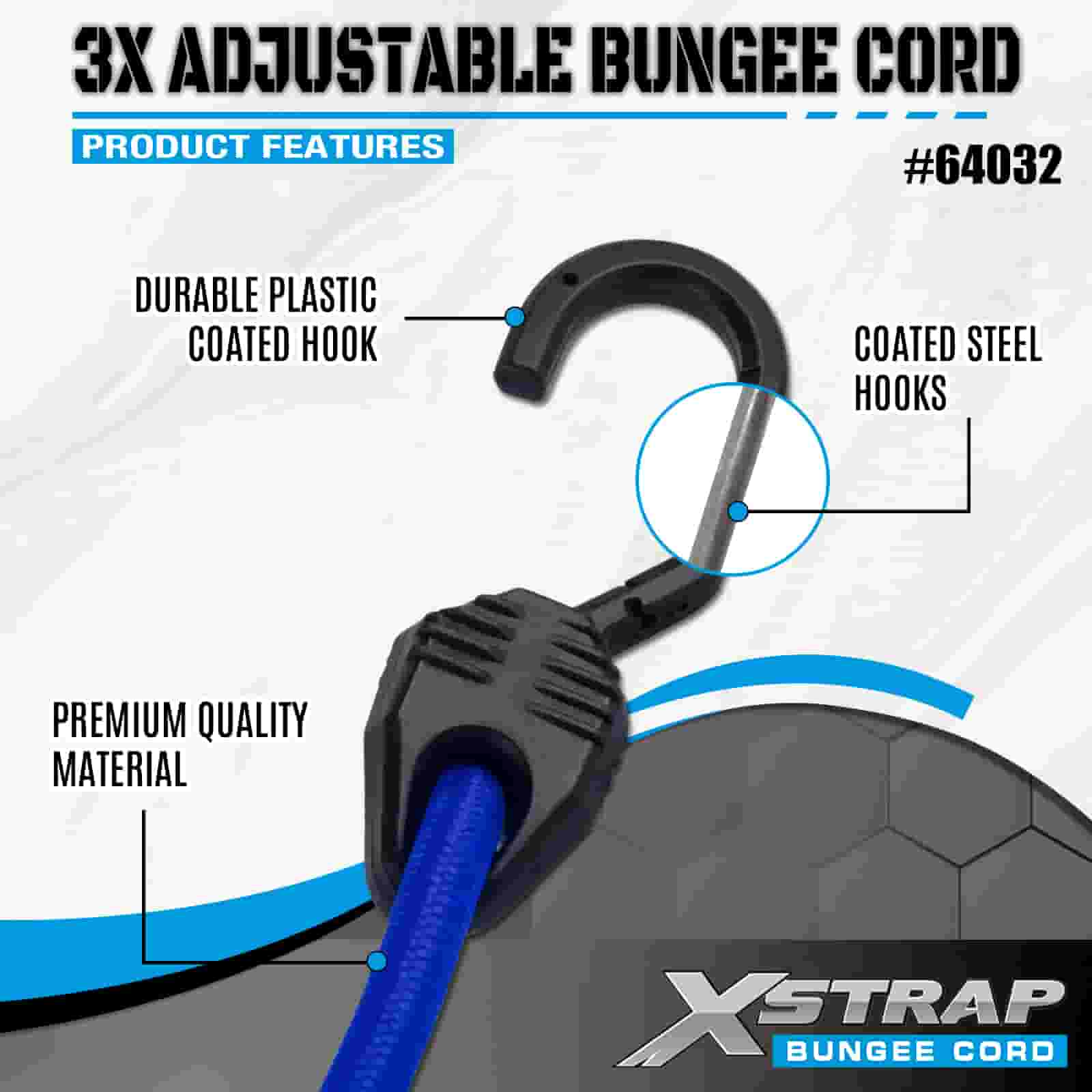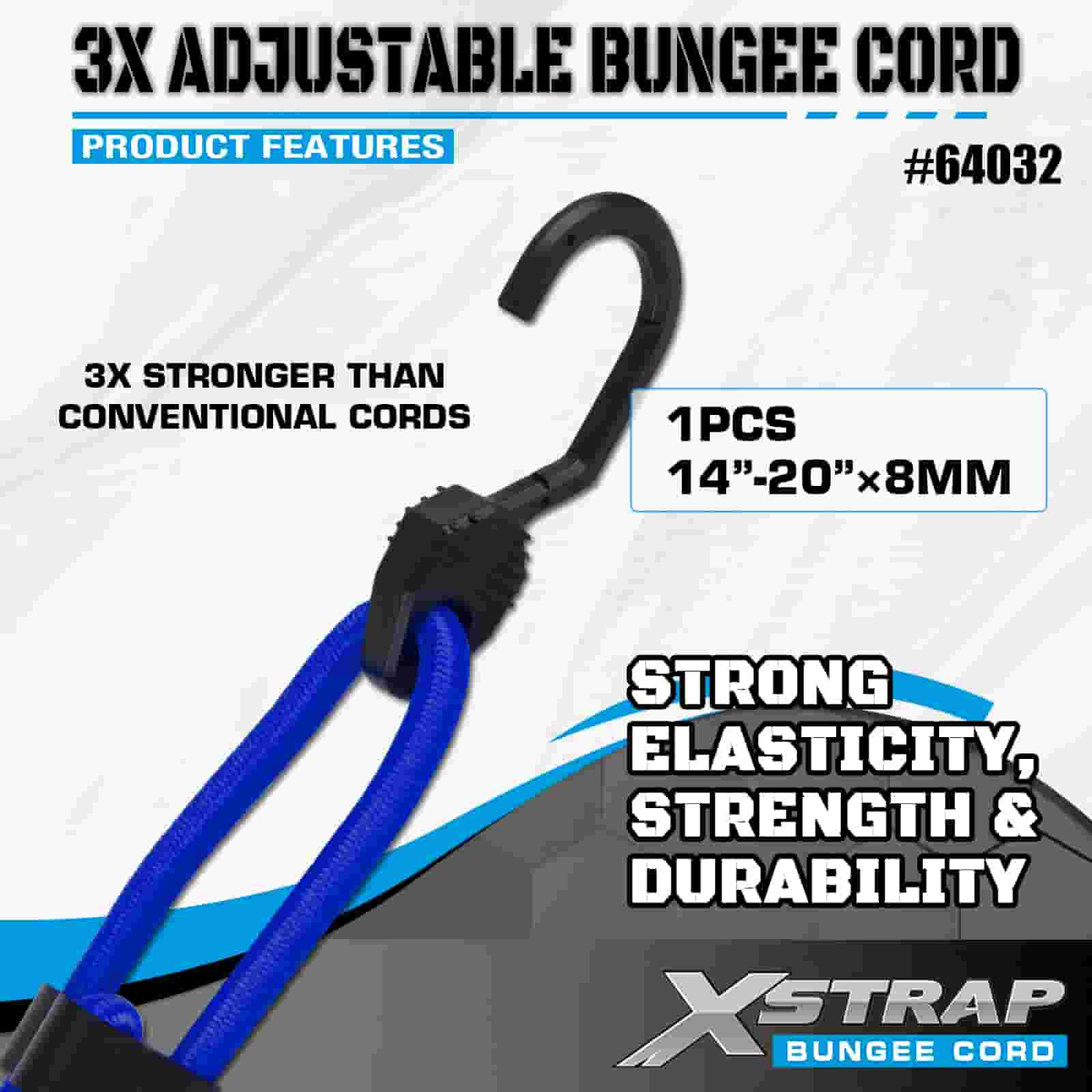 Xstrap 3X 조정 가능한 번지 코드 8mm x 14"-20", 강력한 후크로 파손 강도 132-165파운드 화물 통제를 위해 .