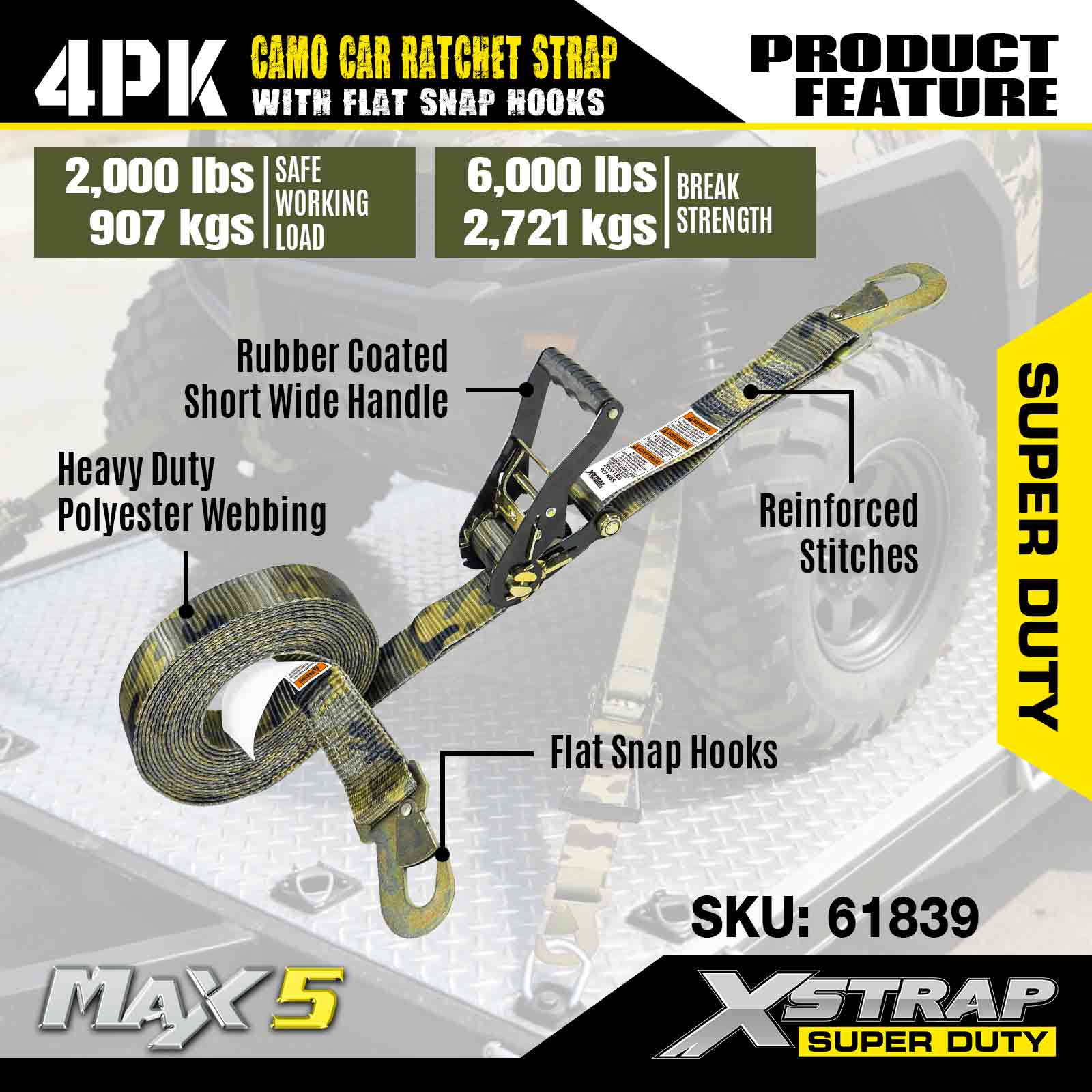 - 4개 묶음 팩 - 이 2 x 7 래칫 스트랩은 4개 팩으로 제공됩니다. 이는 오토바이, ATV, 기타 자동차 등을 묶는 것과 같은 더 많은 응용 분야에 도움이 되는 4개의 고품질 자동차 래칫 스트랩을 얻을 수 있음을 의미합니다.
