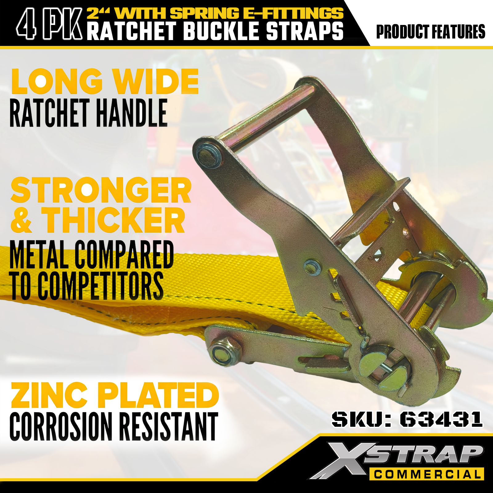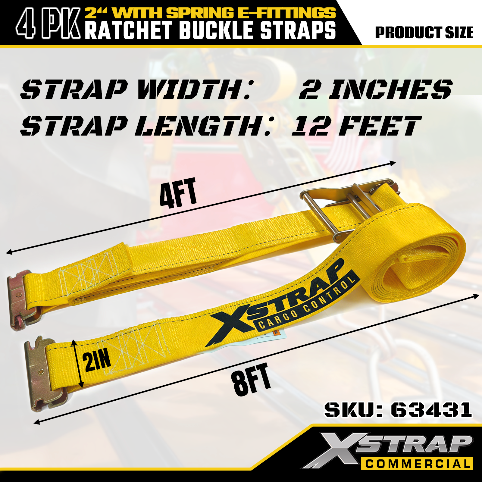 2" x 12' 4팩 스프링 E-피팅이 포함된 래칫 버클 스트랩