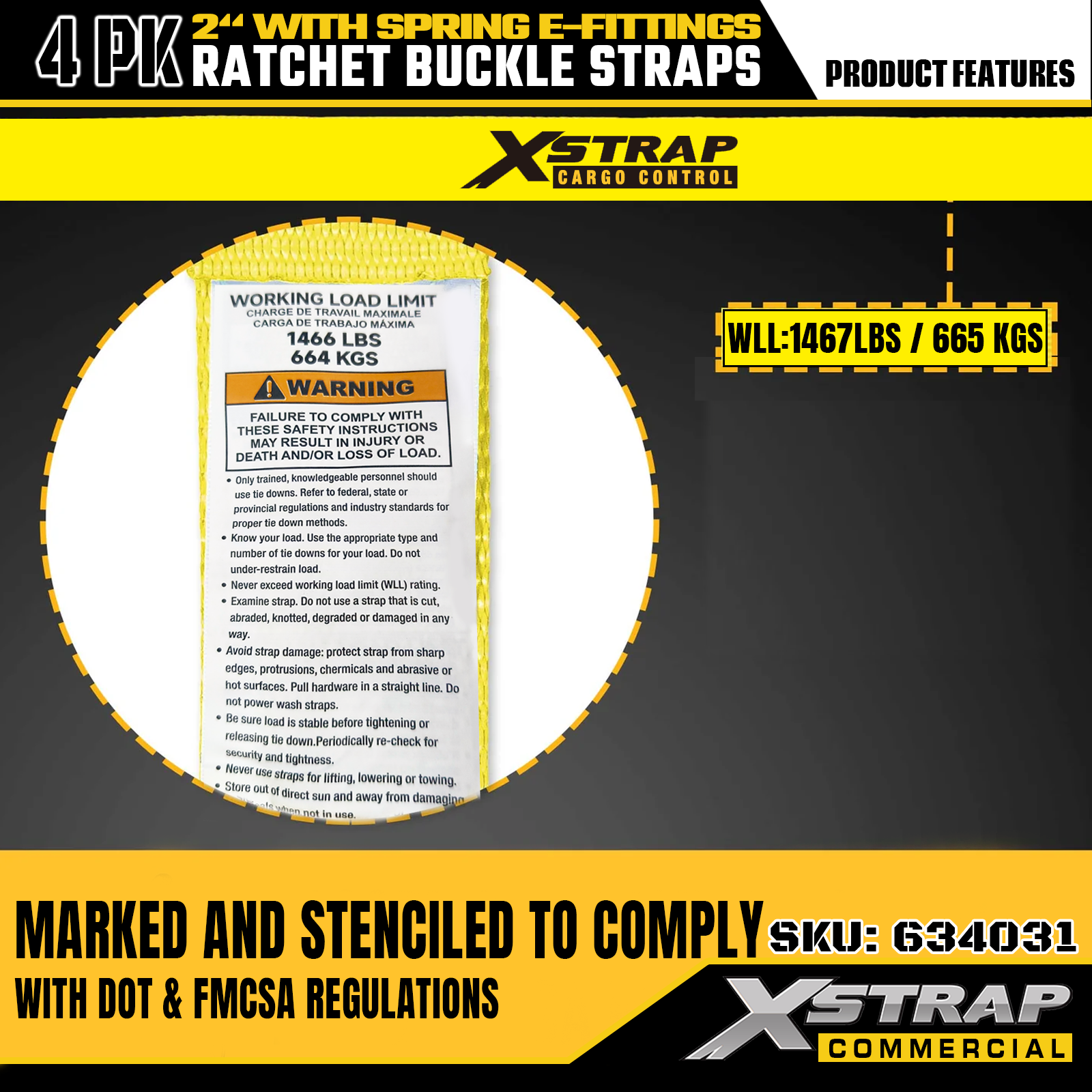- 명확한 안전 라벨링 및 편리한 4팩: 각 스트랩에는 1467lbs의 안전 작업 하중(SWL)과 4401lbs의 최대 파괴 강도가 명확하게 라벨되어 있어 올바른 사용을 위한 필수 안전 정보를 제공합니다. 4팩 구성으로 제공되며 다양한 화물 제어 및 이동 시나리오에서 배치 사용 요구 사항을 완벽하게 충족합니다.