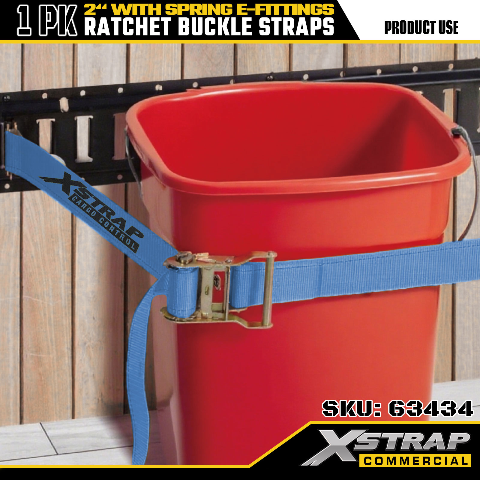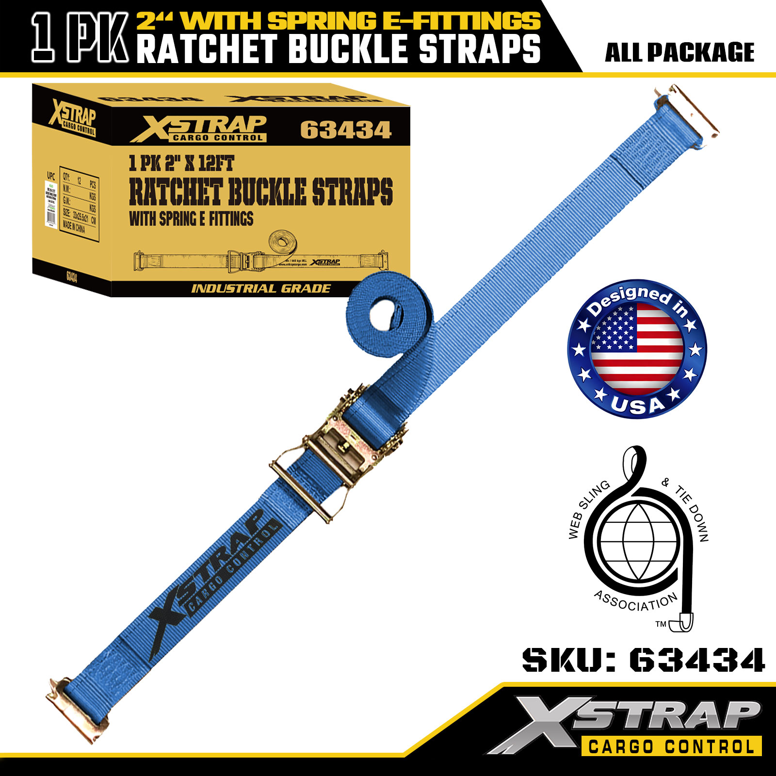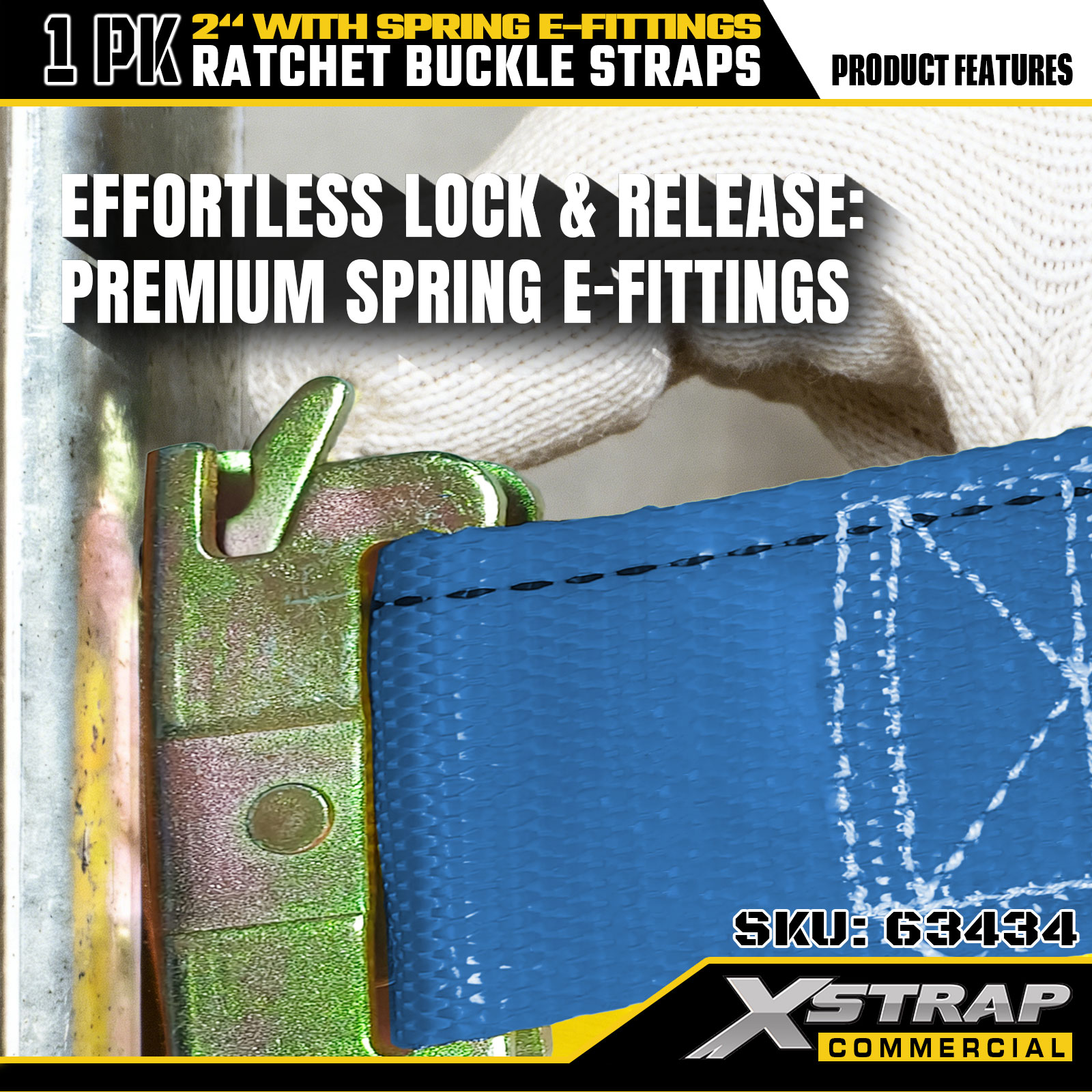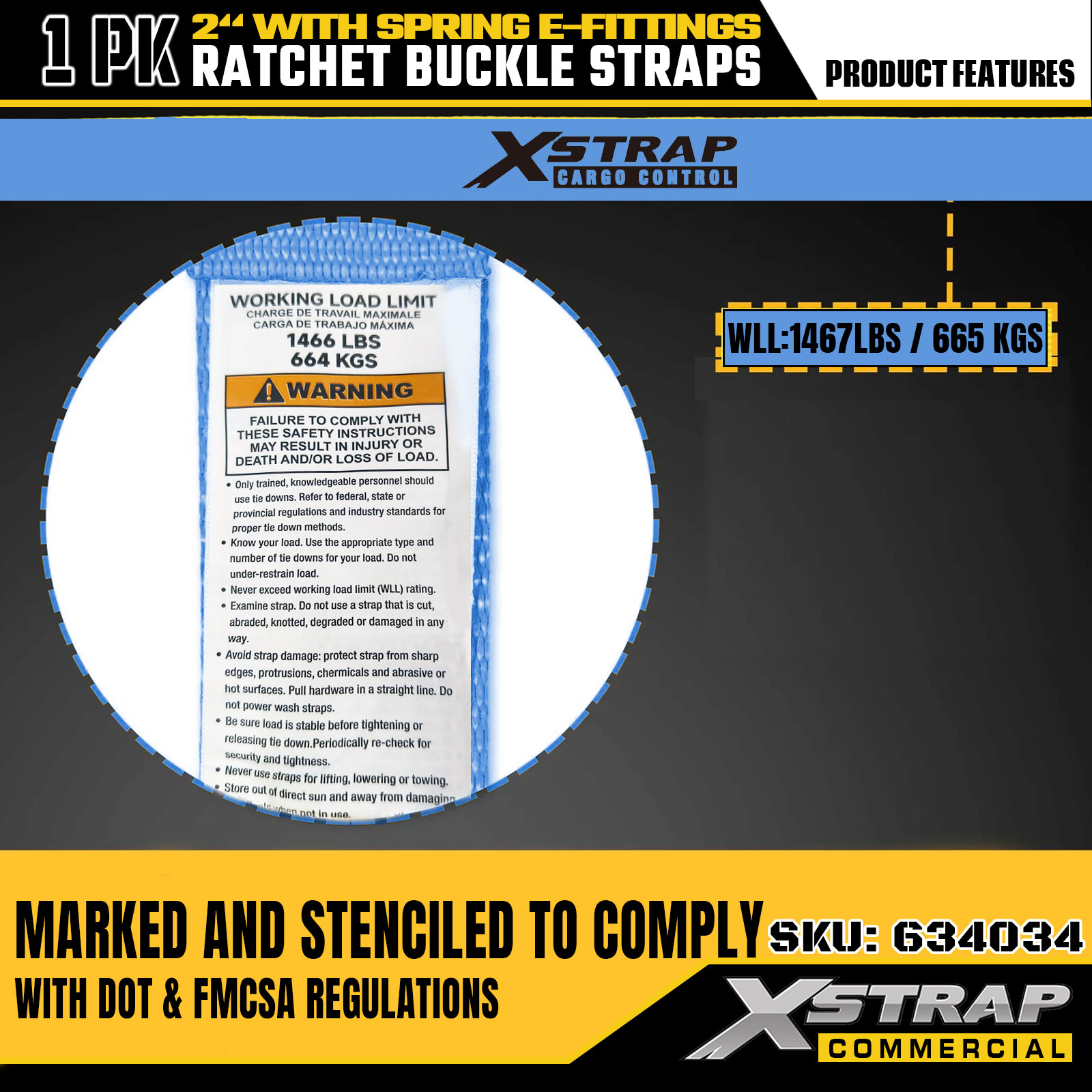 Xstrap 1팩 래칫 타이다운 스트랩, 2" x 20' 폴리에스테르 화물 고정 스트랩, 1467lbs 안전한 작업 하중 및 4401lbs 파괴 강도, 트럭, 모어, ATV용 스프링 E-피팅 포함