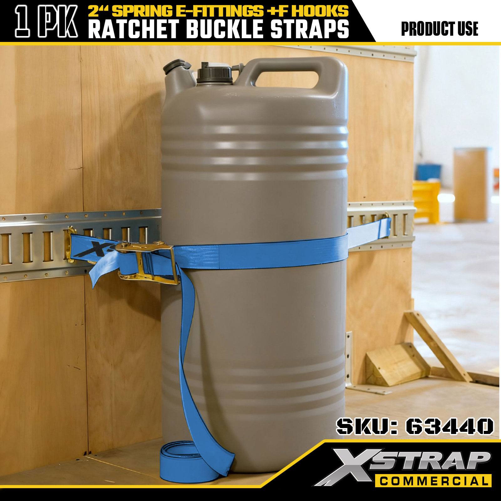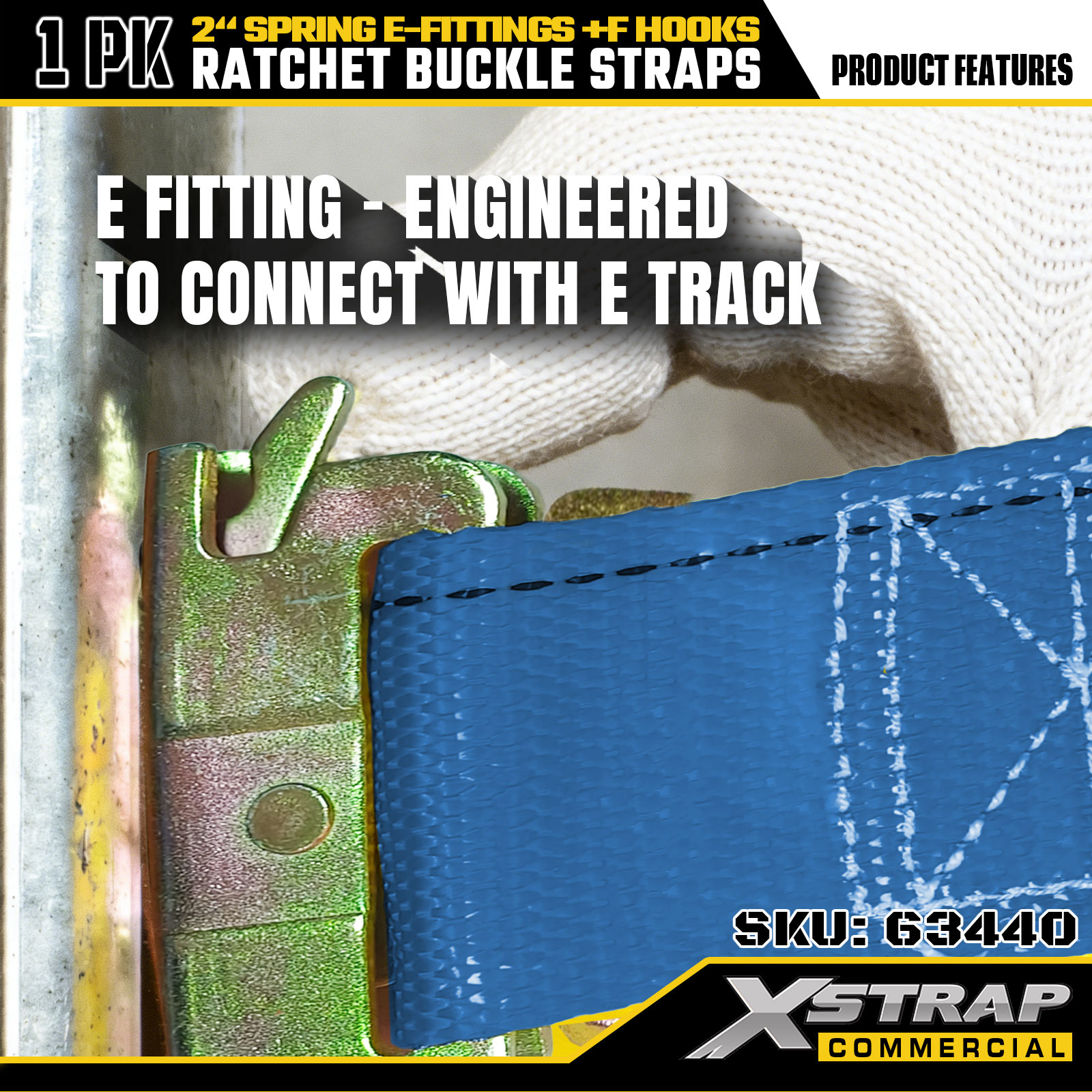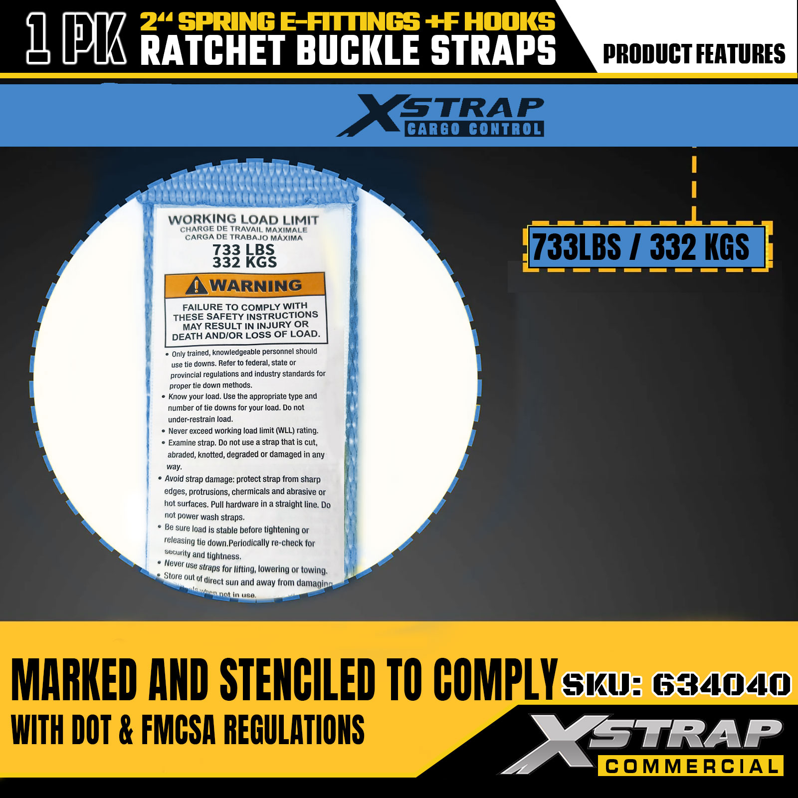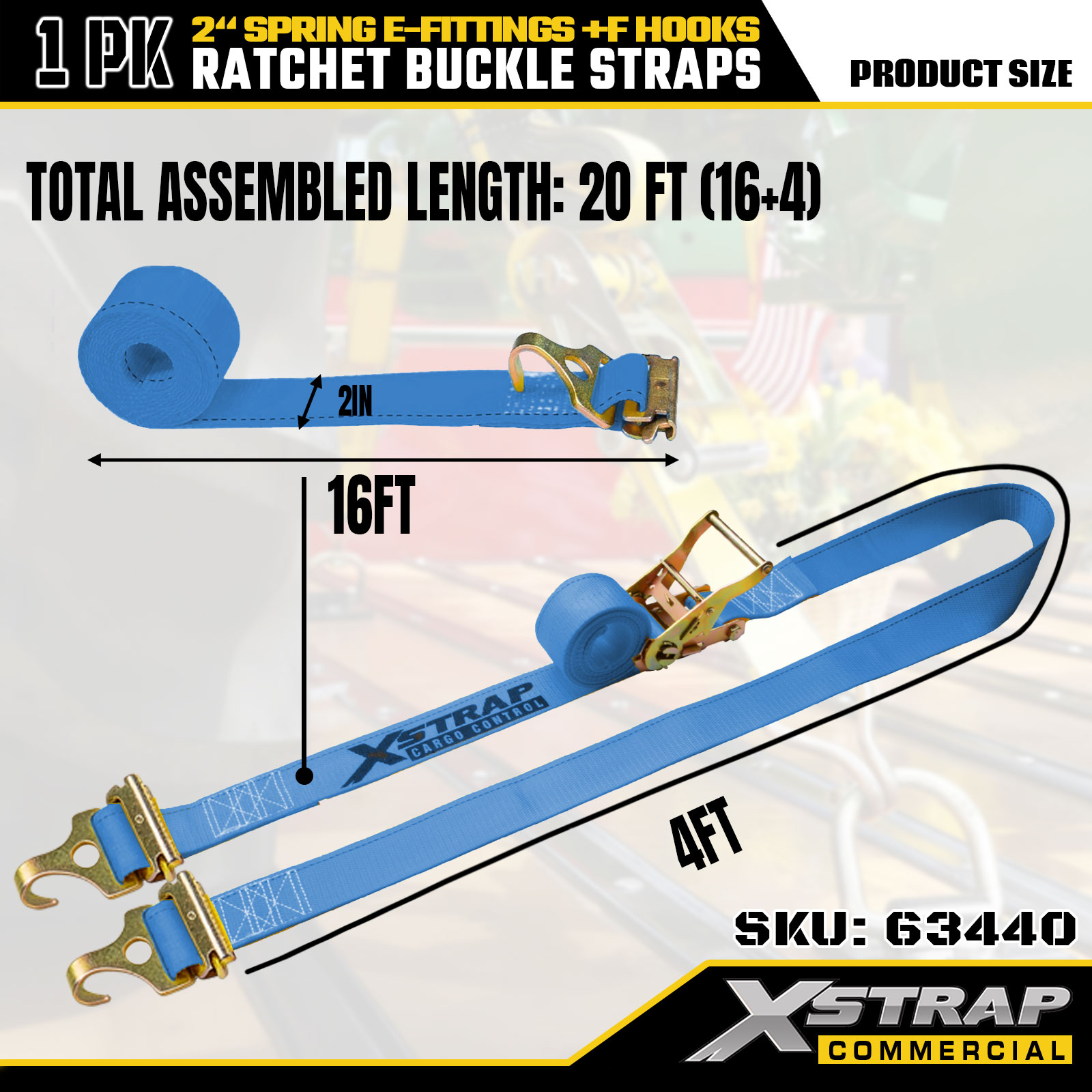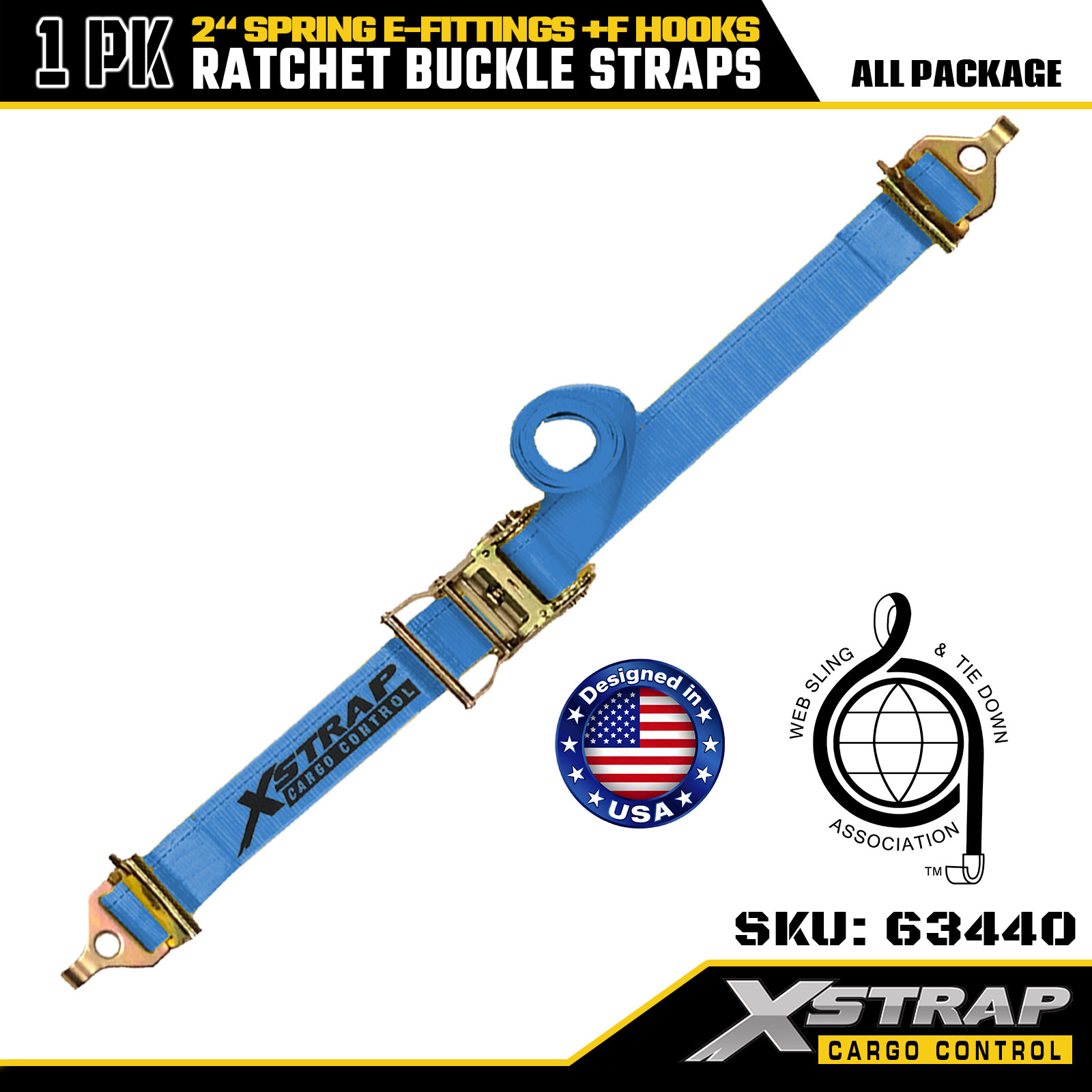 Xstrap 63440 헤비듀티 래칫 스트랩 2" x 20'(1PK) - 파란색 웨빙, 스프링 E-피팅 및 F 후크, 이동, 화물 운송 및 트럭 사용을 위한 733lbs SWL