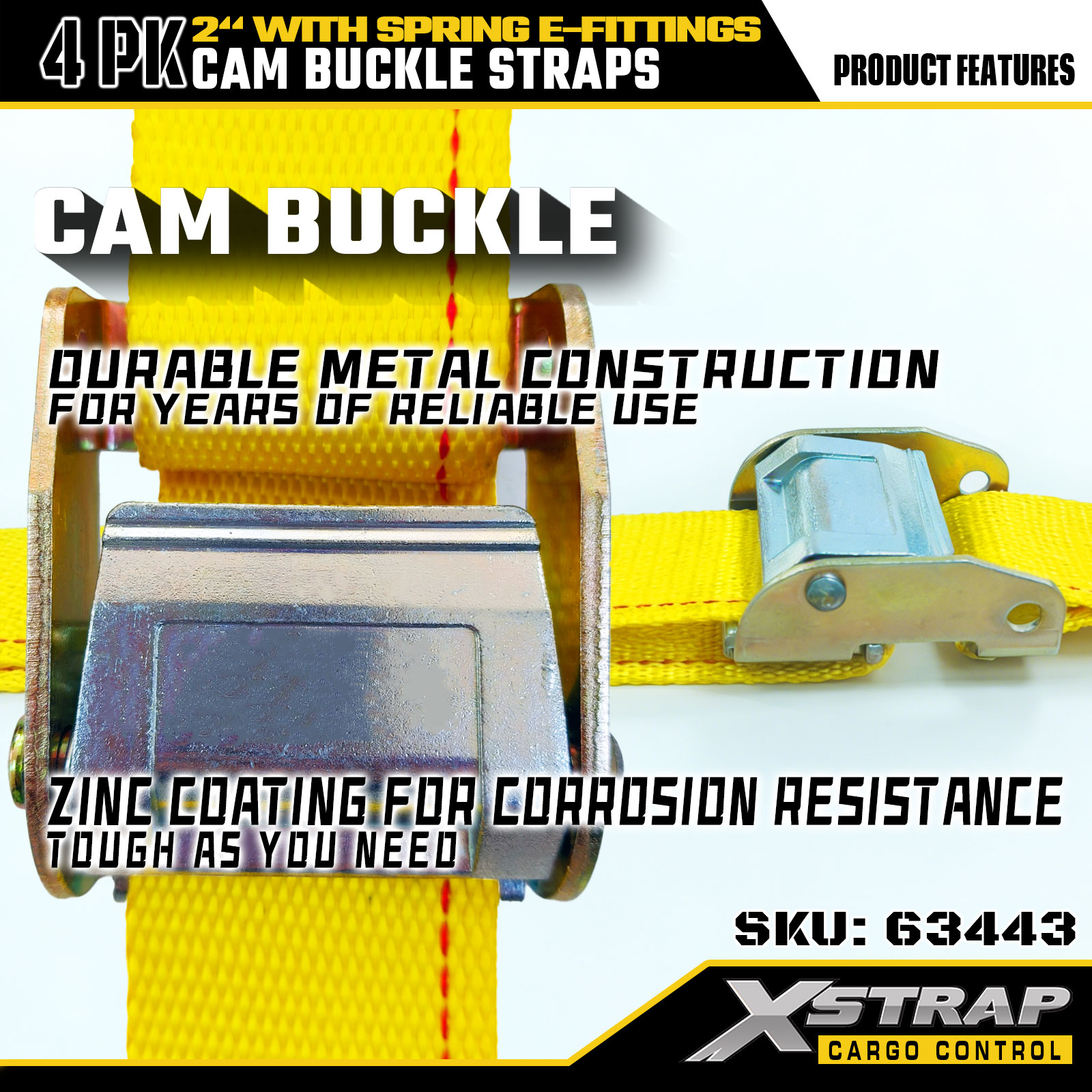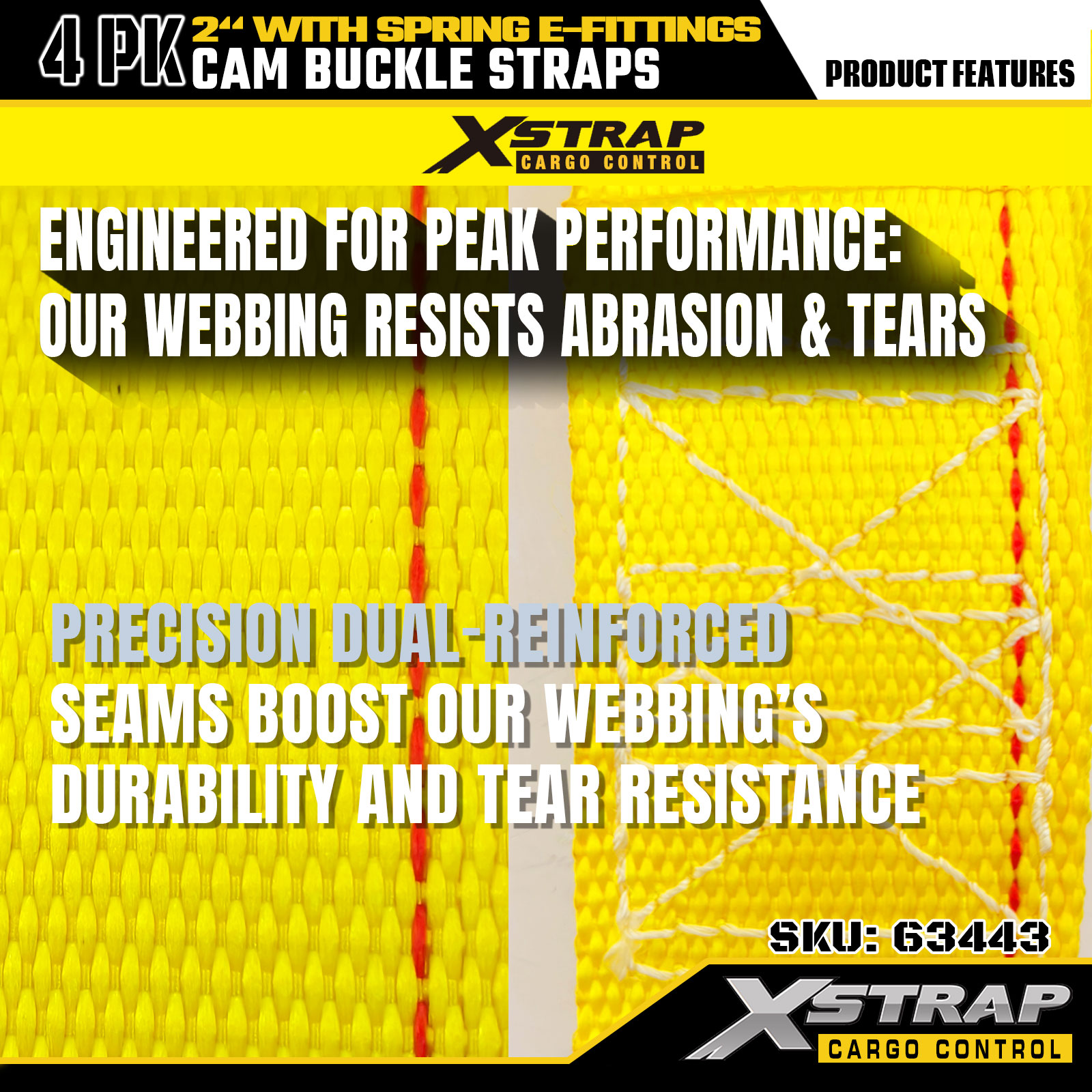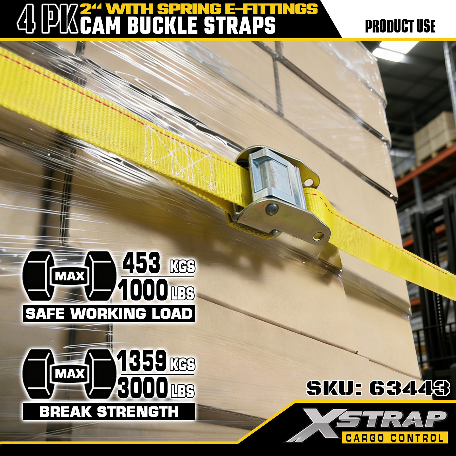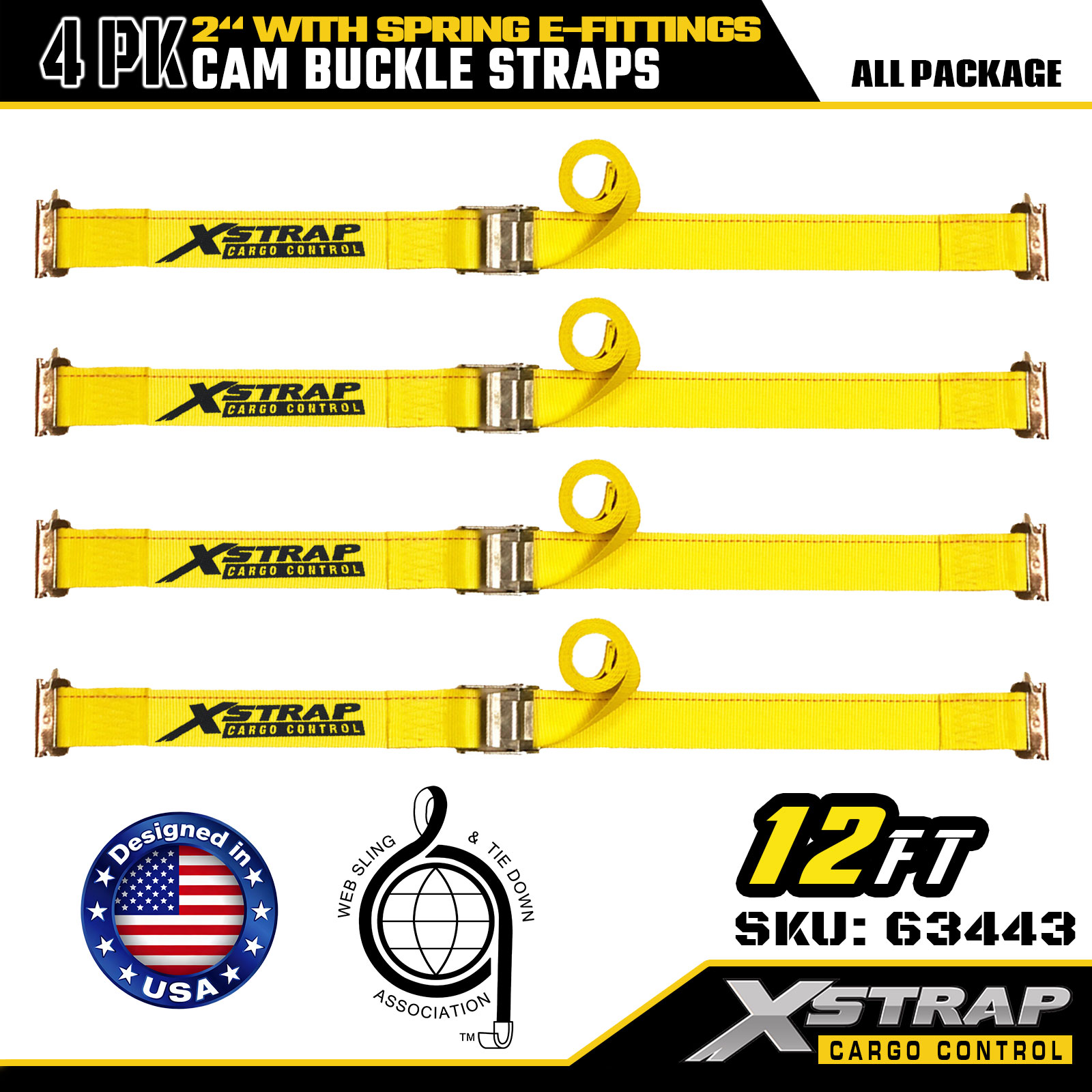 Xstrap 63443 4팩 2" x 12' 노란색 캠 버클 스트랩(스프링 E-피팅 포함), 화물 취급, 재배치 및 운송을 위한 1000lbs SWL 및 453lbs 파괴 강도