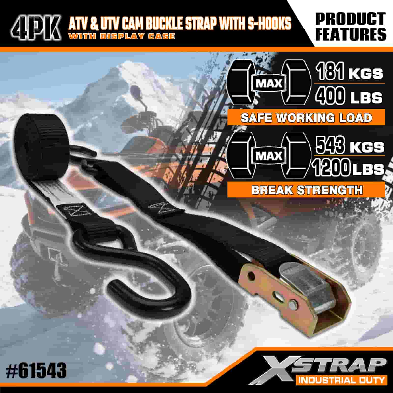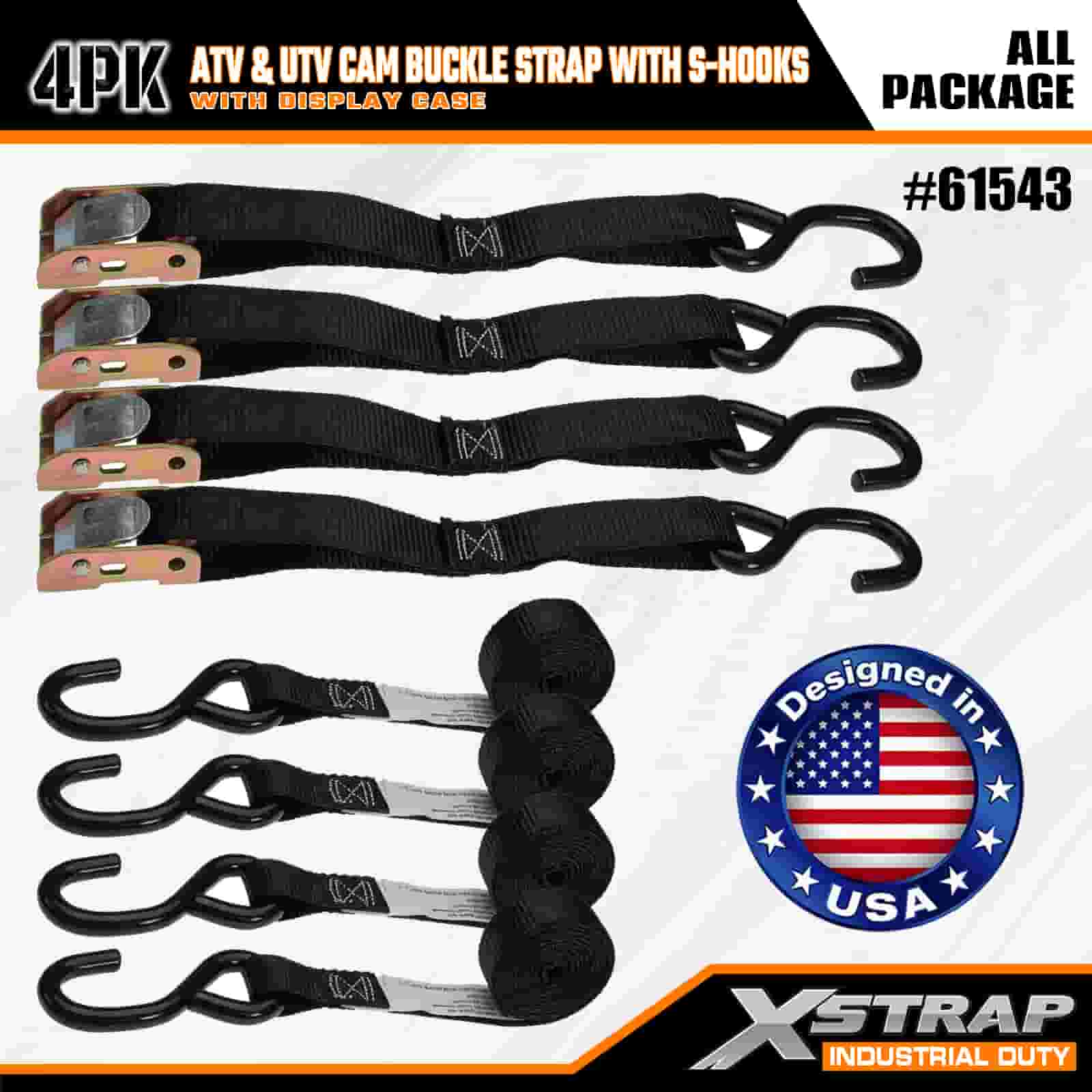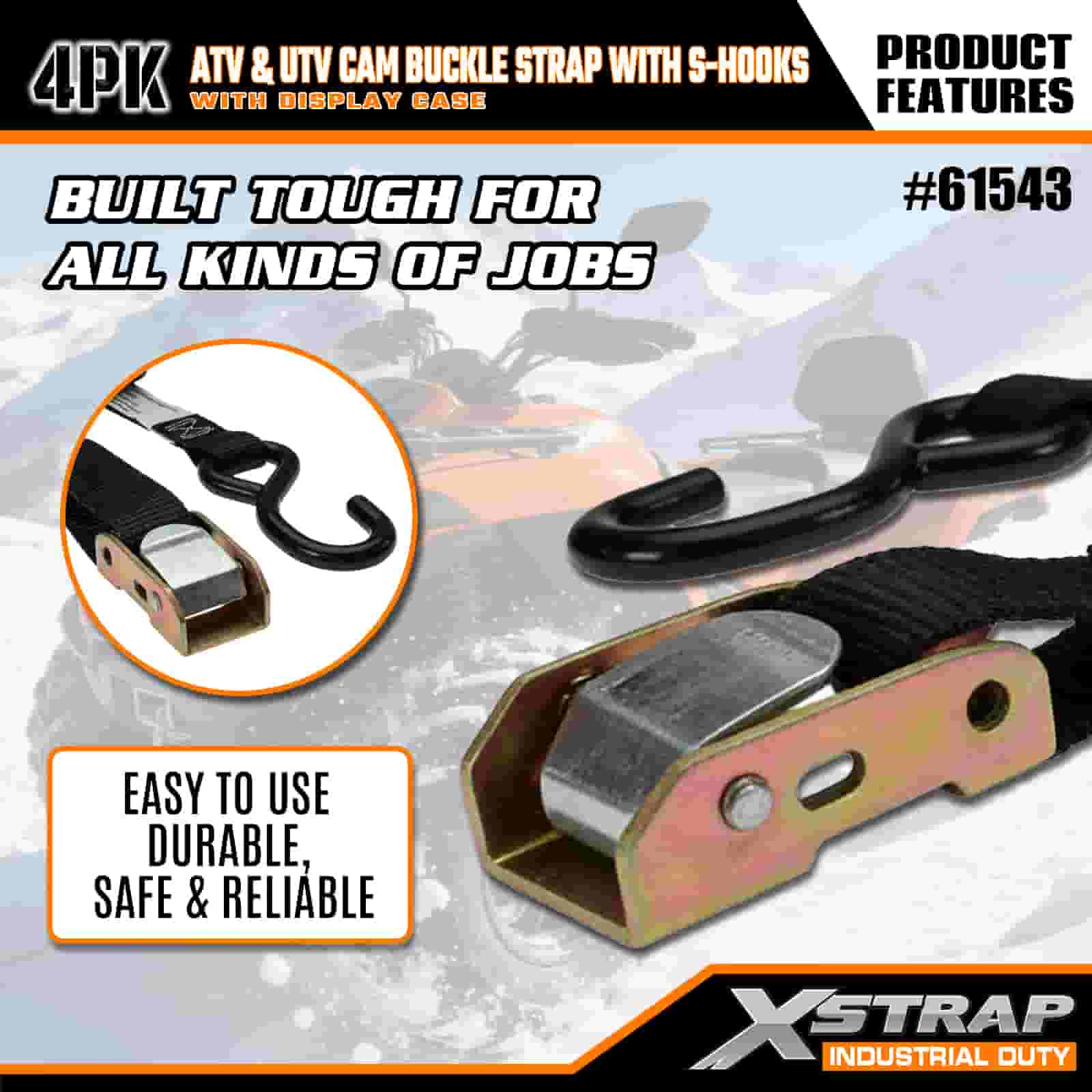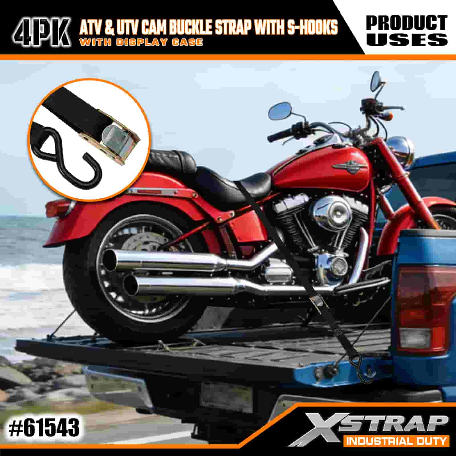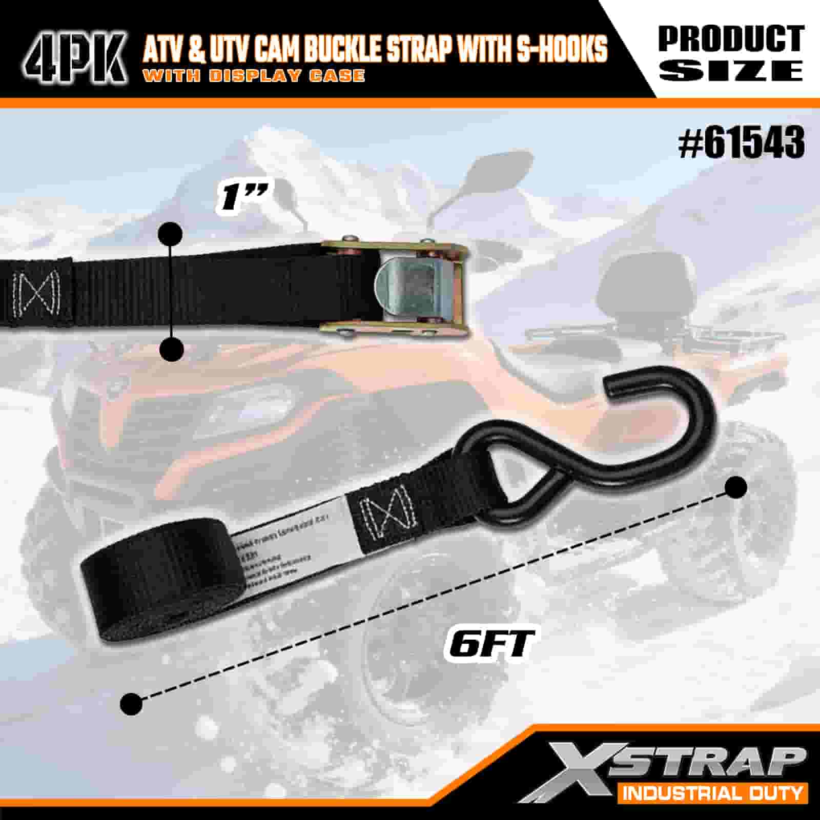 1인치 x 6피트 4PK ATV 및 AUV 캠 버클 스트랩(S 후크 포함)