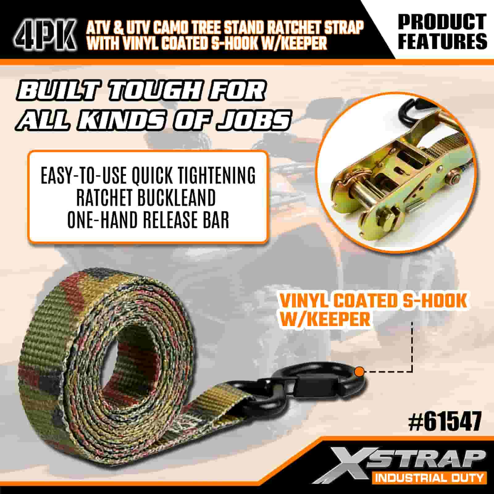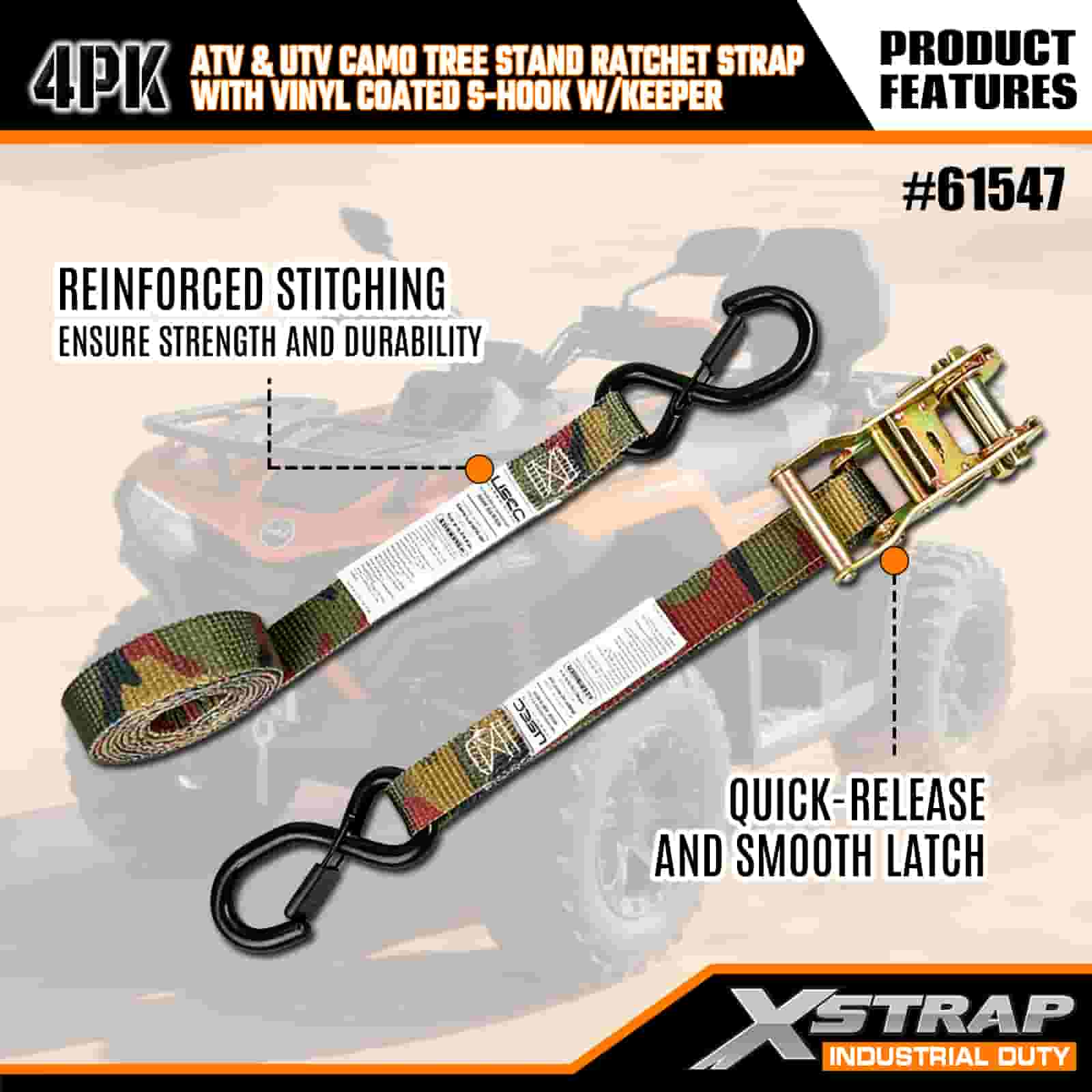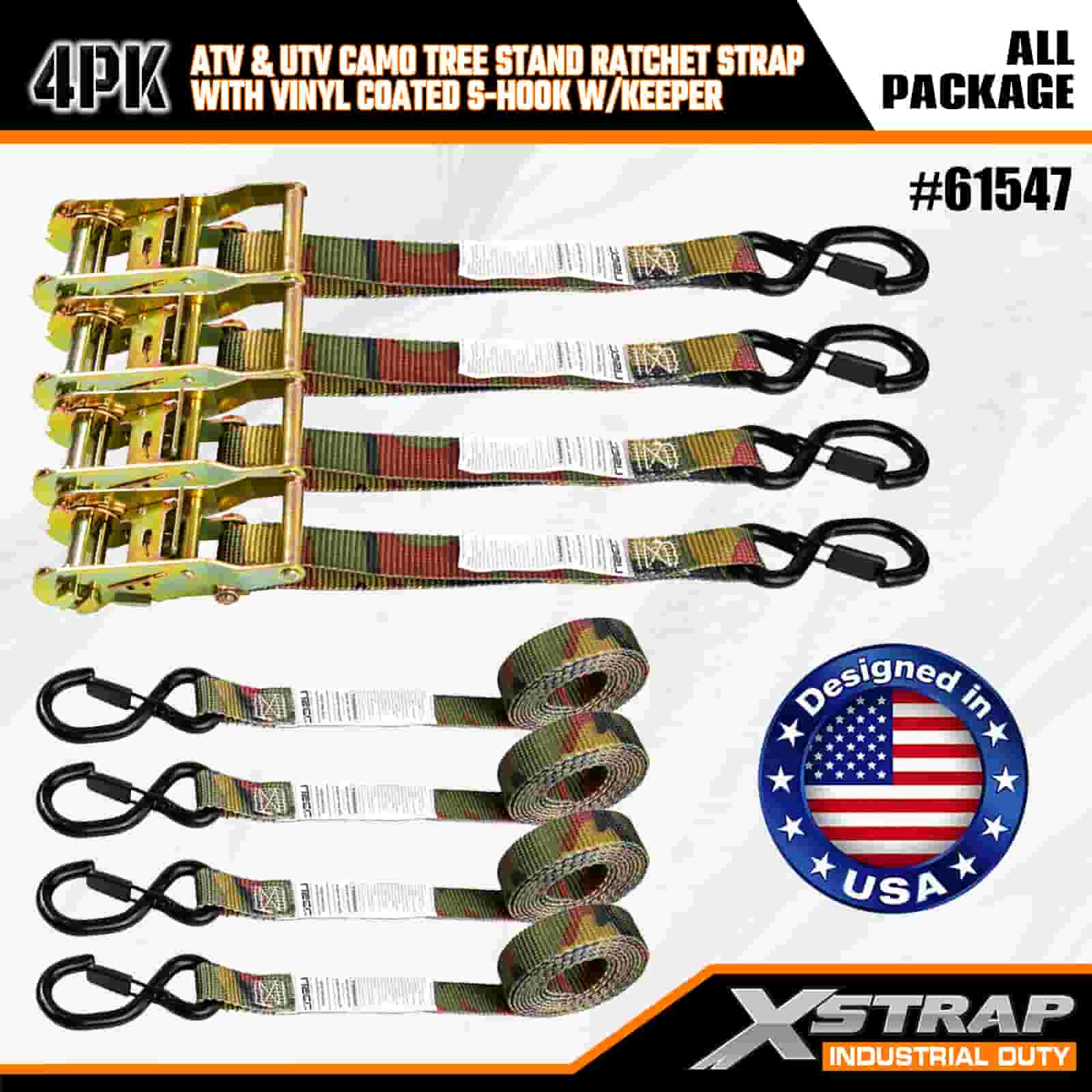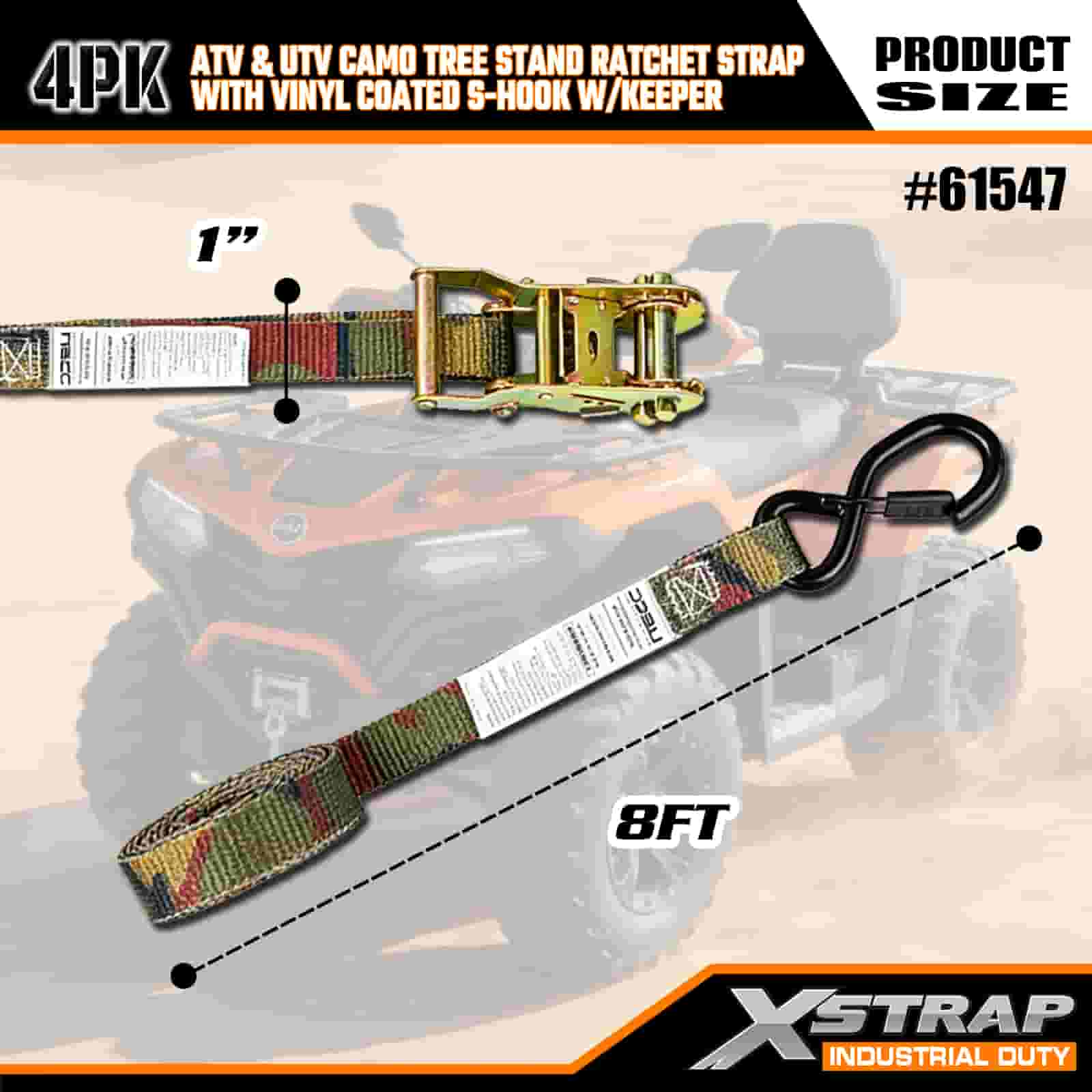 비닐 코팅 안전 S 후크가 포함된 Xstrap 4PK 래칫 래칫 스트랩, 1인치 x 8' 폴리에스테르 타이다운 스트랩 래칫 스트랩, 트레일러용 안전 S 후크가 포함된 400lbs 용량 화물 래싱 고정 스트랩, 플랫 베드 트레일러 스키 보트, 소형 자동차, 중장비.