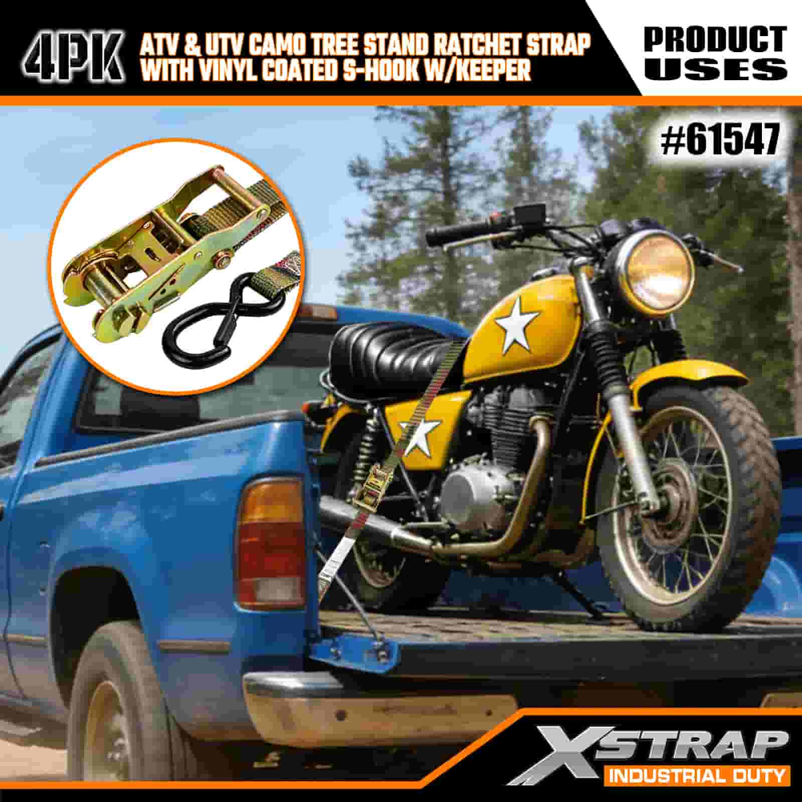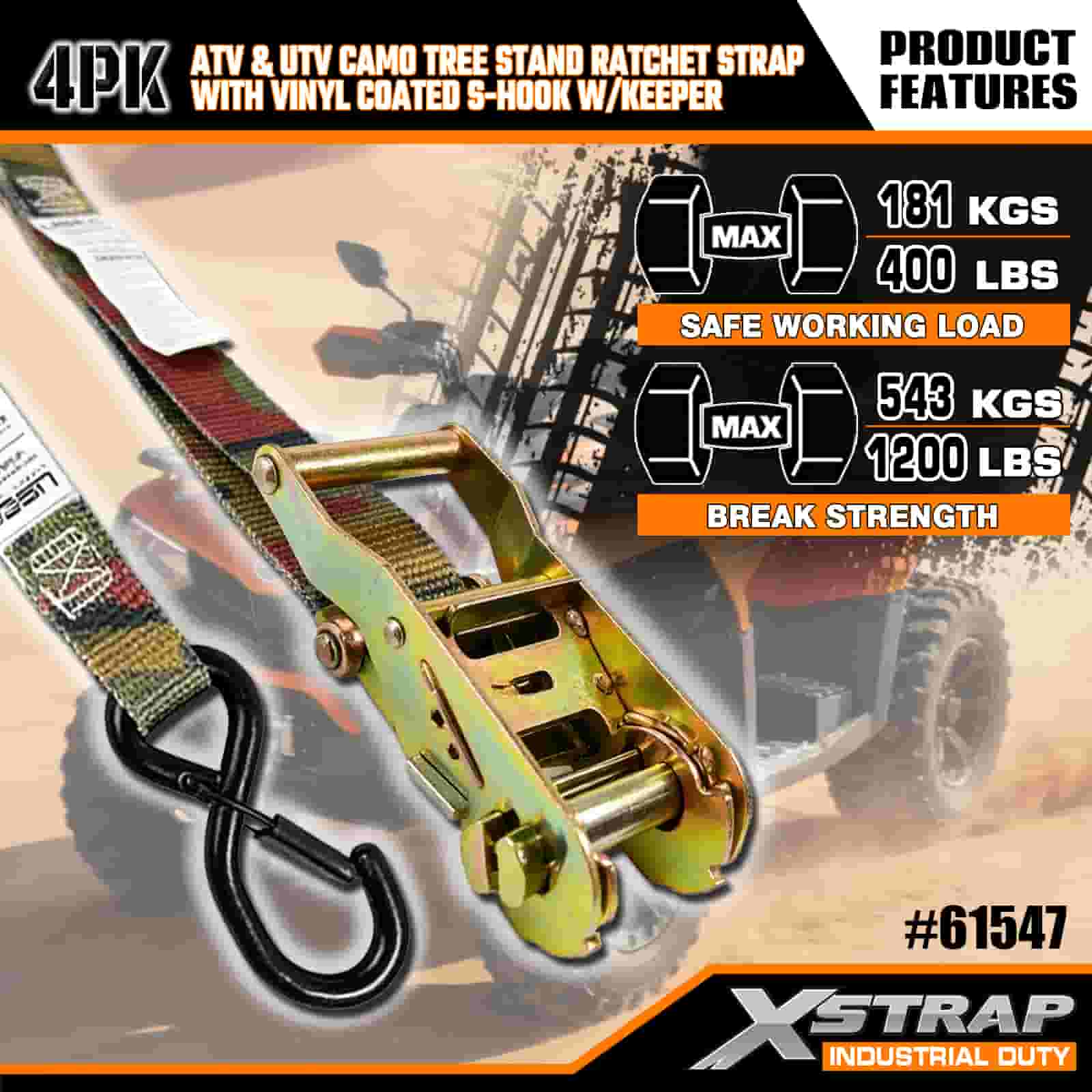 - 전체 적용을 위한 4팩: 이 세트에는 4개의 스트랩이 포함되어 있어 ATV 또는 UTV의 전면과 후면을 모두 고정하기에 충분합니다. 8피트 길이는 트럭 침대, 트레일러 고정 지점 및 나무 스탠드 앵커에 적합하므로 매번 안정적으로 고정할 수 있습니다.
