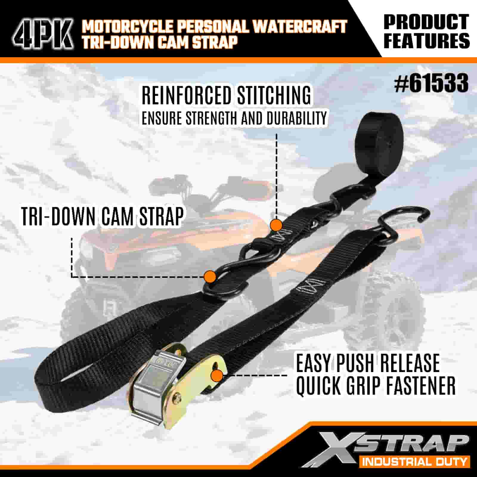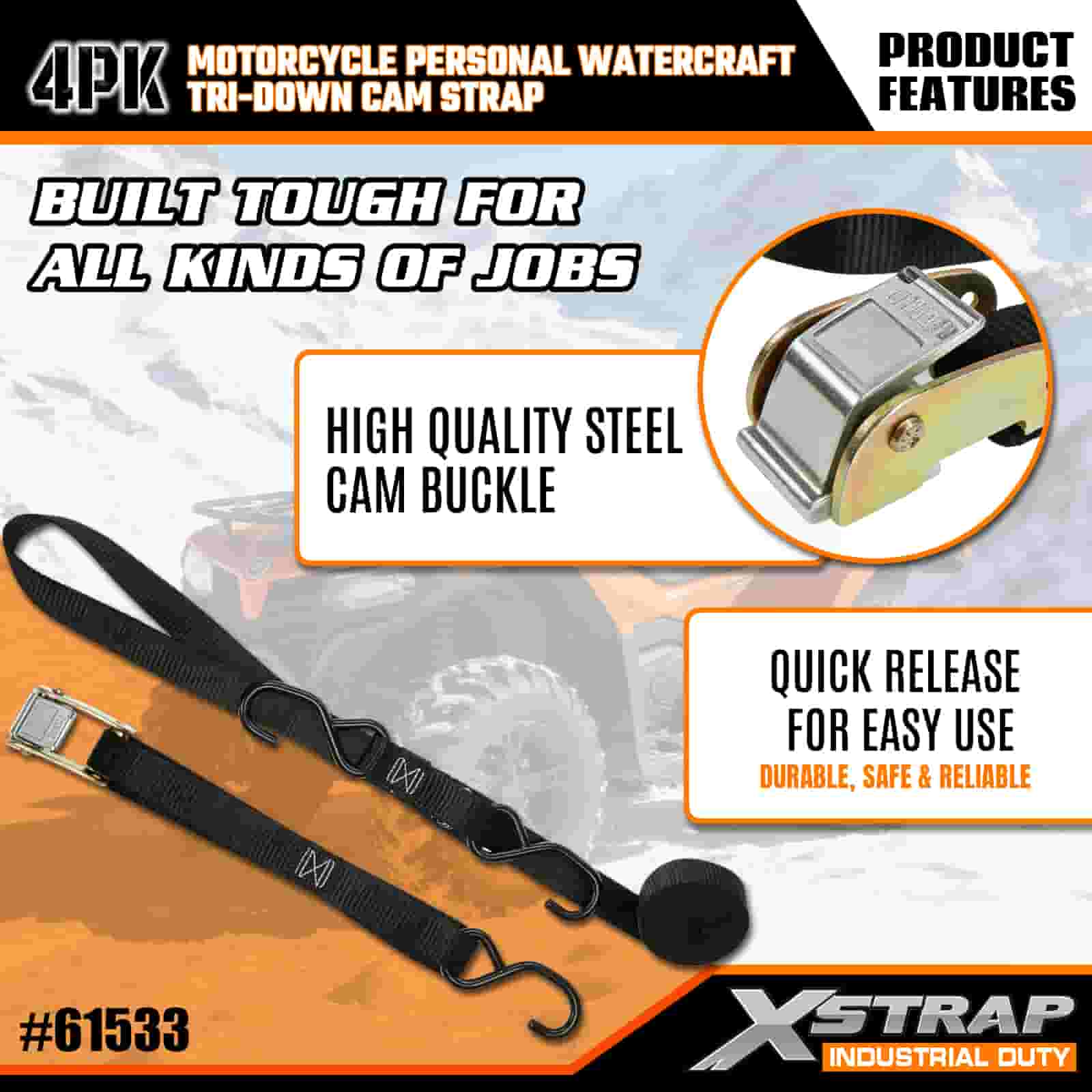 - 특수 용도용 4팩 6FT 스트랩: 4스트랩 세트(너비 1인치 × 길이 6피트)로 판매되며, 운송 또는 보관 중에 오토바이, 개인 선박 및 소형 장비를 고정하는 데 이상적입니다.