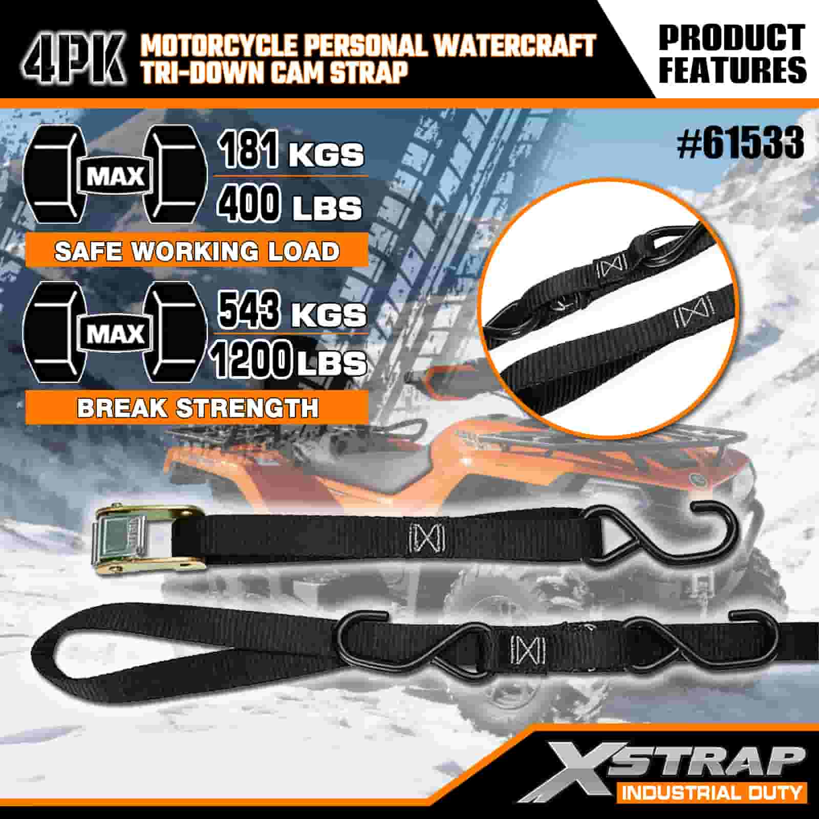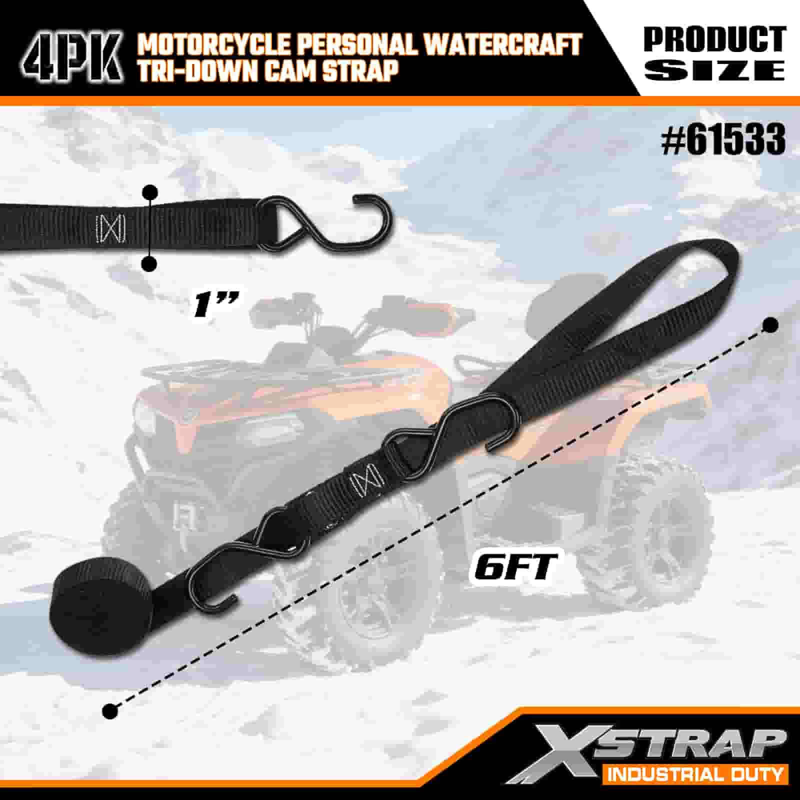 Xstrap 4PK 오토바이 개인용 선박 트라이다운 캠 스트랩, 1" x 6' 폴리에스테르 타이다운 스트랩 당김 래칫 버클 스트랩, S 후크가 있는 400lbs 용량 화물 래싱 고정 스트랩, 진지한 전문가가 화물 트레일러, 플랫 베드 트레일러, 스키 보트, 소형차를 보호할 수 있도록 합니다.