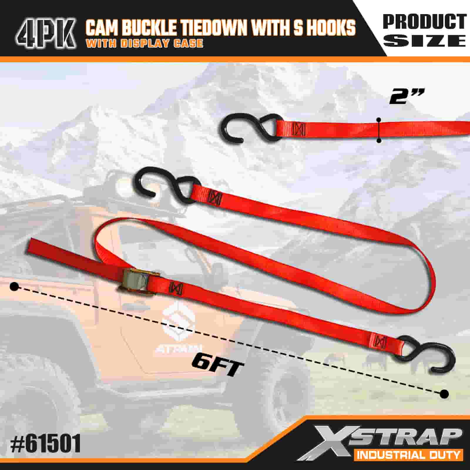 2인치 x 6피트 4PK 캠 버클 타이다운(S 후크 포함)
