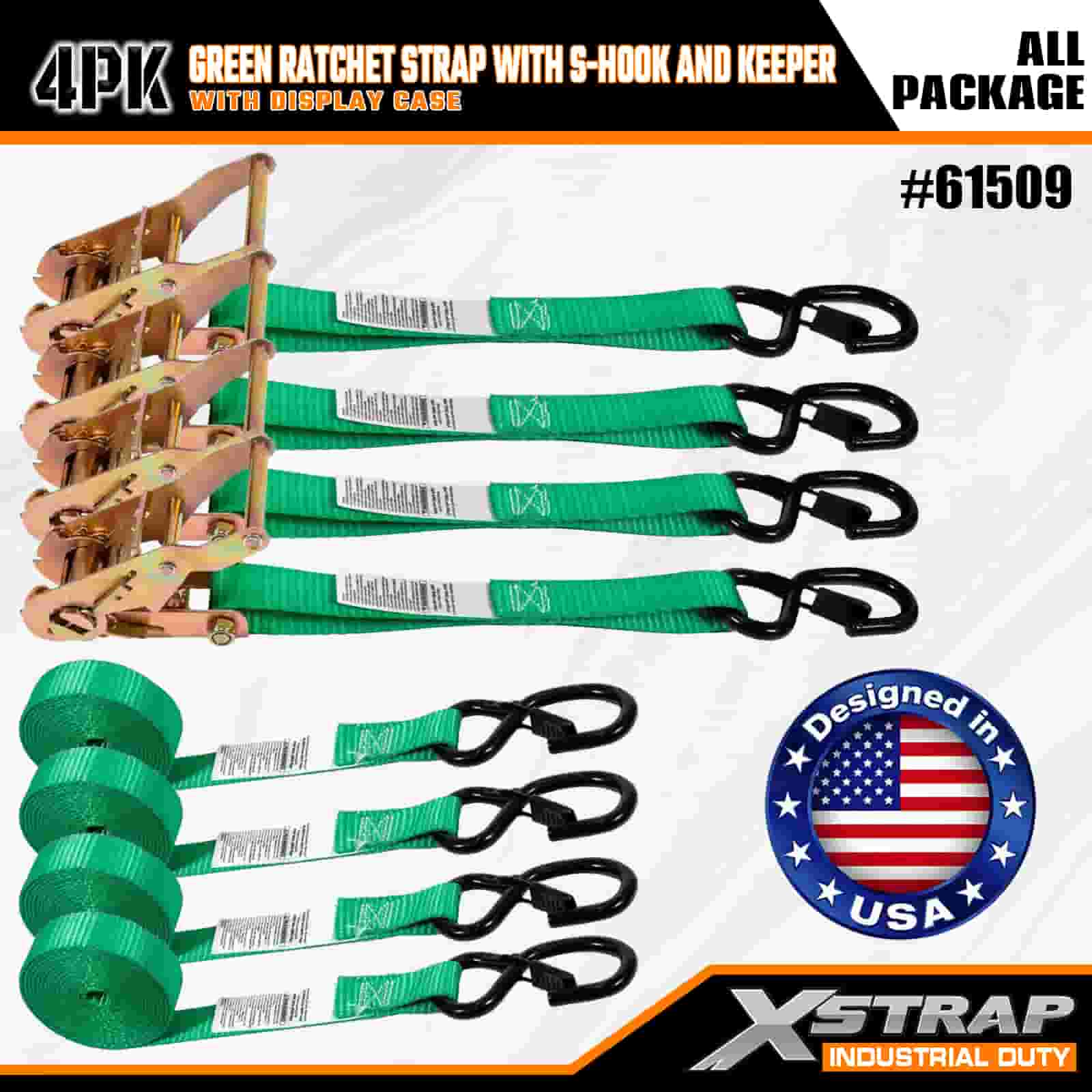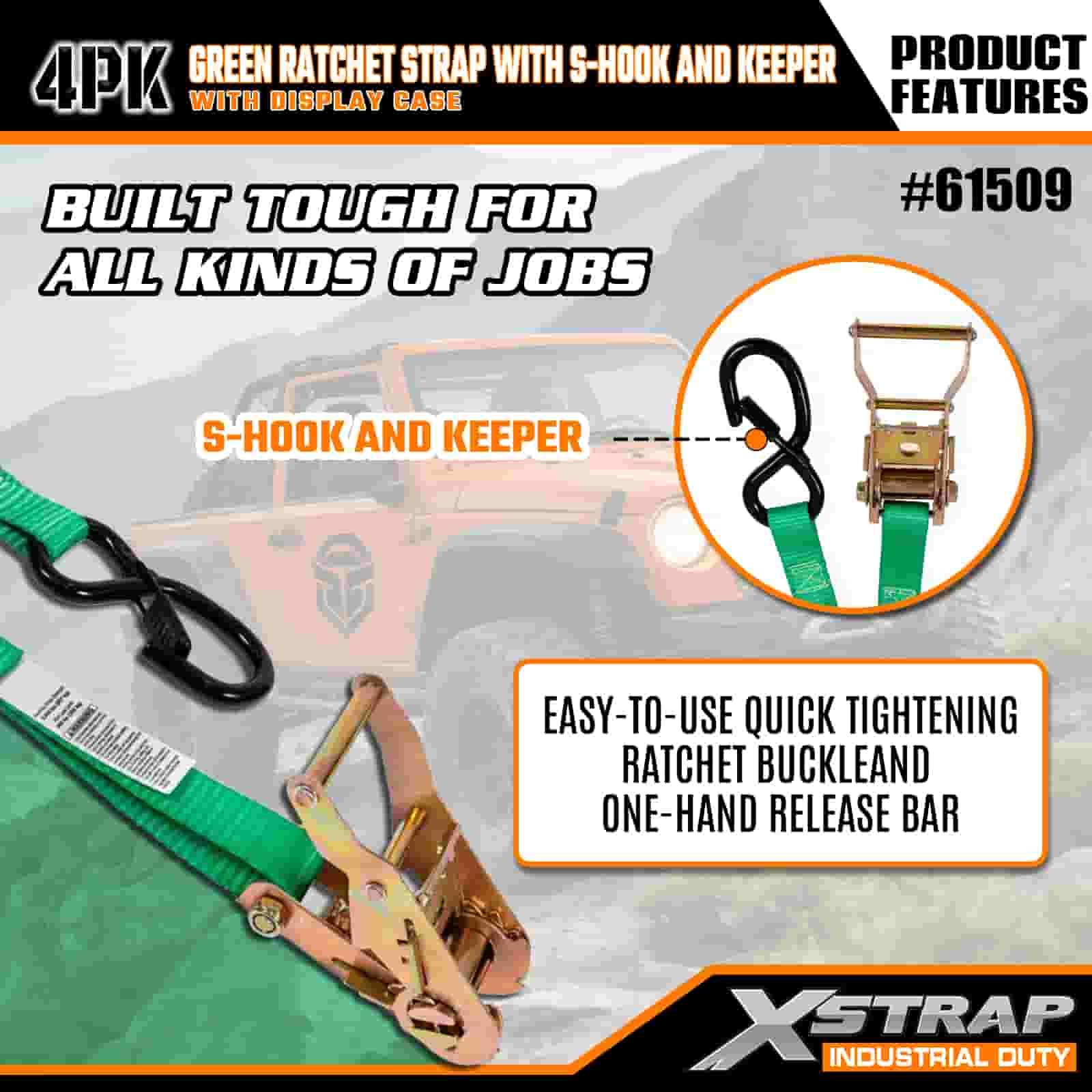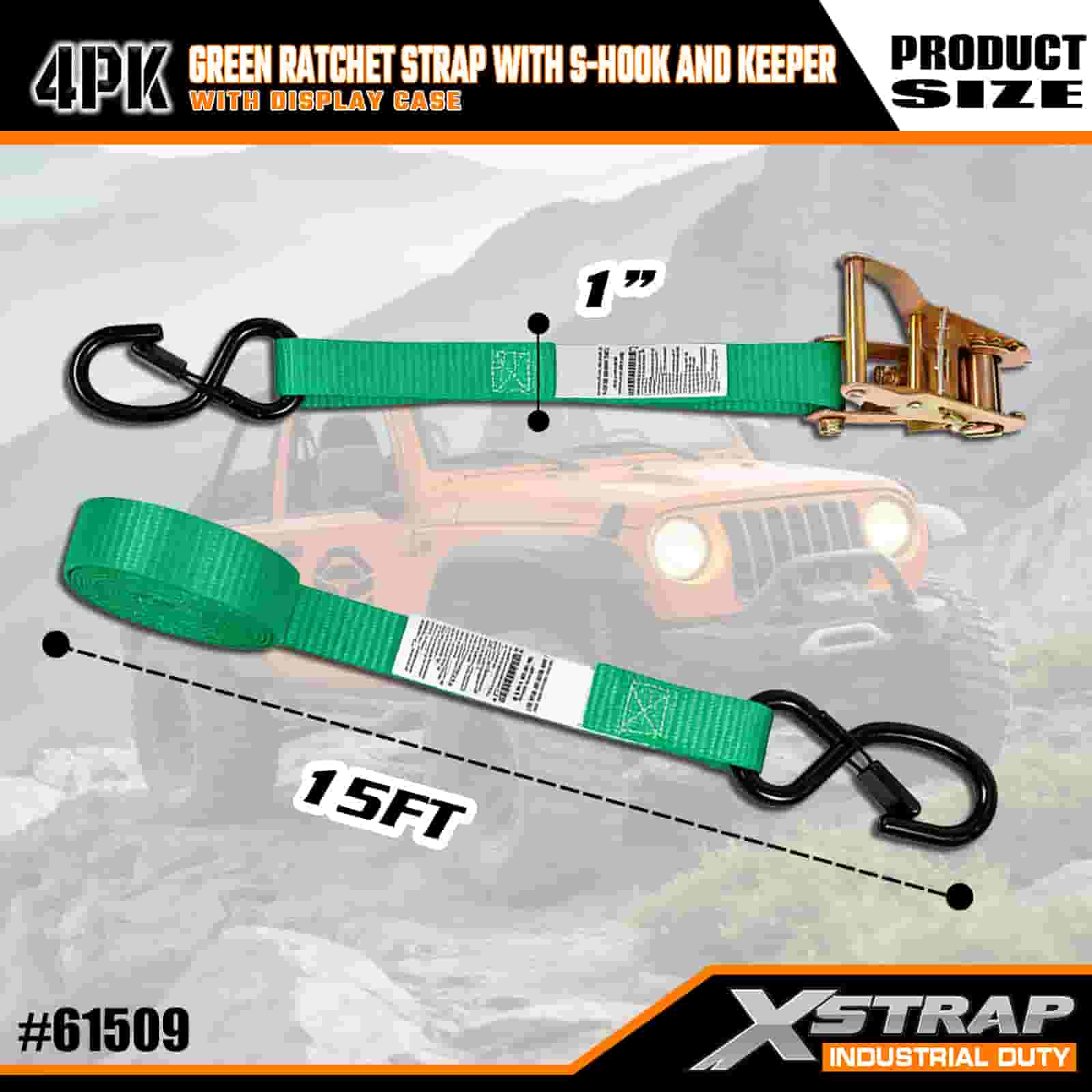 1인치 x 15인치 4PK 래칫 스트랩(안전 S 후크 포함)