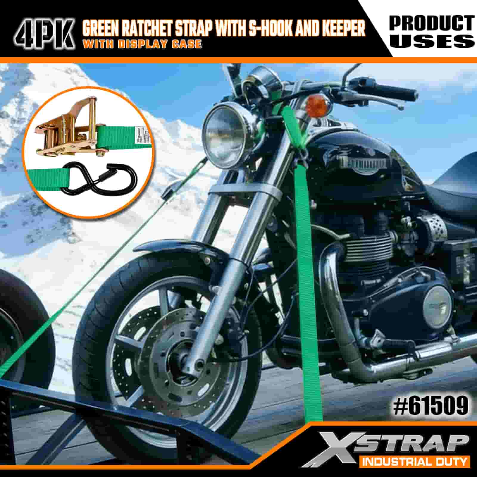 - 정리된 보관 기능이 포함된 4팩: 깔끔하게 보관할 수 있도록 보관 스풀이 내장된 4스트랩 세트(디스플레이 포장)로 판매됩니다. 폭 1인치 × 길이 15피트로 오토바이, 아웃도어 장비, 일반 화물을 고정하는 데 적합합니다.
