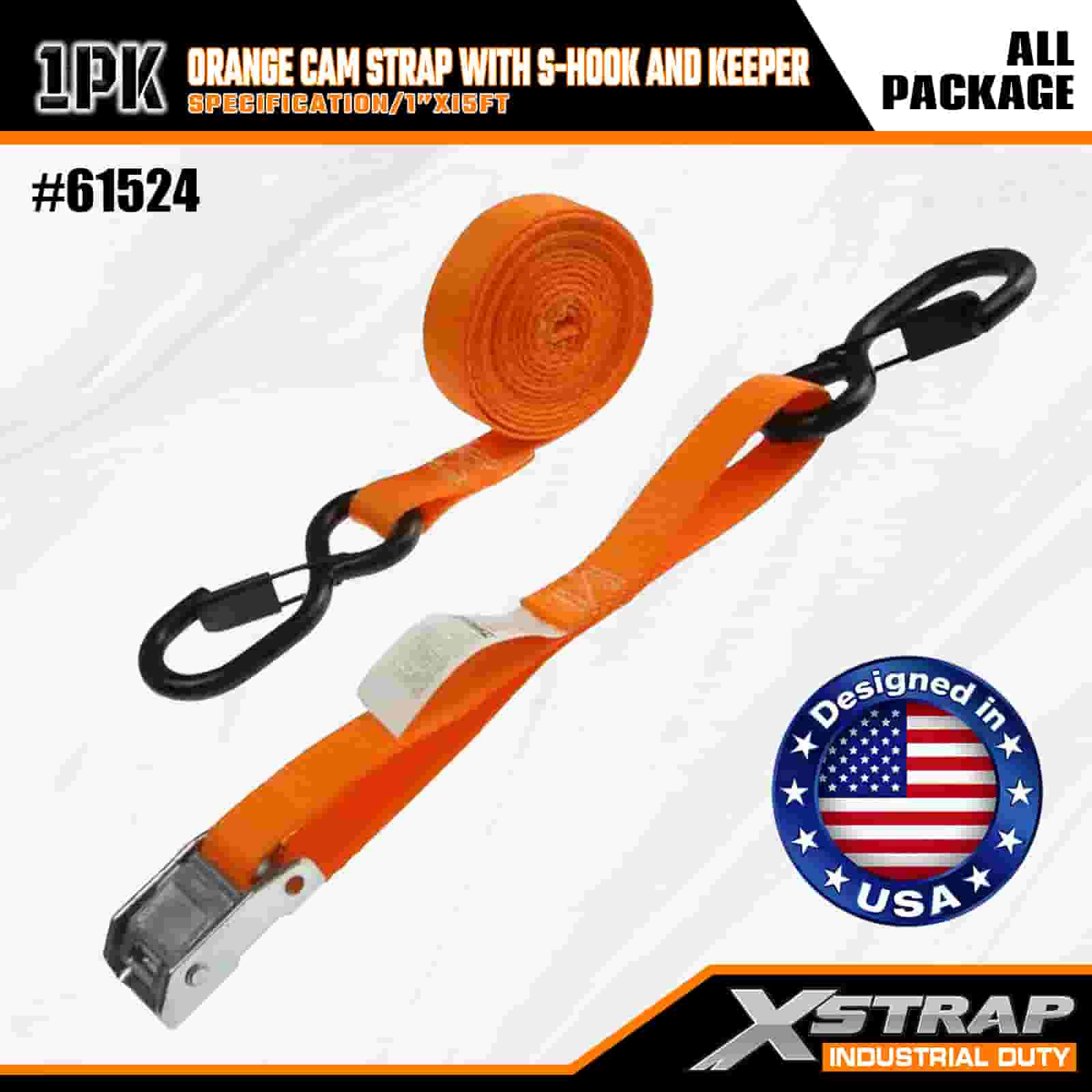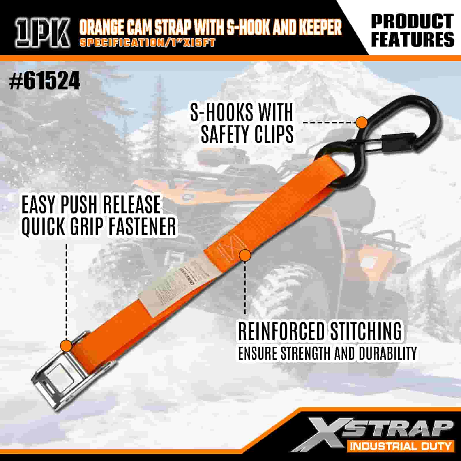 S-후크와 키퍼가 포함된 Xstrap Qrange 캠 스트랩, 1" x 15' 폴리에스테르 타이다운 스트랩 당김 래칫 스트랩, 400lbs 용량 화물 래싱 고정 스트랩, 안전 S 후크가 있는 화물 트레일러, 플랫 베드 트레일러, 스키 보트, 소형차를 고정하는 전문가용 안전 S 후크.