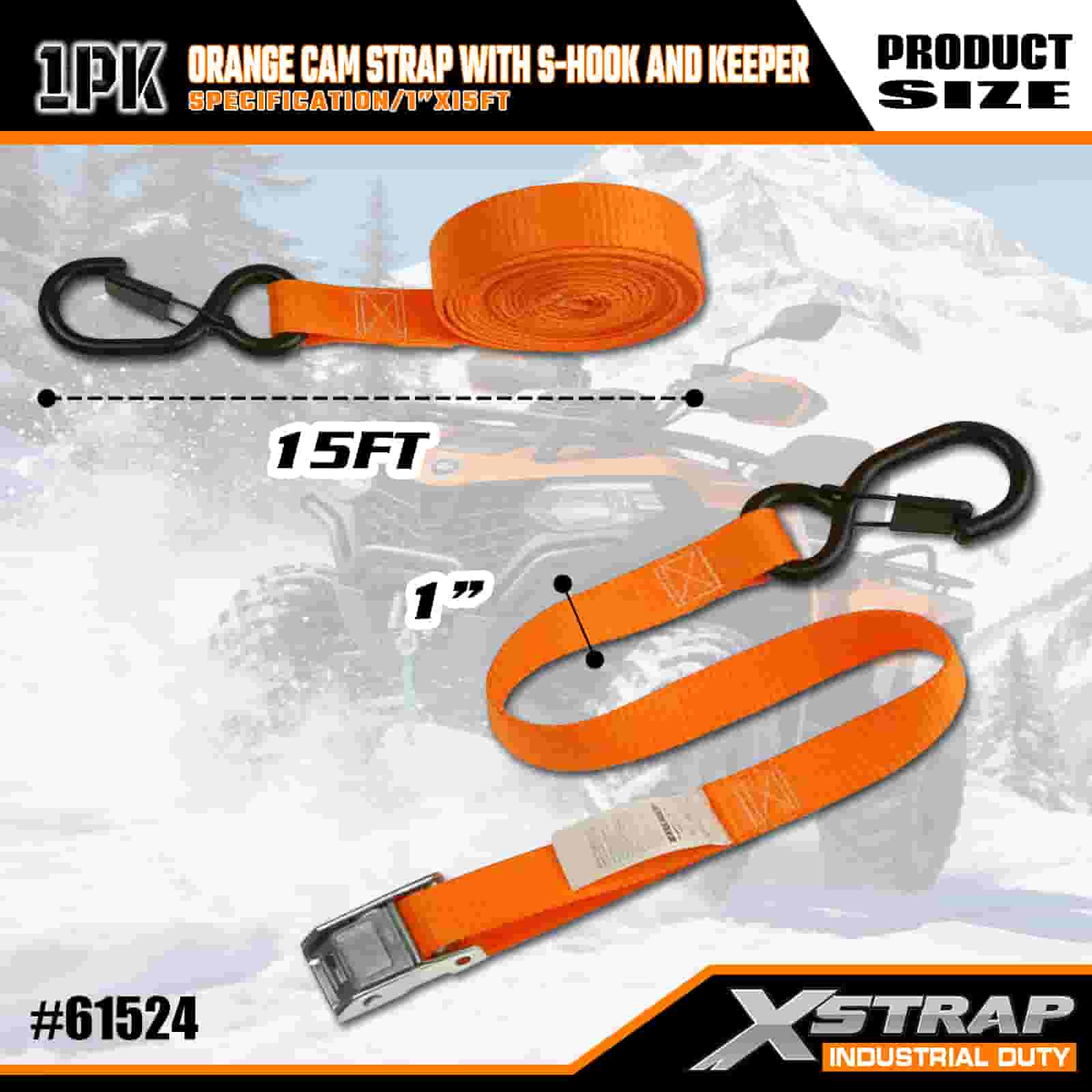 1인치 x 15' Qrange 캠 스트랩(S-후크 및 키퍼 포함)