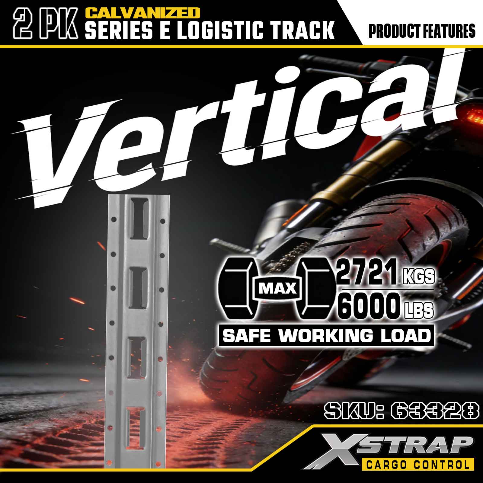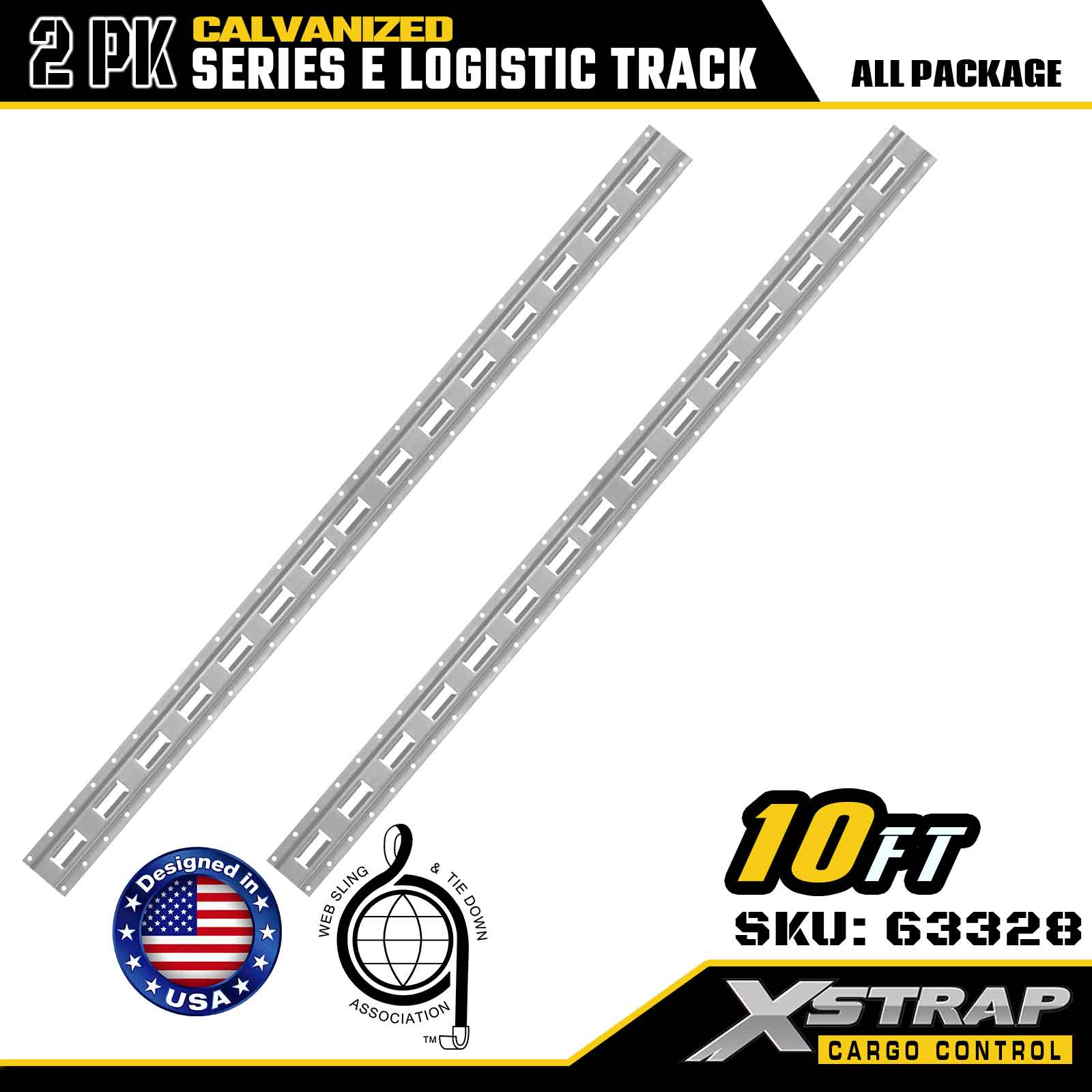 Xstrap 63328 10피트 전기도금 실버 E-트랙 타이다운 레일 - 아연 도금 마감 처리된 12게이지 강철, 6000LBS 부하 용량, 화물 고정용 2팩