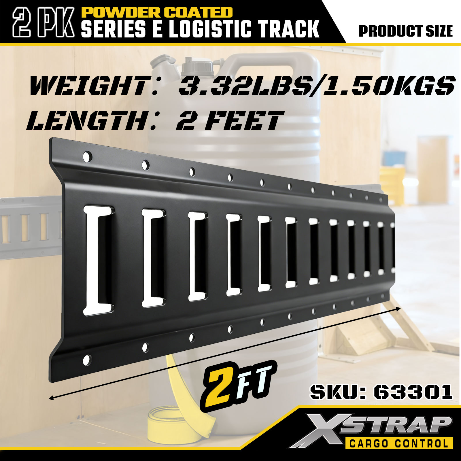Xstrap 63301 시리즈 2피트 회색 E 물류 트랙 - 12게이지 강철 6000LBS 용량, 화물 제어, 이동 및 운송용 2PK