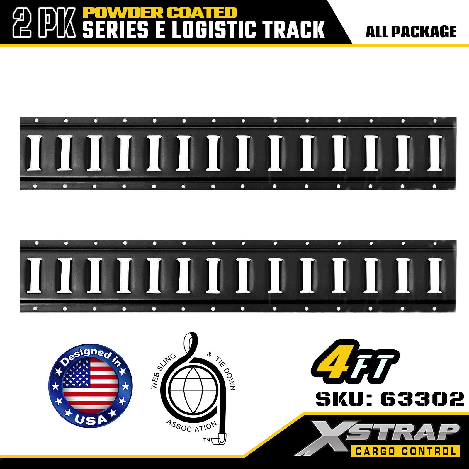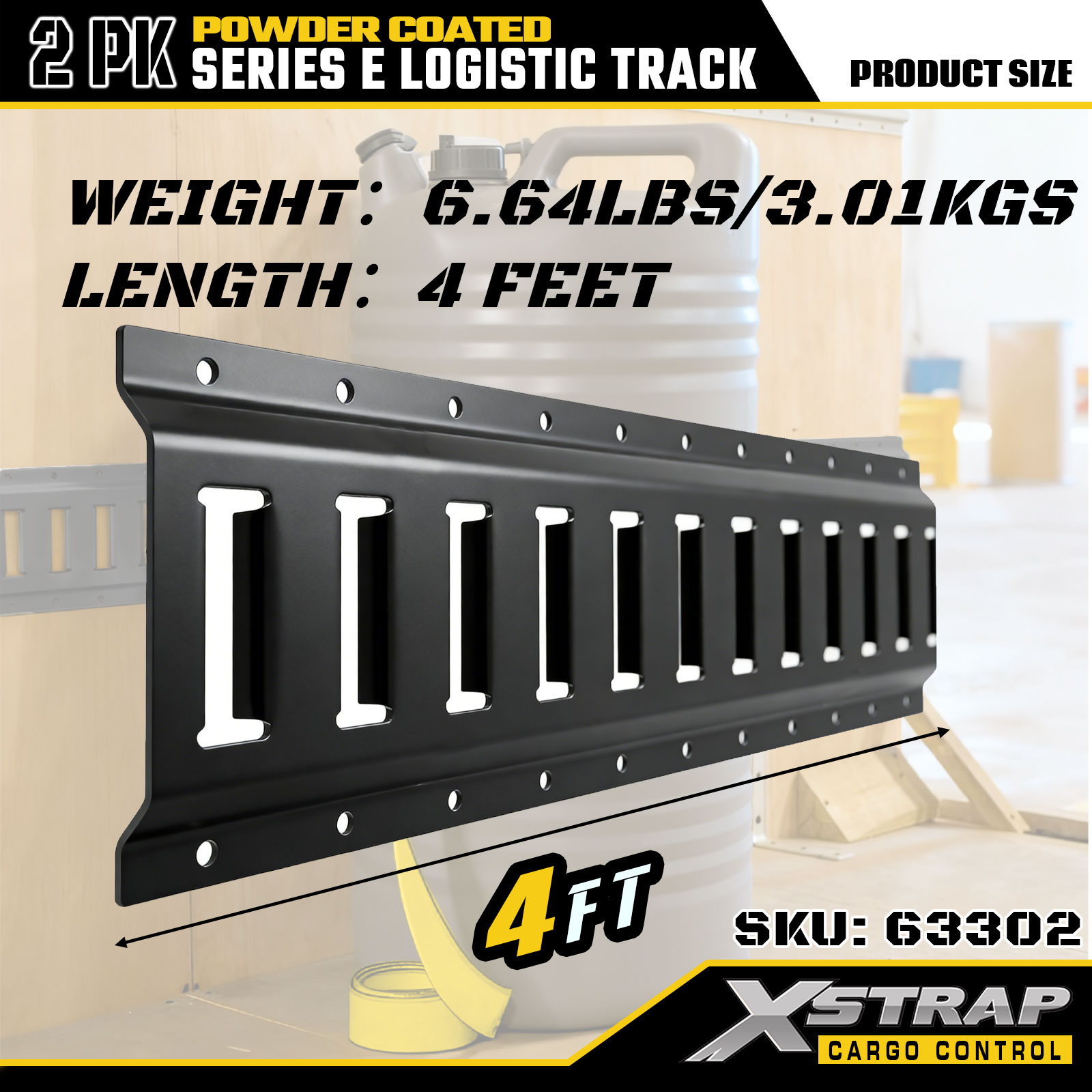 Xstrap 63302 4피트 회색 E 물류 트랙 - 분말 코팅된 12게이지 강철, 6000LBS 용량, 화물 통제용 2PK