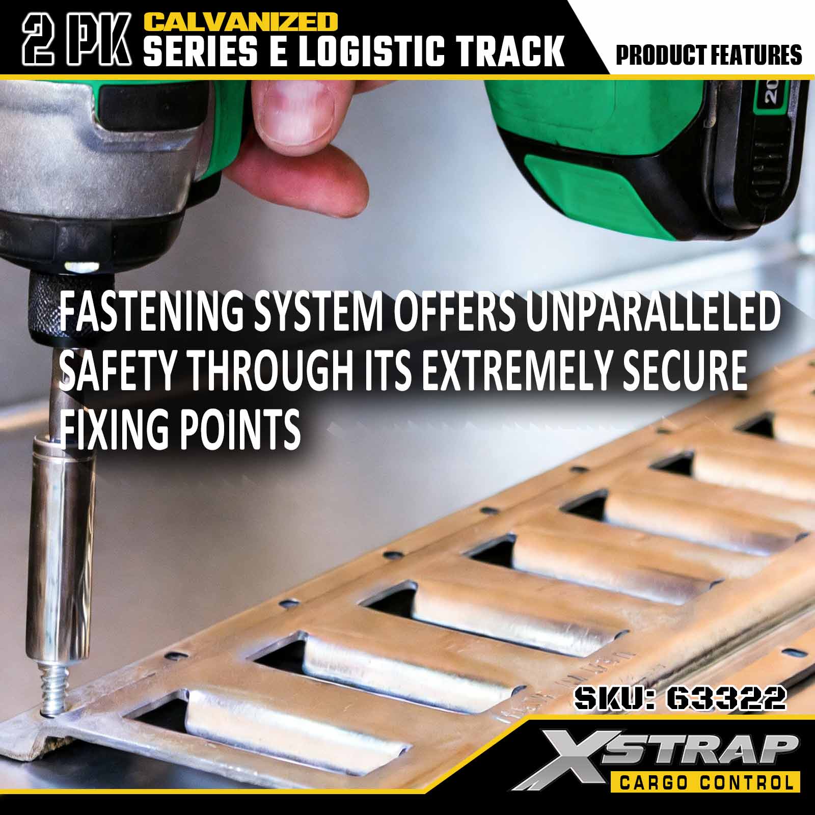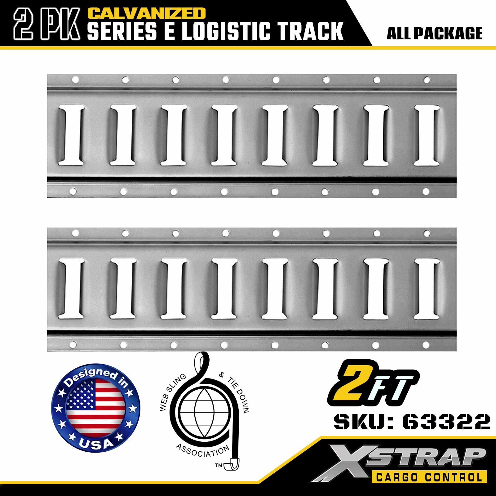 Xstrap 63322 2피트 전기도금 실버 E형 화물 레일 - 아연 도금 코팅된 12게이지 강철, 6000LBS 정격 부하, 2PK용