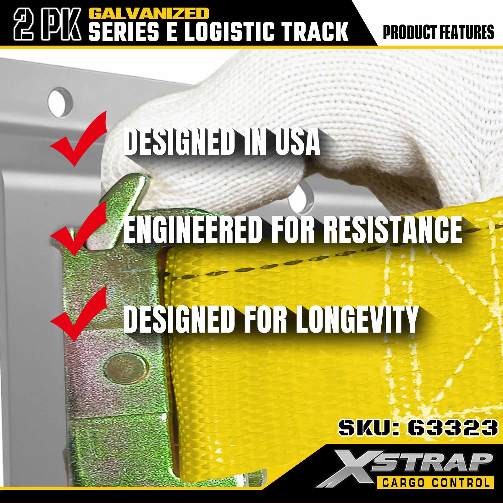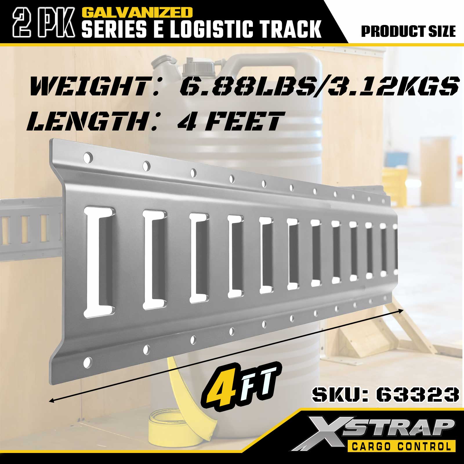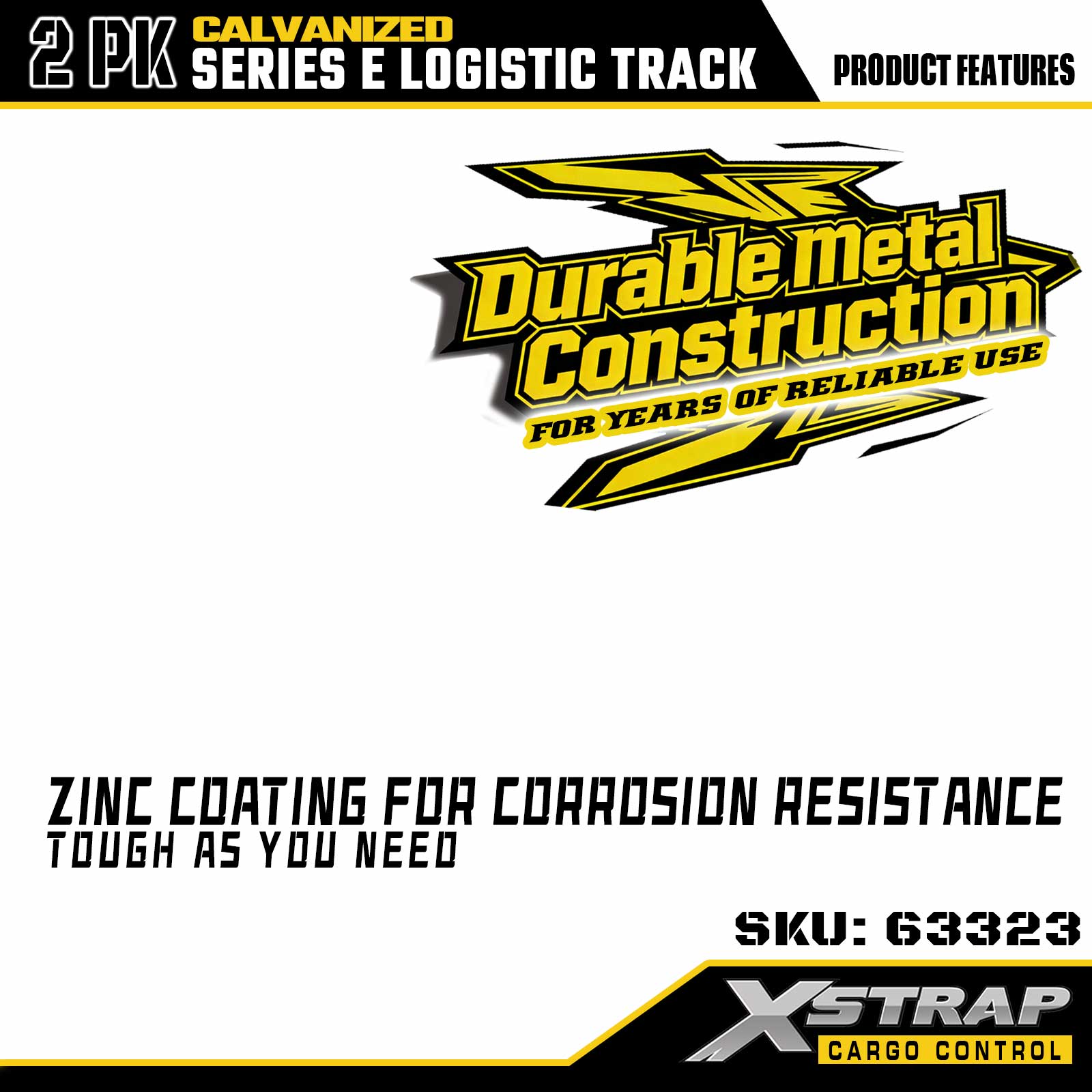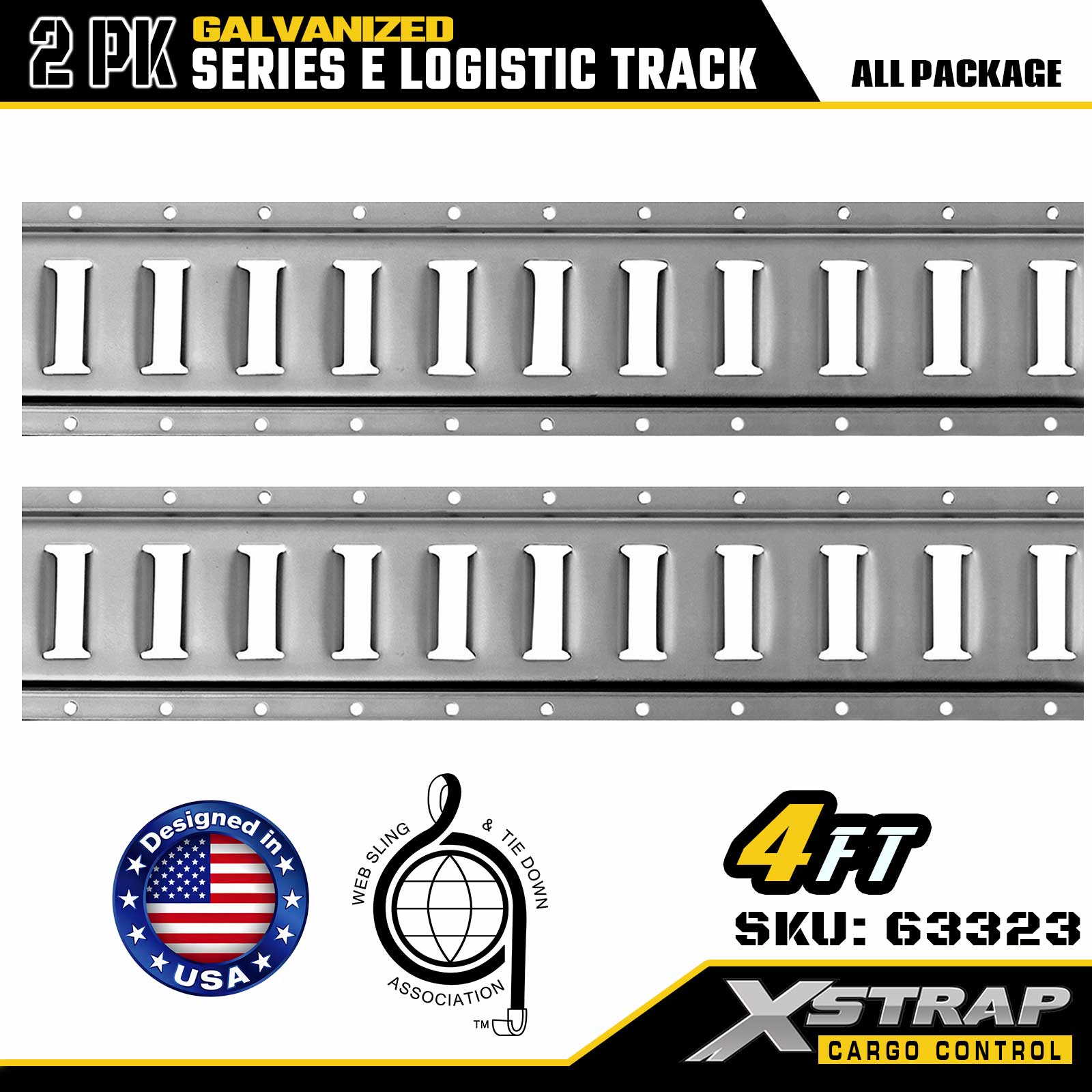 Xstrap 63322 4피트 전기도금 실버 E-트랙 타이다운 레일 - 아연 도금 마감 처리된 12게이지 강철, 6000LBS 부하 용량, 화물 고정용 2팩