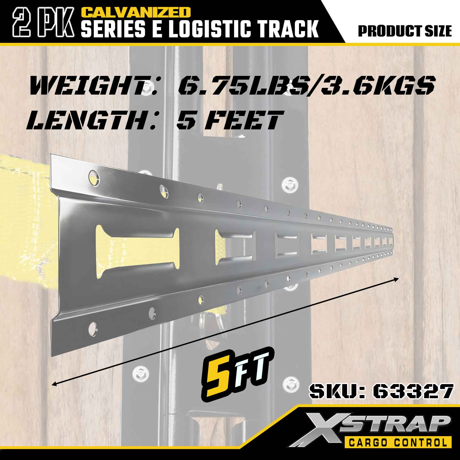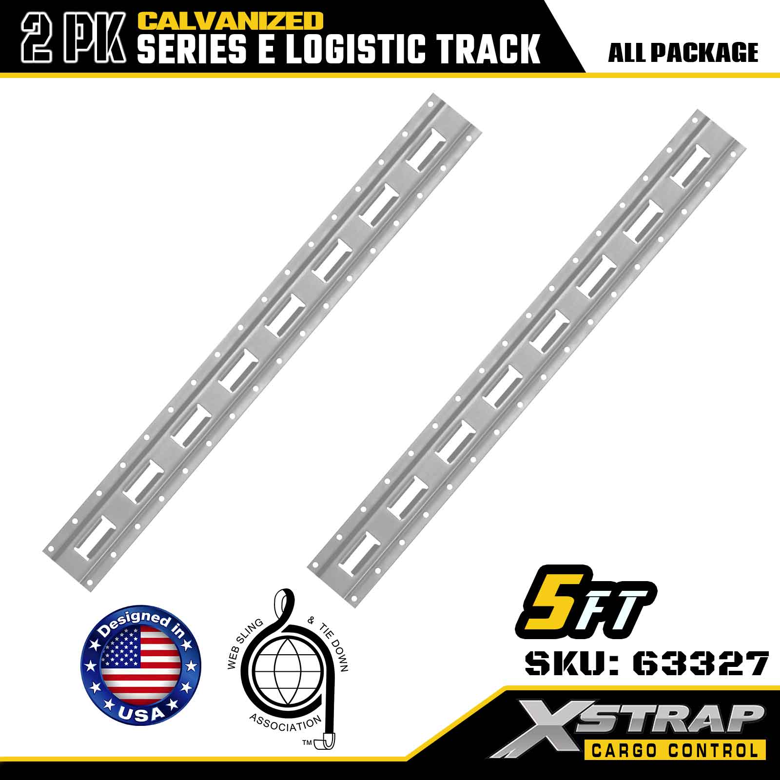 Xstrap 63327 5피트 전기 도금 은색 E-트랙 화물 고정 레일 - 용융 아연 도금 처리된 12게이지 강철, 6000LBS 중량 용량, 하중 고정용 2팩