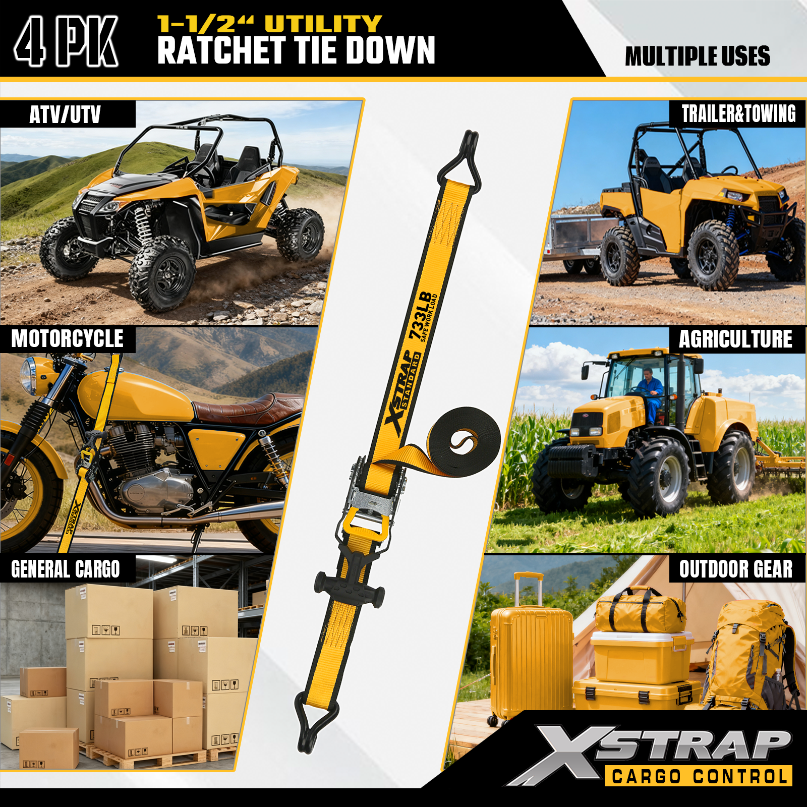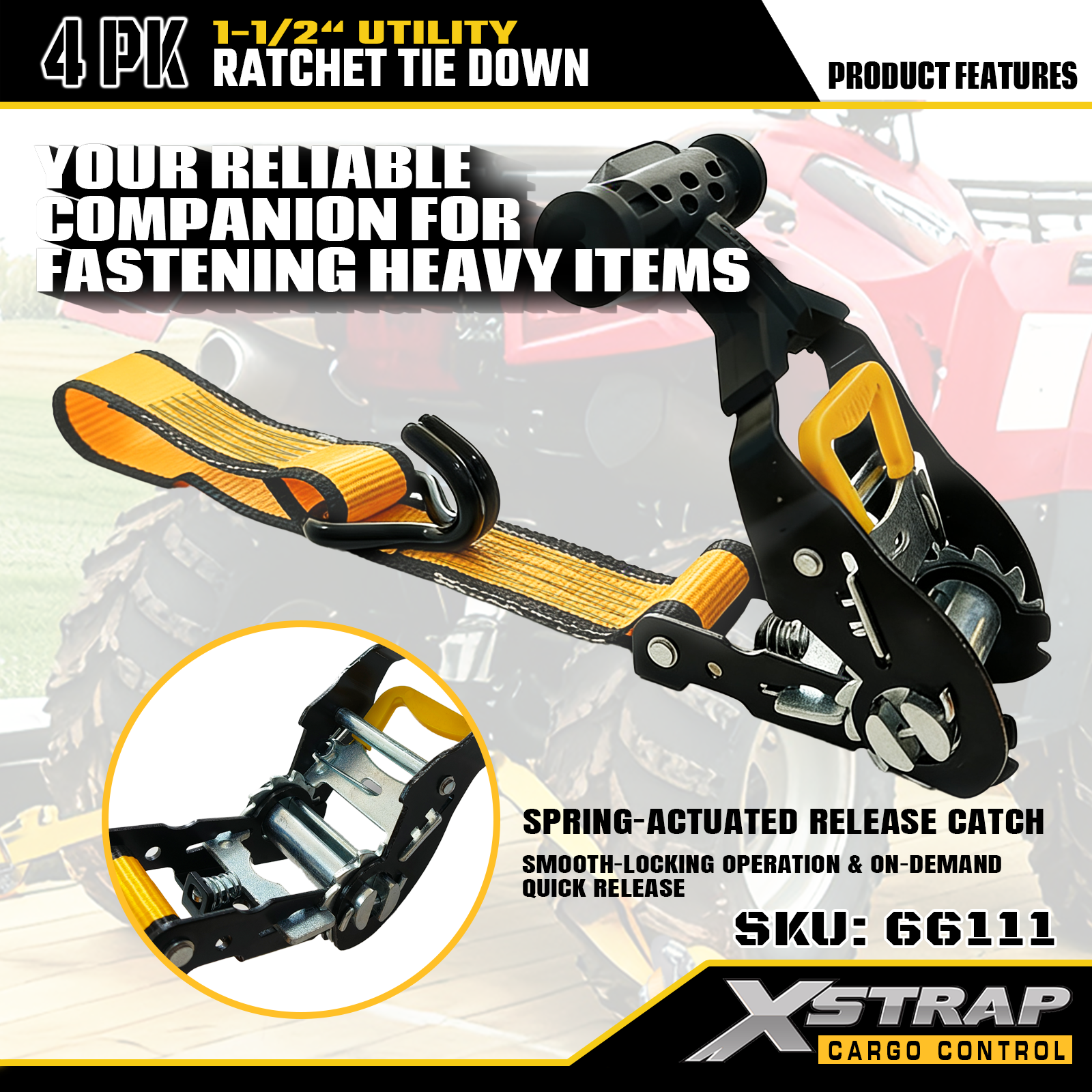 Xstrap 1.5" x 16피트 T-핸들 래칫 타이다운 스트랩 1,100lb SWL