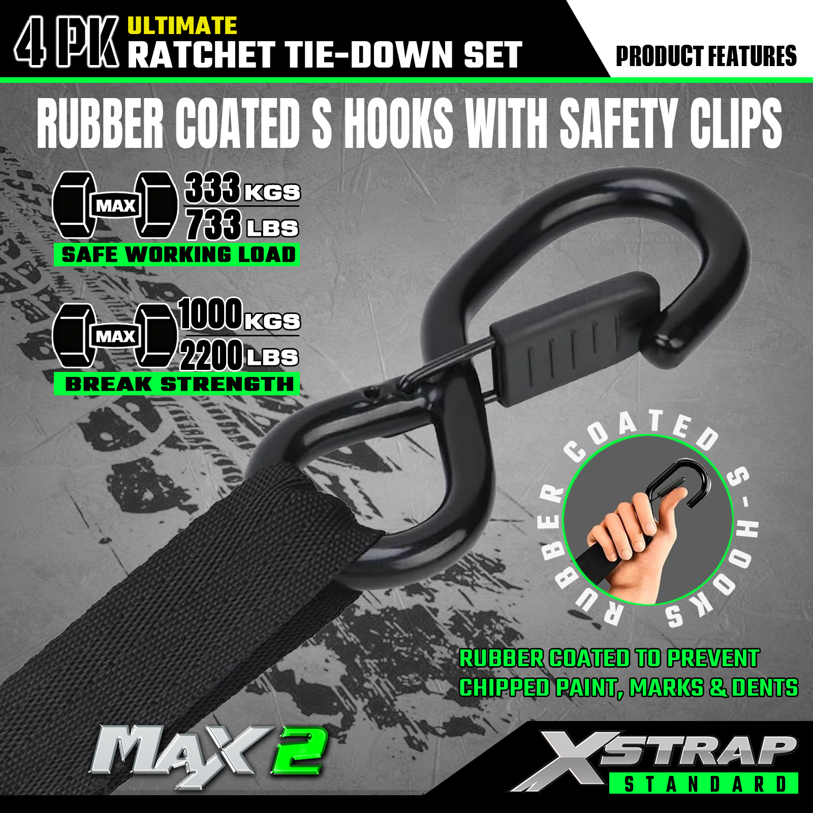 - 안정적인 운송: 4pk 래칫 타이다운 스트랩은 733lb SWL 및 2,200lb BS를 제공합니다. 오토바이, 가전제품, 잔디 장비를 안전하게 운반할 수 있습니다.