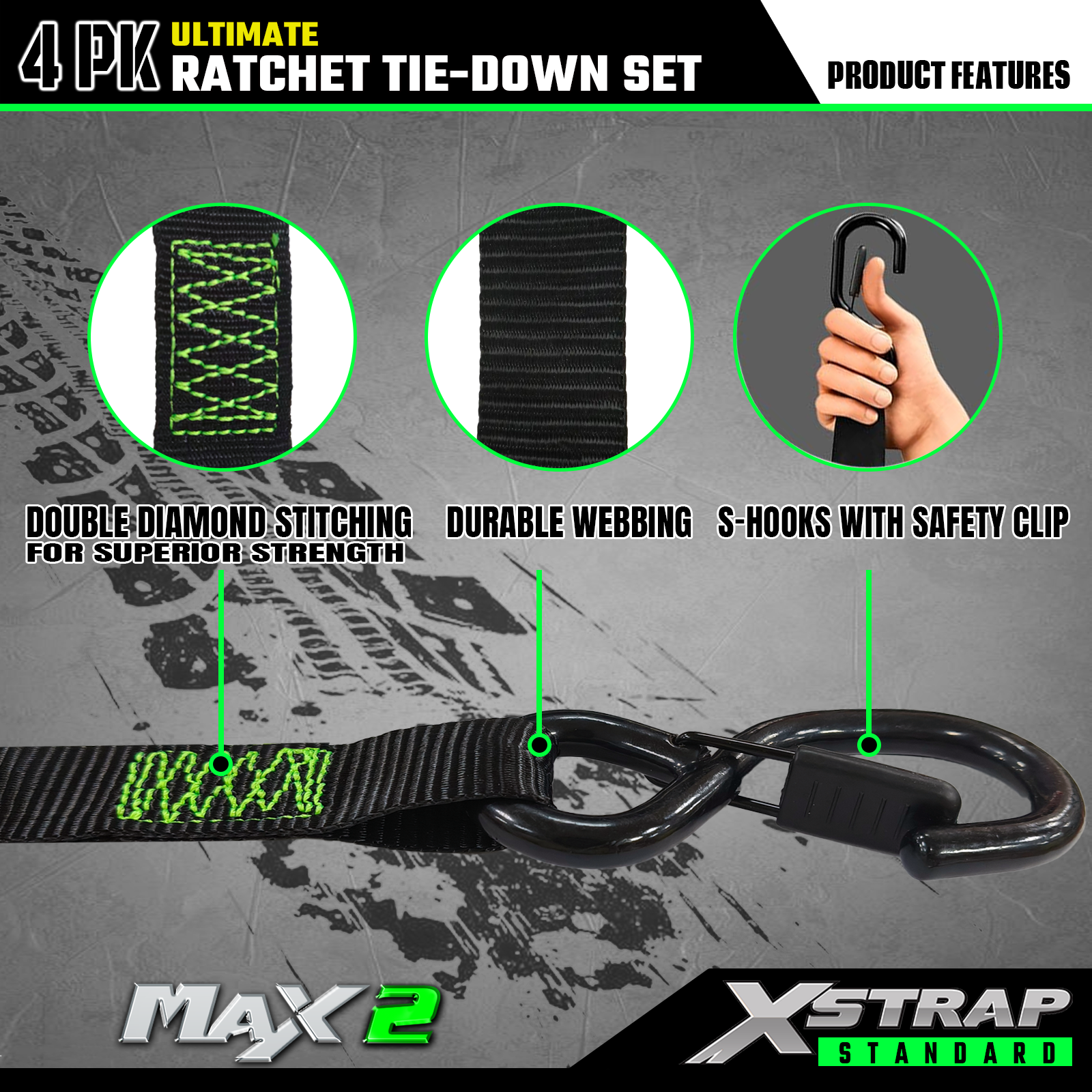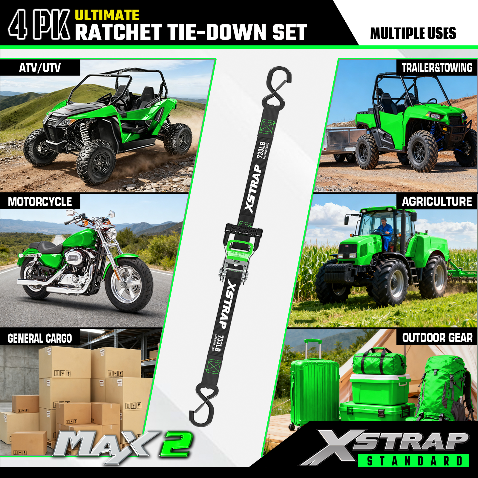 - 폭넓게 적용 가능: 래칫 스트랩은 트럭, 트레일러, 오토바이, 잔디 장비 및 기타 운송 수단에 사용할 수 있습니다.