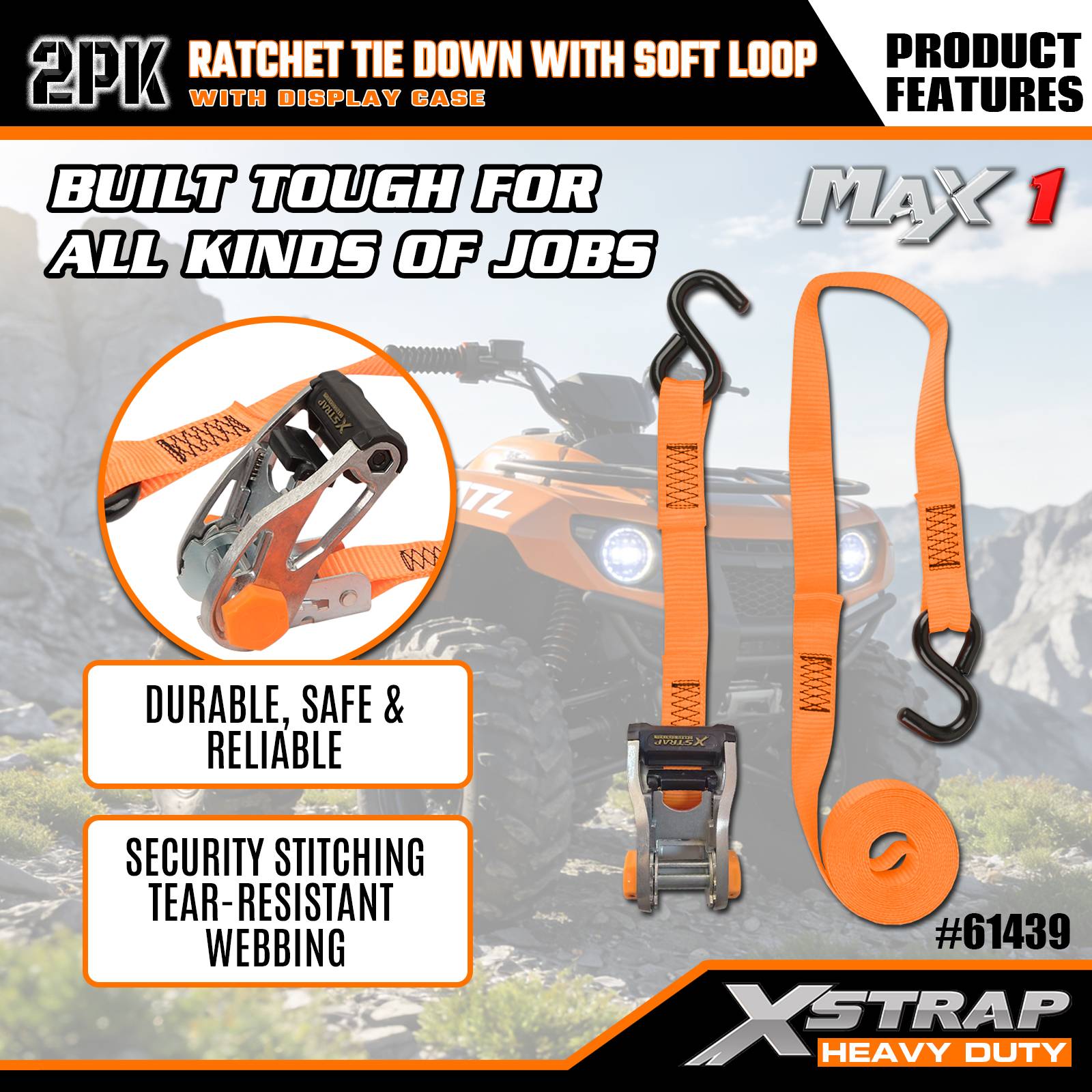 - 실용적인 래칫 및 소프트 루프 콤보: 소프트 루프와 결합된 사용자 친화적인 래칫 메커니즘이 함께 제공되어 빠르고 단단하게 화물을 고정할 수 있습니다. 특별한 기술이 필요하지 않으며 신규 사용자와 노련한 사용자 모두에게 이상적입니다.