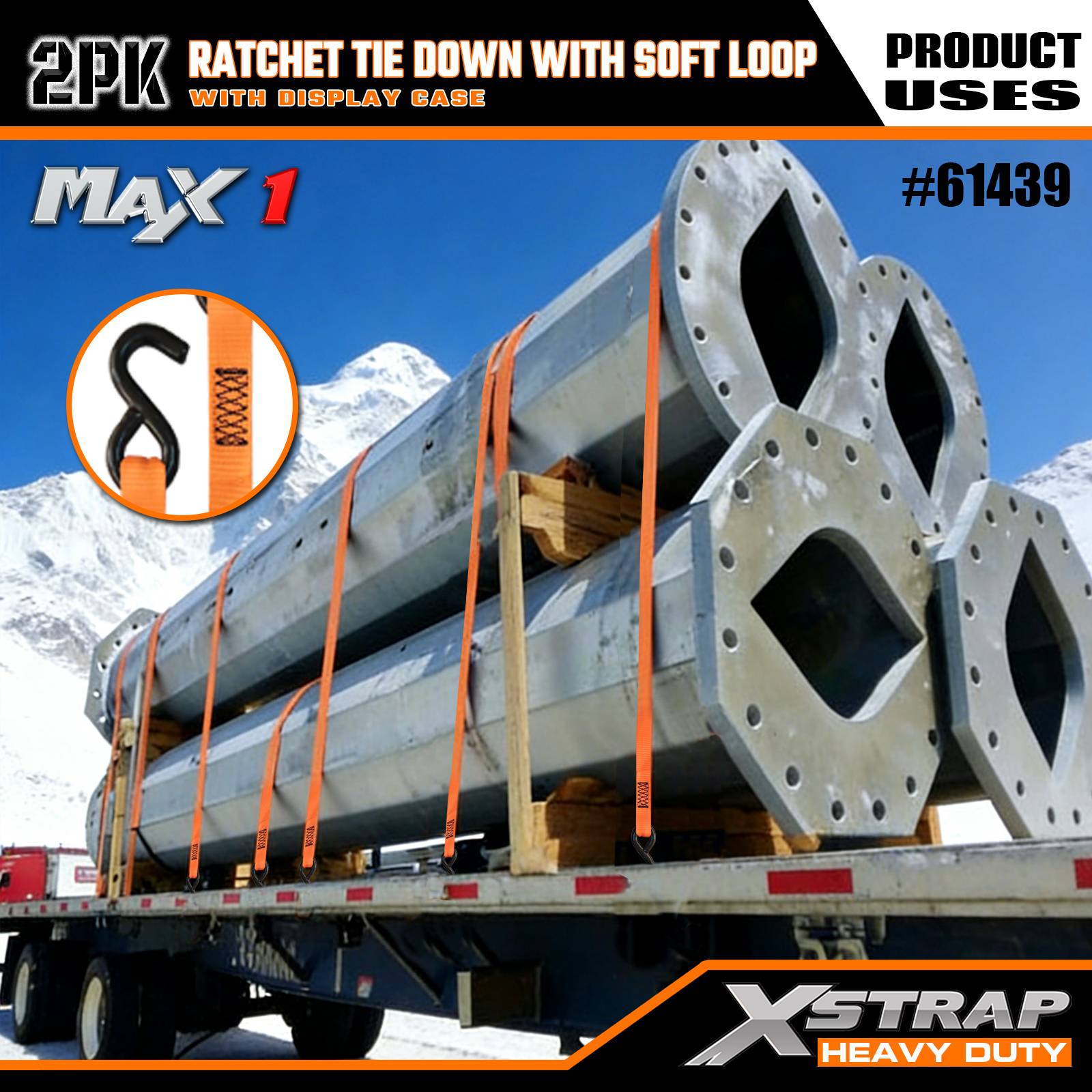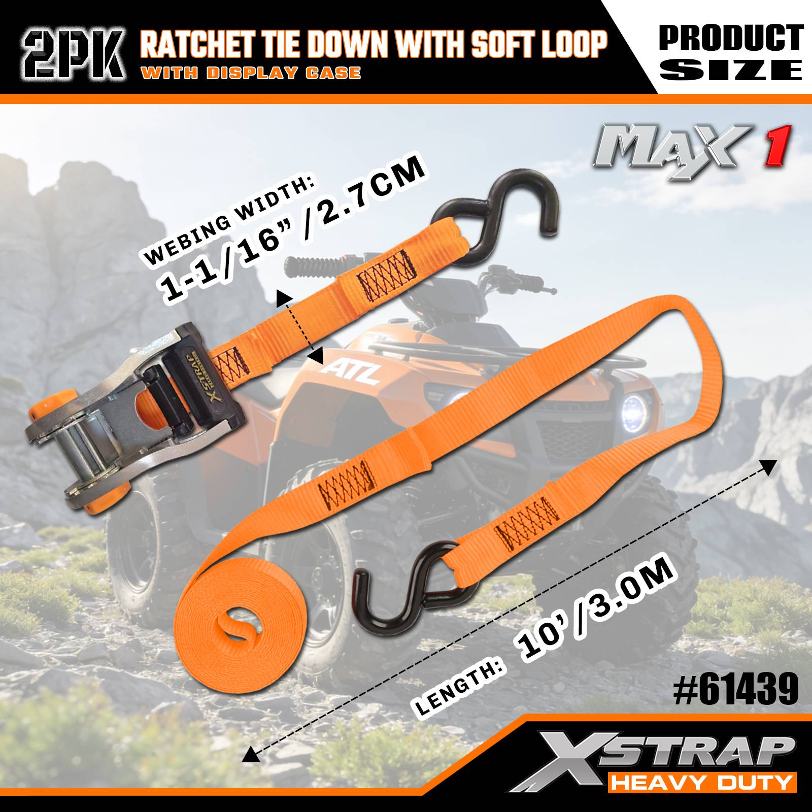 1-1/16인치 x 10' 2PK 래칫 타이다운 스트랩(소프트 루프 포함)