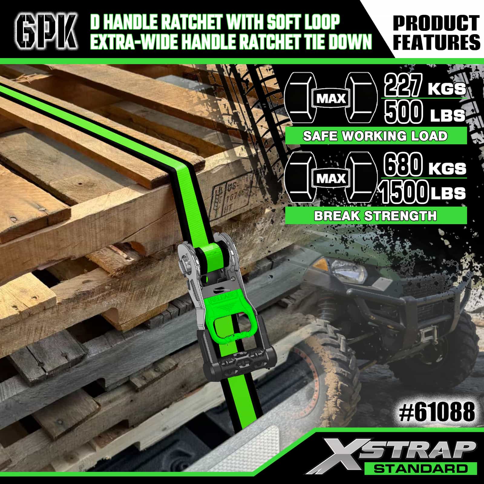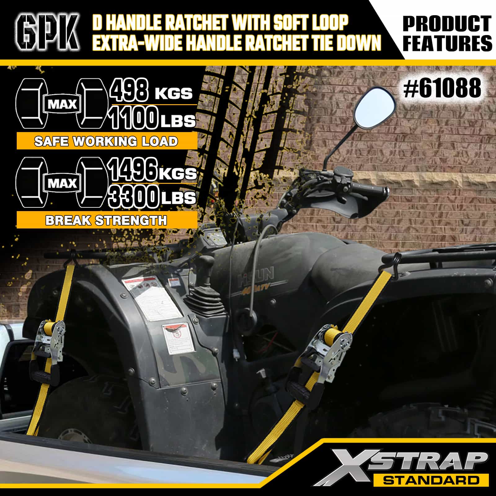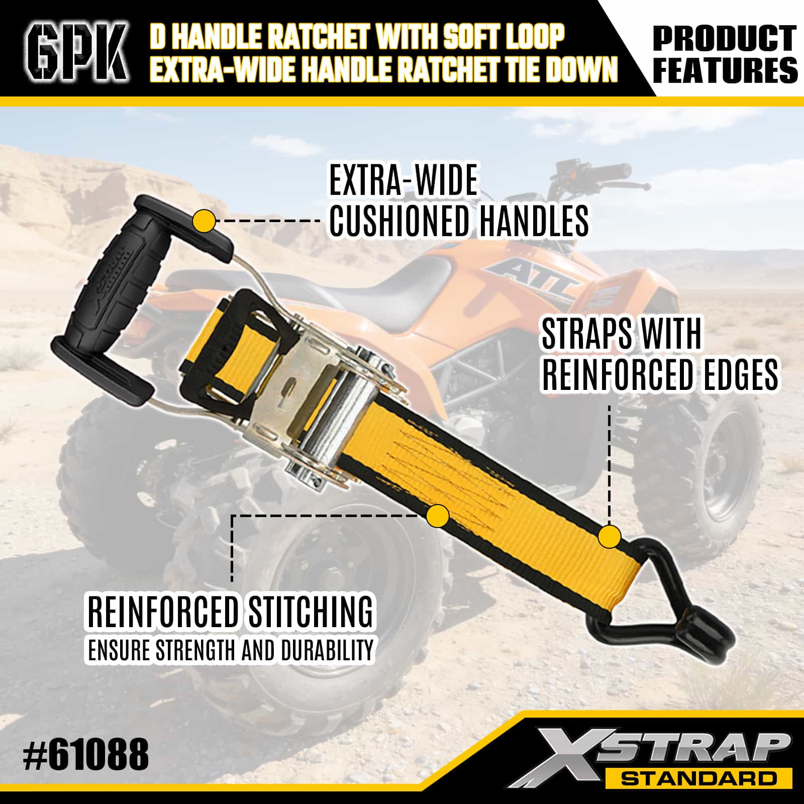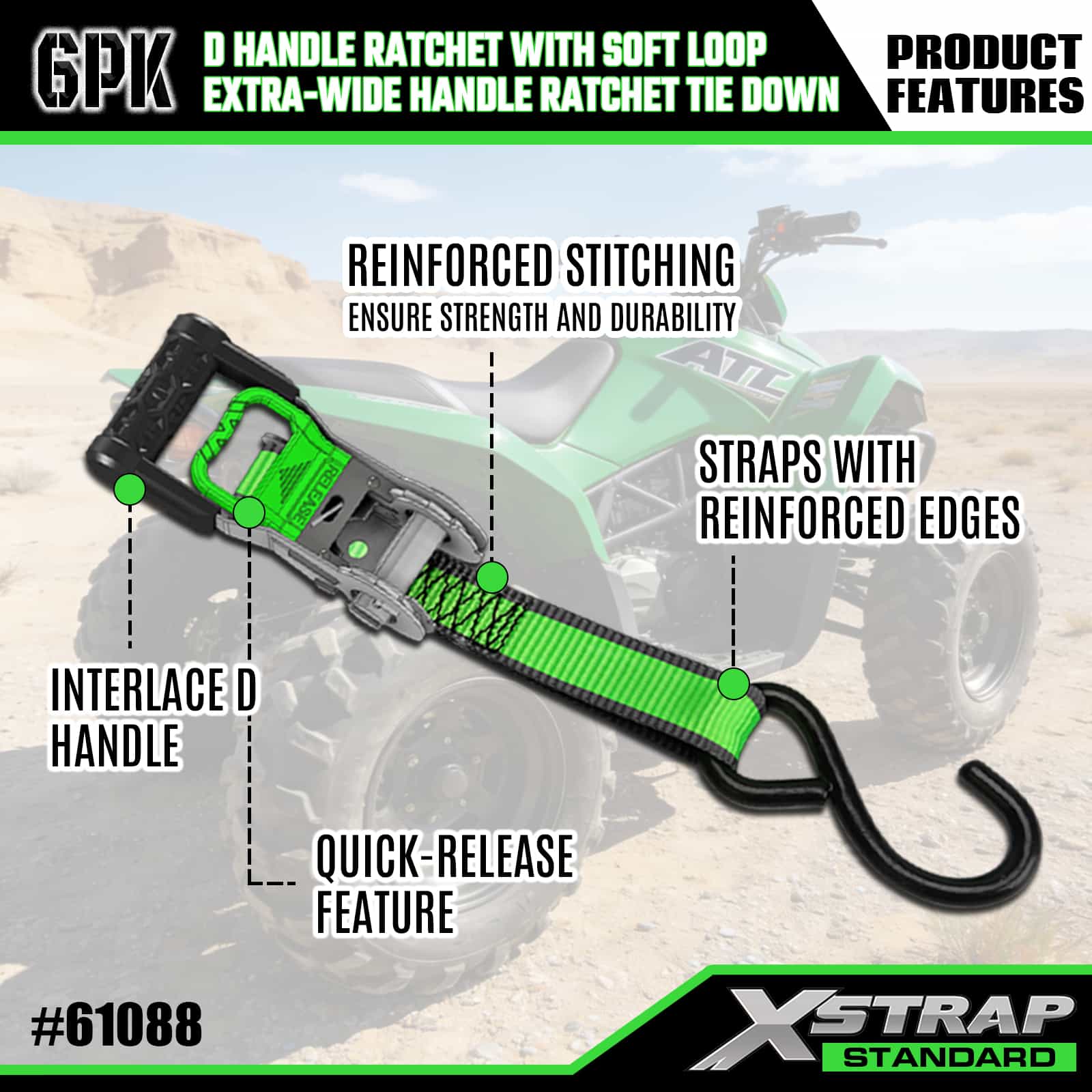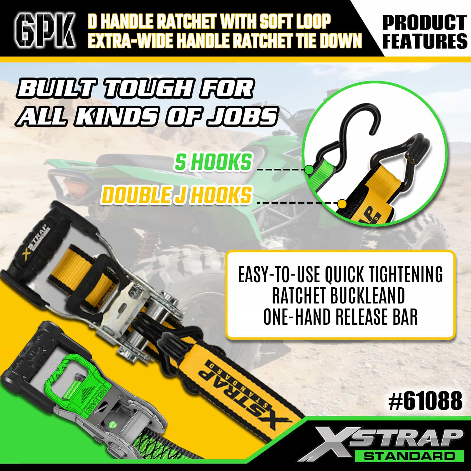 - 체계적인 8팩 디스플레이 포장: 2개의 D 핸들과 6개의 팻 핸들 타이다운을 분리하여 깔끔하게 라벨이 붙은 디스플레이 패키지로 제공됩니다. 이 패키지는 보관 및 운반을 위해 세트를 깔끔하게 유지하고 다양한 적재 요구 사항에 맞는 올바른 스트랩을 쉽게 선택할 수 있도록 해줍니다.