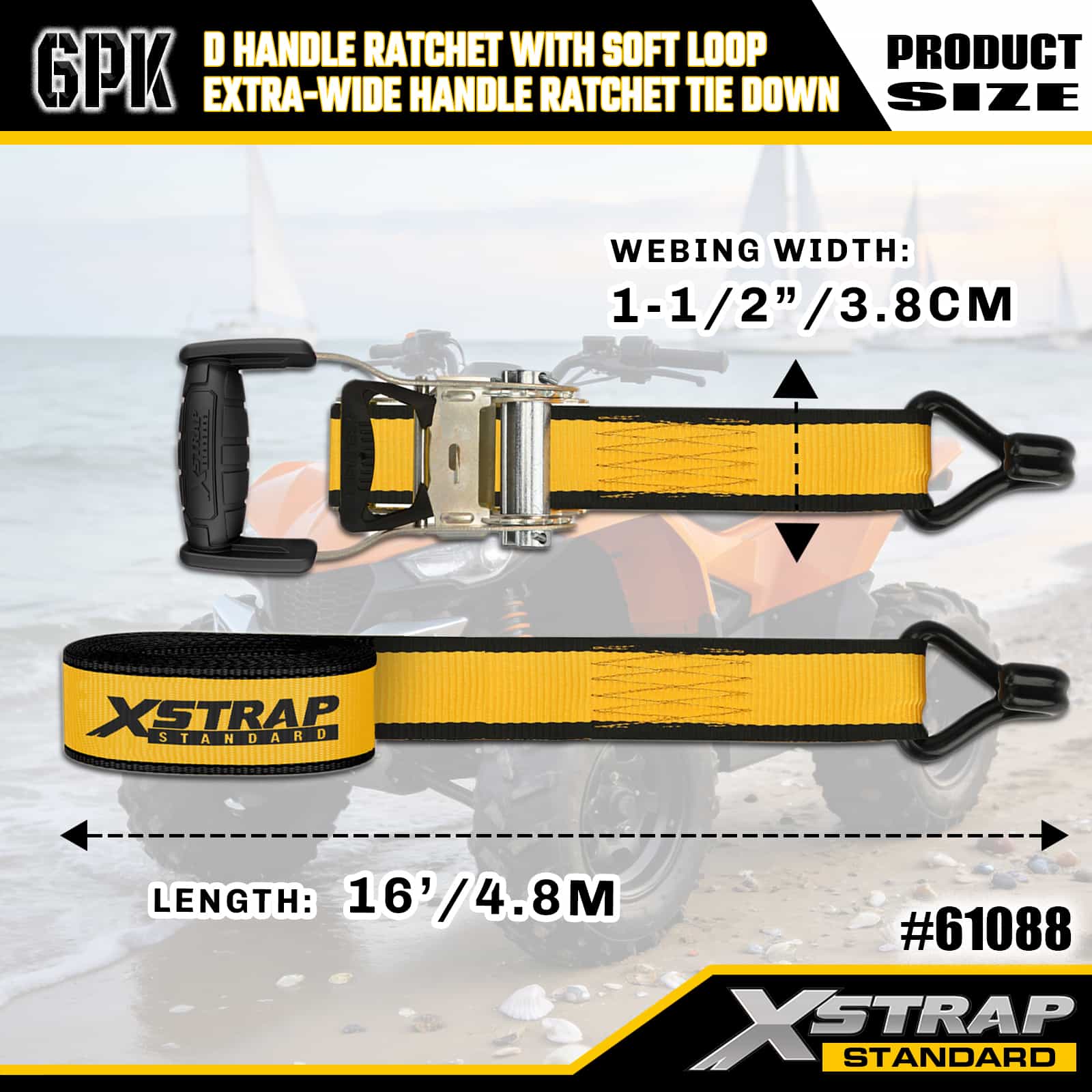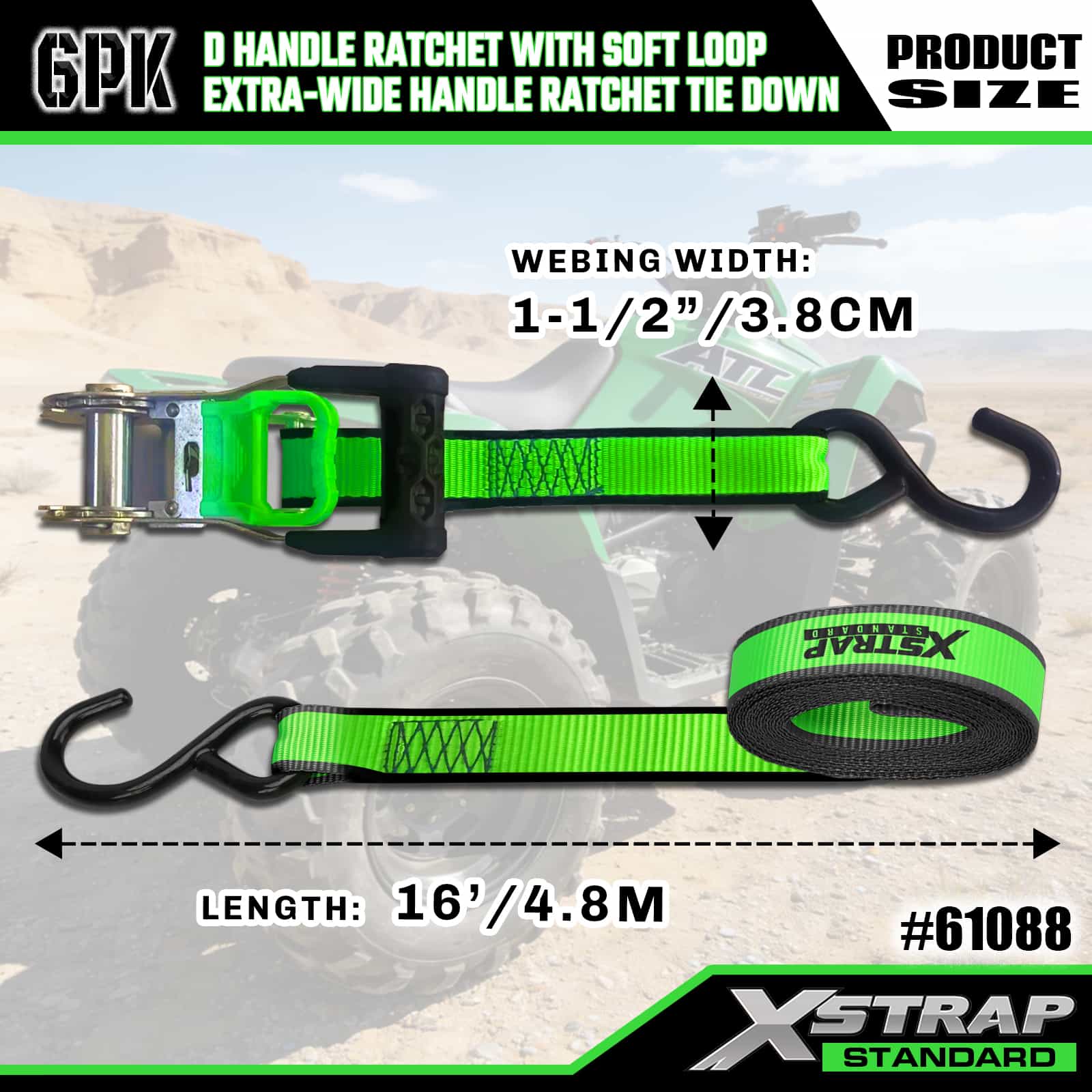 소프트 루프가 있는 2팩 1인치 x 14' D 핸들 래칫 및 6팩 1인치 x 16'초광폭 핸들 래칫 타이다운
