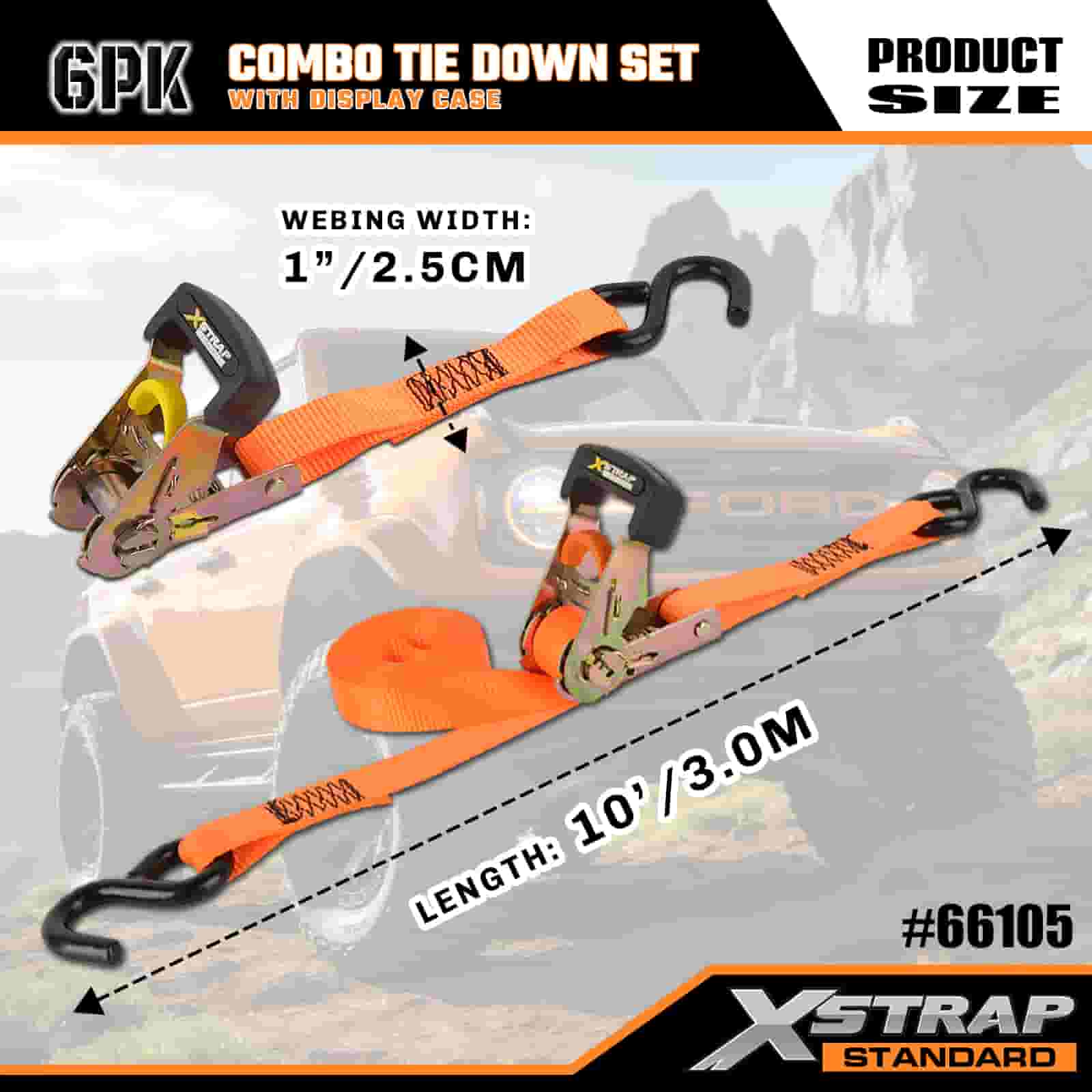 4PK 1인치 x 14' 및 2PK 1인치 x 10' 콤보 타이다운 세트