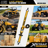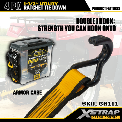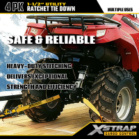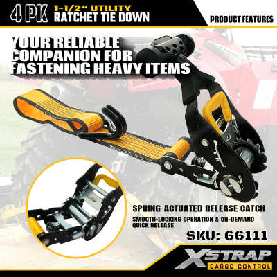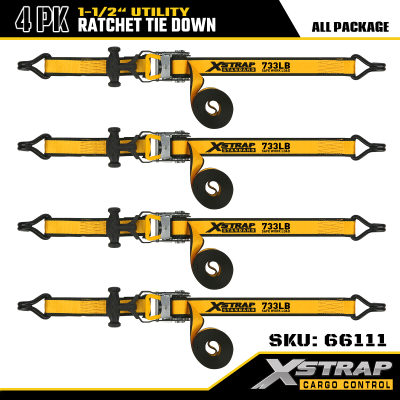 Xstrap 4 Pack T 핸들 래칫 타이다운, 1-1/2" x 16' 폴리에스테르 타이다운 스트랩 당김 래칫 스트랩, 화물 제어 픽업 트럭, SUV, 자동차 탑 랙 오토바이용 이중 J 후크가 있는 1100lbs 용량 화물 래싱 고정 스트랩.